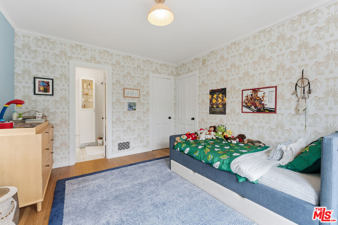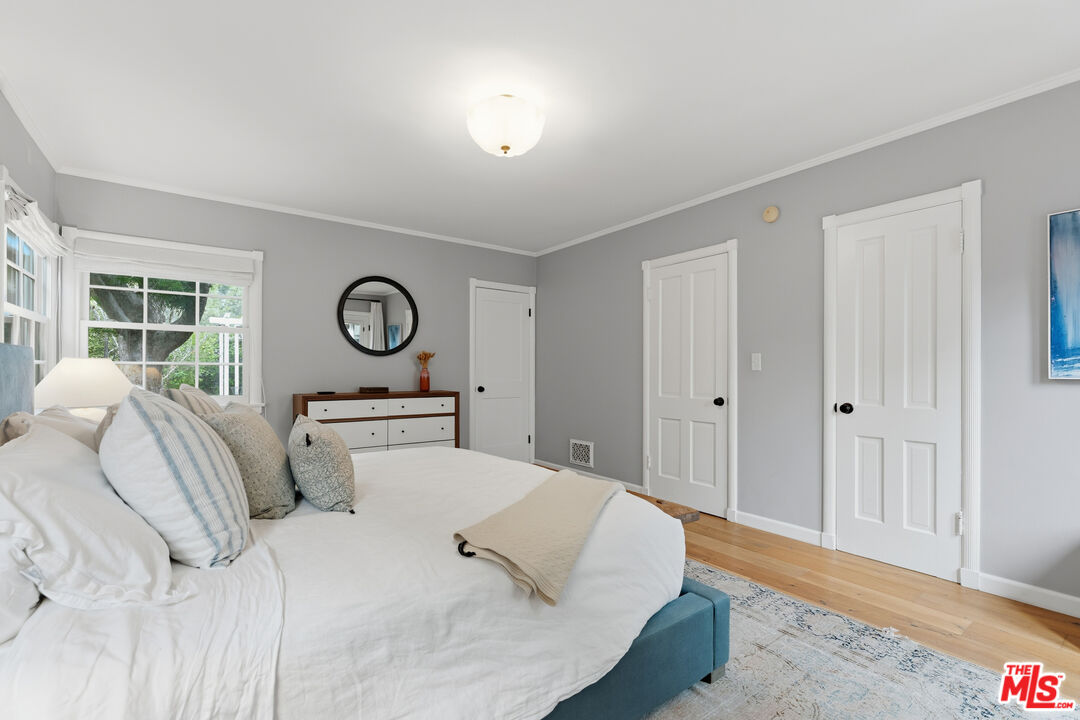 A beautifully updated traditional single family home located on a quiet, tree-lined street in prime Westwood, in the heart of the Westside. This inviting single level home blends classic charm with modern luxury, offering thoughtfully designed living space ideal for both everyday comfort and entertaining. It has wide-plank, light-colored hardwood floors throughout. The formal living room has large bay windows, a gas fireplace and french doors leading to the courtyard. At the center of the home is a chef's kitchen equipped with a Sub-Zero refrigerator, Viking 6-burner gas range, and a large center island. Off the kitchen is the laundry room with side by side washer and dryer. The 2 en-suite bedrooms open up to the courtyard and large backyard. The bathrooms both have showers and bathtubs. The front bedroom is currently used as a great office. The backyard is spacious and the garage has been converted to a versatile back house with a kitchenette, ideal for a guest suite, home office, studio or potential additional income opportunity. The home has an electric gate for additional security. In the highly distinguished Westwood Charter Elementary School area. Close to 405, 10 freeways, UCLA, Century City, restaurants, shopping, transportation and much more.