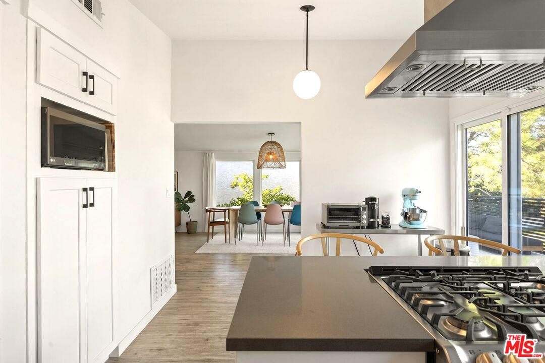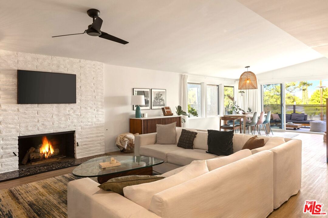Welcome to 21434 Salamanca, set above the street and surrounded by mature landscaping, this modern mid century updated home delivers light, privacy, and style in a highly desired Woodland Hills south of the boulevard location. The main living area feels bright and open with a classic painted brick fireplace and large sliders that create a smooth indoor outdoor flow.The front deck offers beautiful mountain views and is the perfect spot to unwind or entertain. The updated kitchen features a breakfast bar, custom cabinetry and quartz counters. Two well sized bedrooms and a full bathroom are located off the main living space. The primary suite includes an en suite bath, a generous closet, and access to a private backyard.There is also a spacious bonus room with its own entrance next to the garage. It makes an ideal home office, gym, or studio, and there are existing plans showing how it could be converted into an ADU for additional value.Located in one of Woodland Hills most sought after pockets with quick access to top rated schools, great dining, shopping, and outdoor recreation. This is an incredible opportunity to own a stylish home with flexible use options and room to grow.