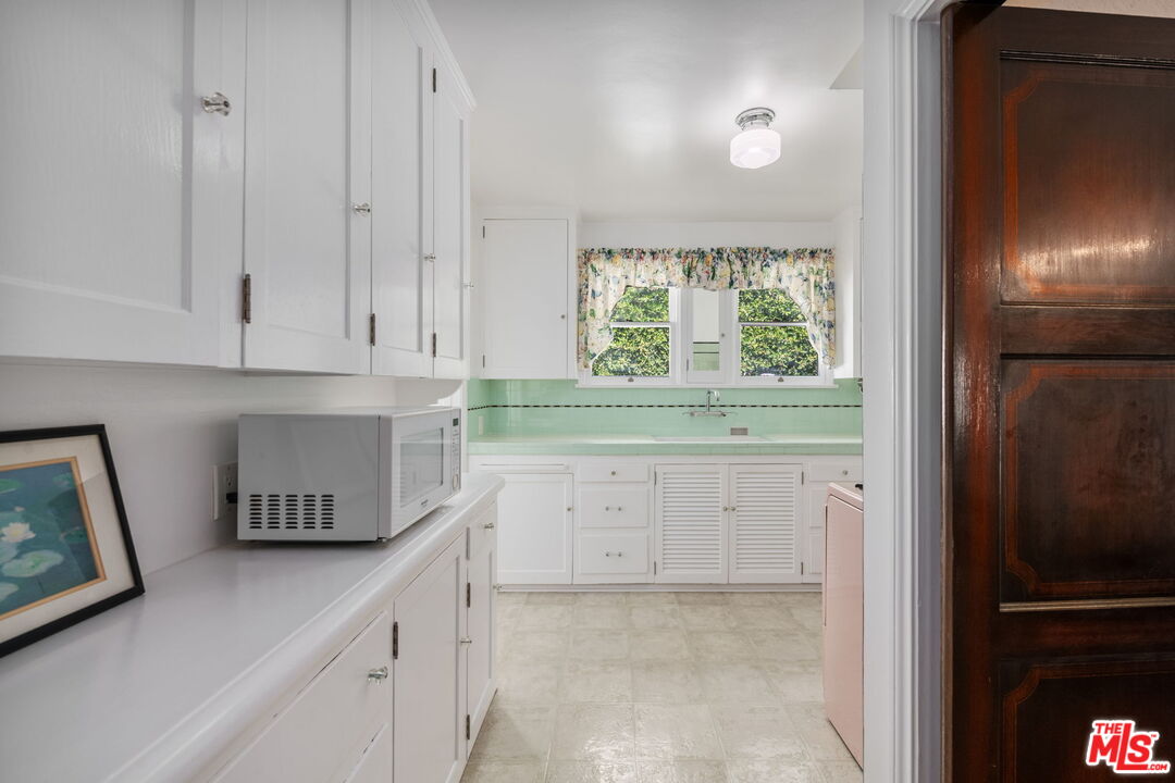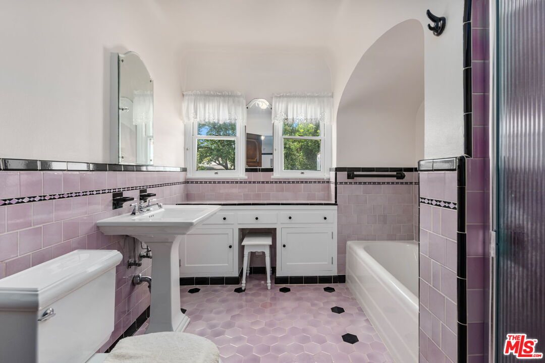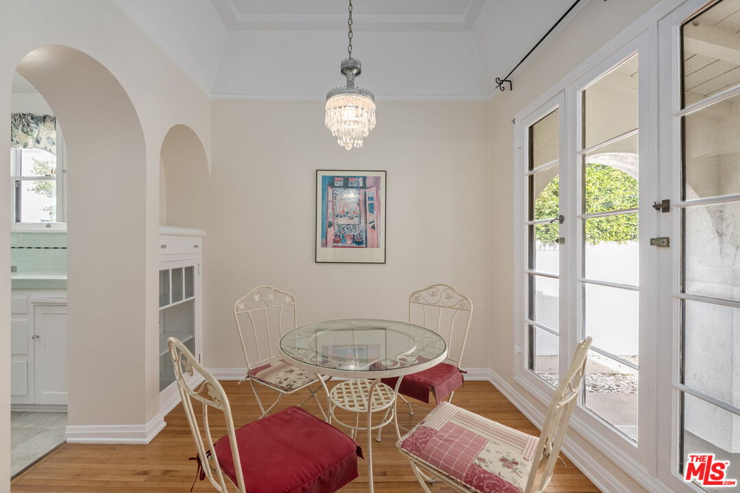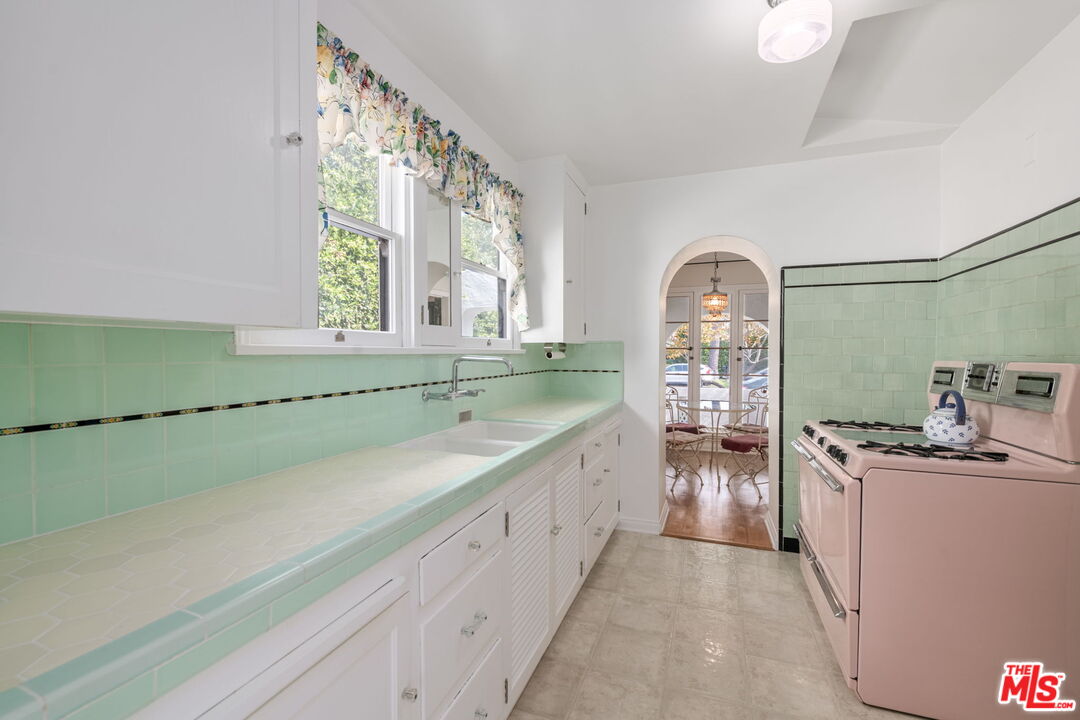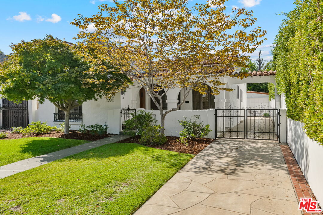 Exceptional Mint Condition 3 bed/2 bath Spanish with meticulous original unspoiled finishes and character. So unique to find a gem like this one. Charming arched covered porch to entry area with closet, entering into living room with vaulted ceiling and original stenciled wood beams, tiled fireplace with wood mantle, sconce lighting and oversized wood-framed picture window filling home with incredible natural light. Dining room with tray ceiling feature opens to sunny breakfast room with built-ins. Light and bright kitchen with authentic tiled countertops and vintage pale pink Wedgewood range/oven as the centerpiece. Separate laundry room with side door access to backyard. 3 spacious bedrooms including primary bedroom with French door to large backyard with majestic mature tree and garden in addition to detached garage. 3rd bedroom with attached 3/4 bath complete with original tiles. Full bath in hallway with separate bath and shower and with stunning vintage tile finishes. Additional features include all wood doors with original crystal doorknob hardware, hardwood flooring throughout, central ac/heat, wrought-iron gated driveway. Close proximity to Westwood Blvd. retail and restaurants, UCLA, Westfield Century City Mall and Beverly Hills. Westwood Charter School. Come be wowed by this special Spanish!