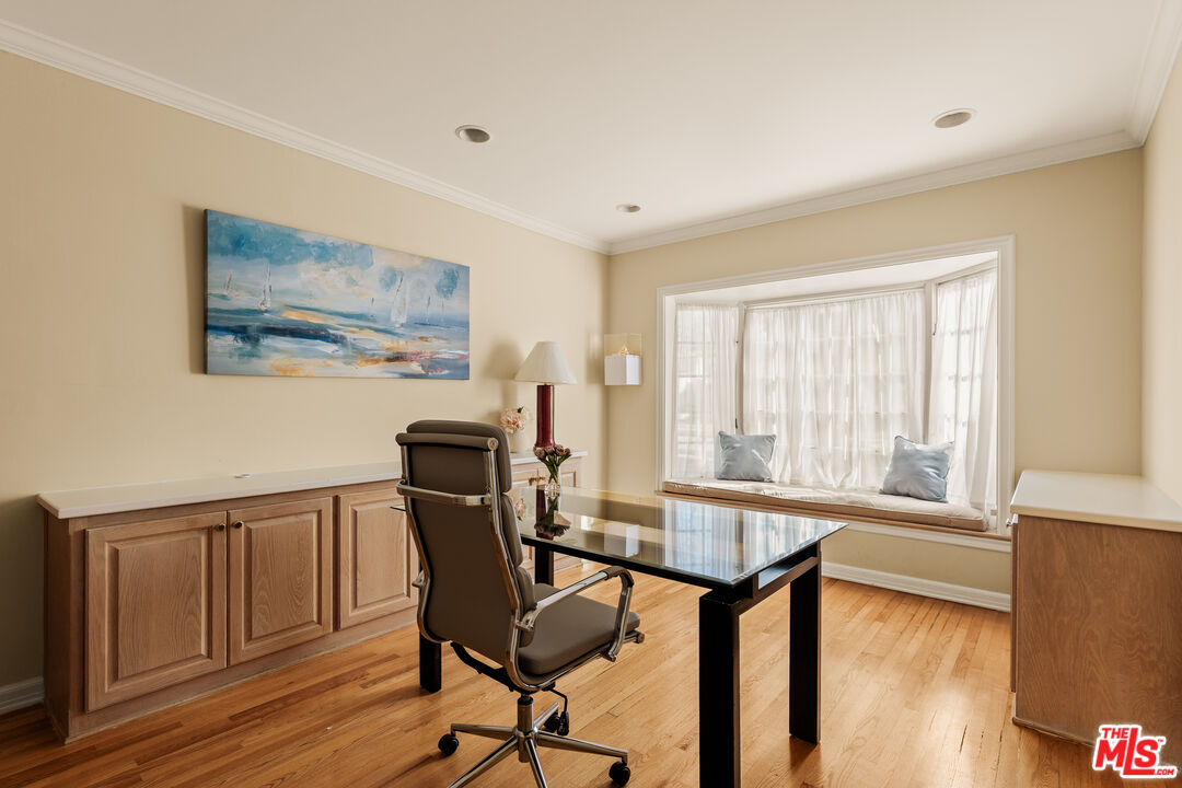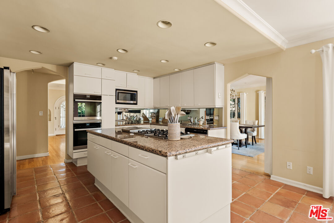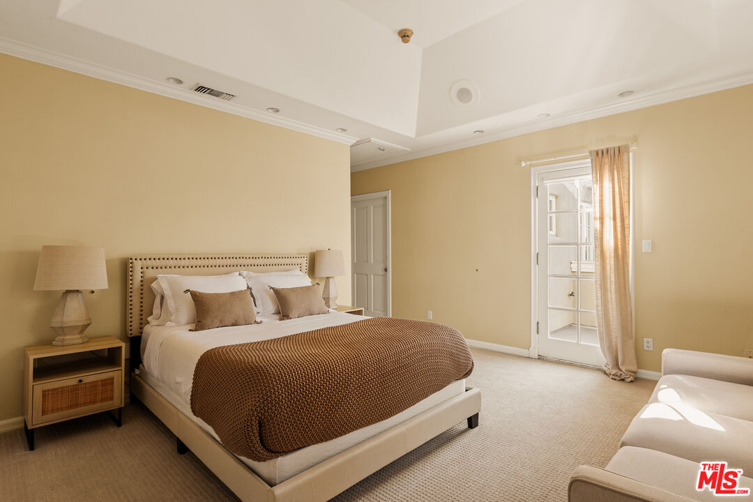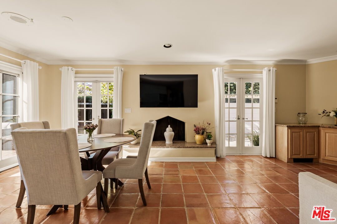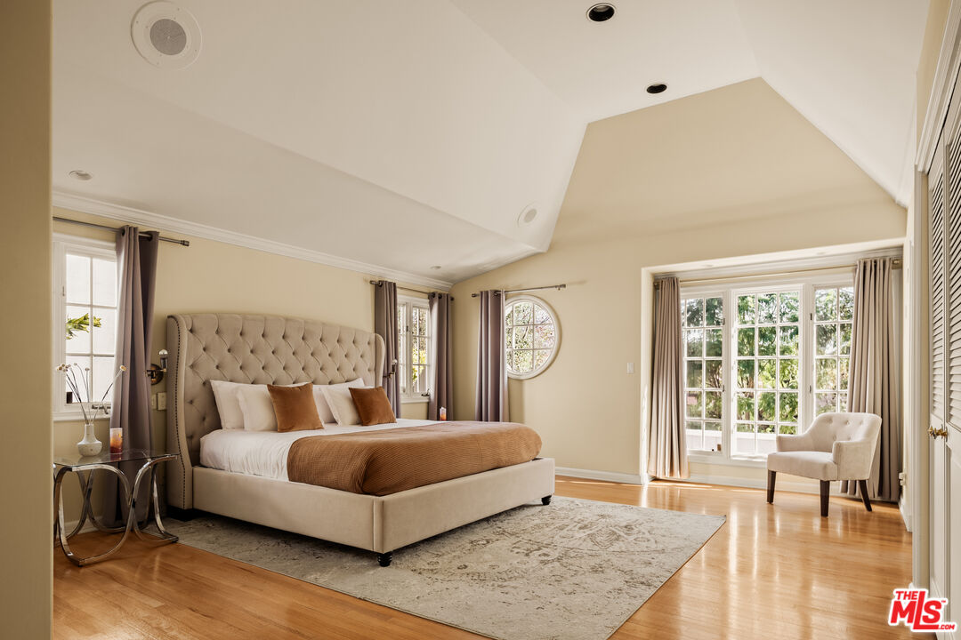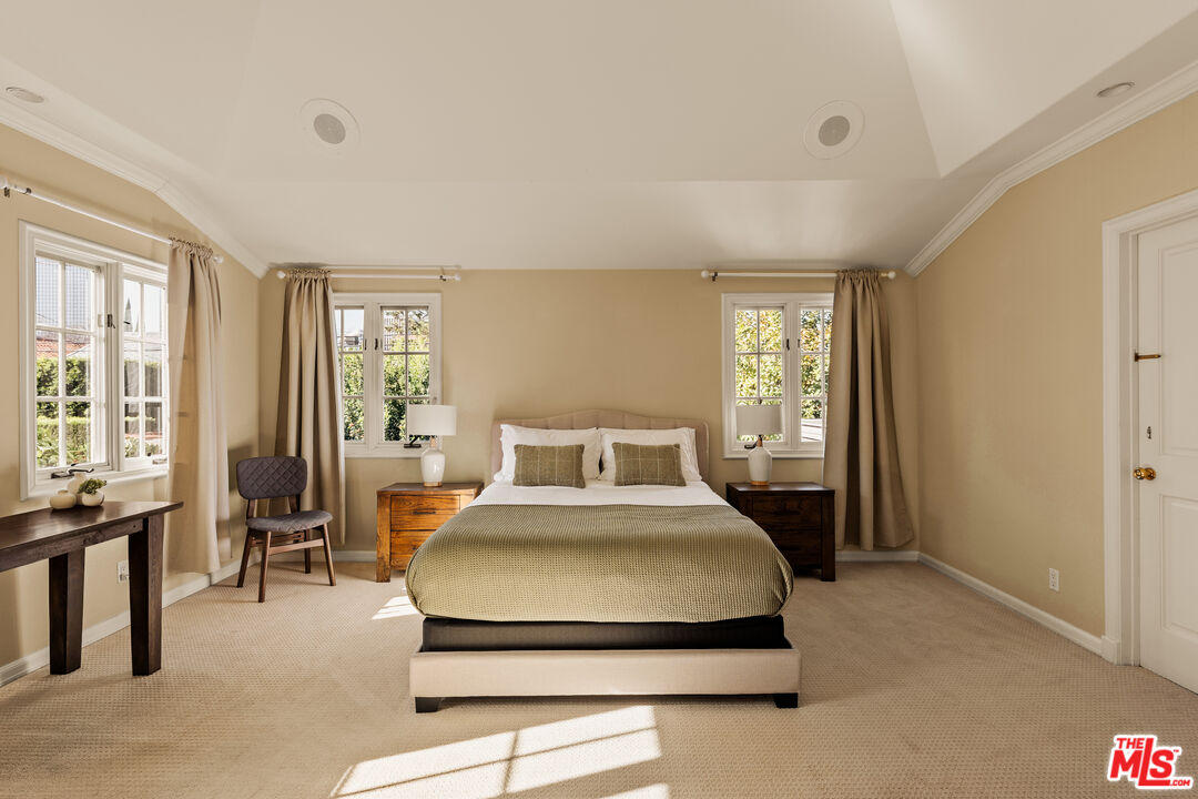 This character-filled home, located on one of the best streets in South Beverly Hills, combines classic style with comfortable living. The front entry opens to a bright living room with vaulted ceilings and a fireplace. A formal dining room with French doors leads to the backyard, creating an easy flow for gatherings. The kitchen features granite countertops, stainless steel appliances, and plenty of storage, and connects to a casual family room. Upstairs, the primary suite offers vaulted ceilings, a sitting area, and access to a private balcony. Additional bedrooms provide space for family, guests, or a home office. The backyard includes a brick patio with fountain, landscaped greenery, and multiple seating areas. With thoughtful details and a functional layout, this home offers close proximity to world-class shopping, amazing restaurants, and places of worship.