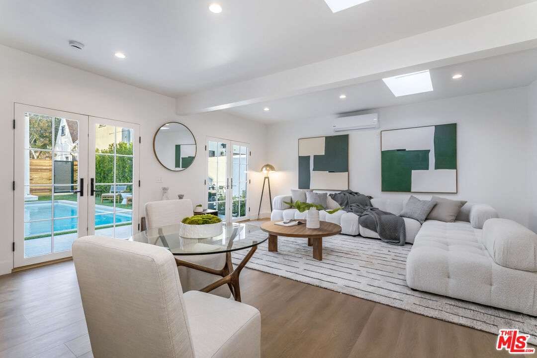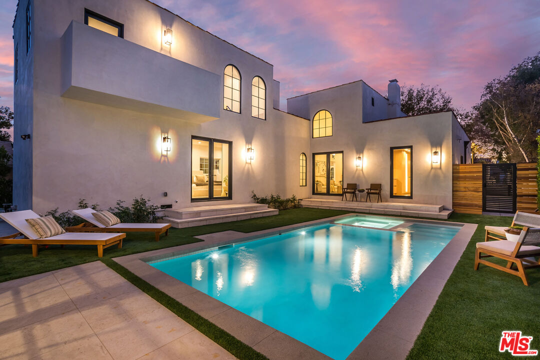 On a quiet Beverly Hills street, this updated Spanish retreat draws you in with a soft, golden glow of natural light moving through soaring ceilings. Inside, the home's original Spanish charm unfolds room by room, illuminating artful details from the arched windows to a sculpted fireplace that complements the home's architectural curves. The chef's kitchen features new stainless steel appliances and refined finishes that elevate both cooking and entertaining. The primary suite offers a generous walk in closet, an elegant standalone tub, and French doors that open directly to the backyard and resort style pool. Bright, inviting rooms flow effortlessly to outdoor spaces designed for relaxation and connection. A private guest house with its own kitchen and bath provides a flexible fifth bedroom for hosting, creative work, or extended stays. With its character, natural light, serenity, and truly livable design, this is the best value in all of Beverly Hills.