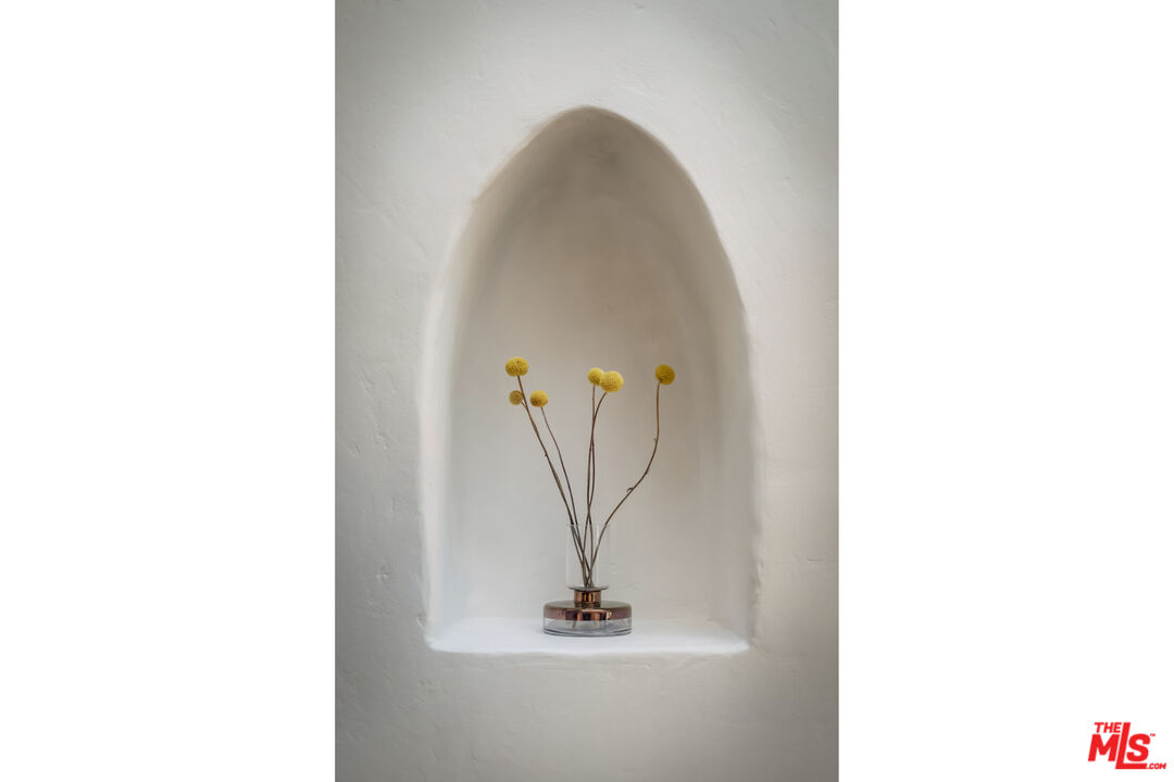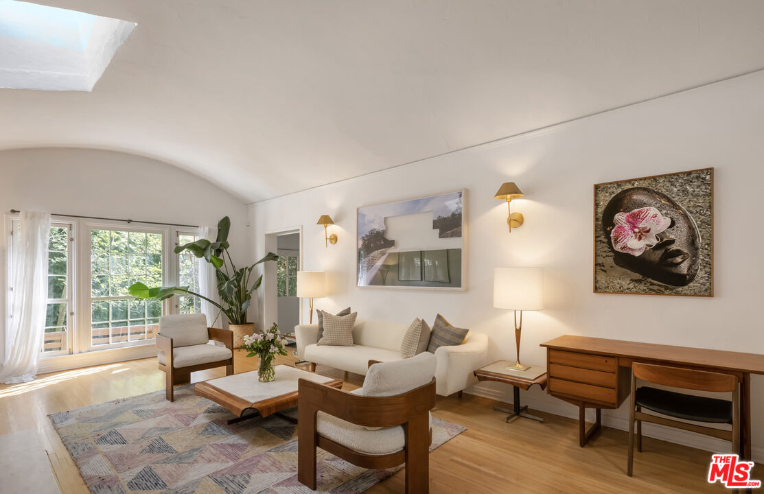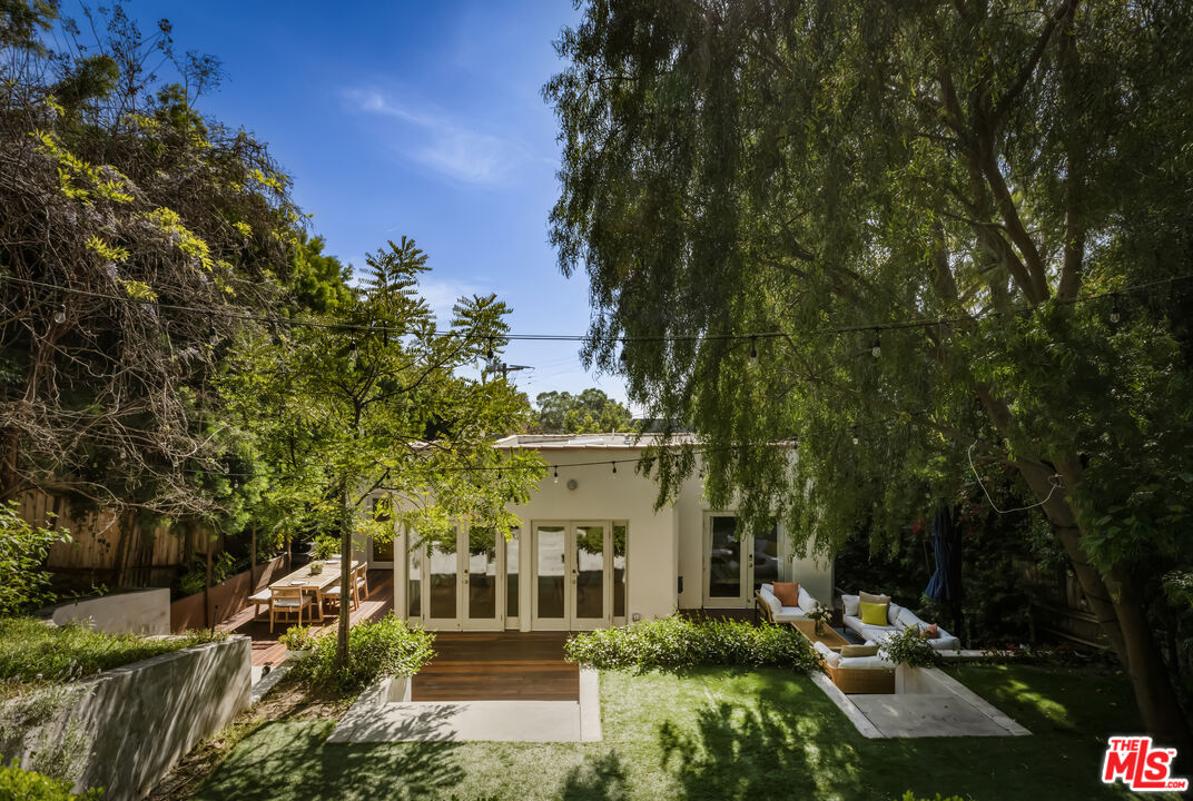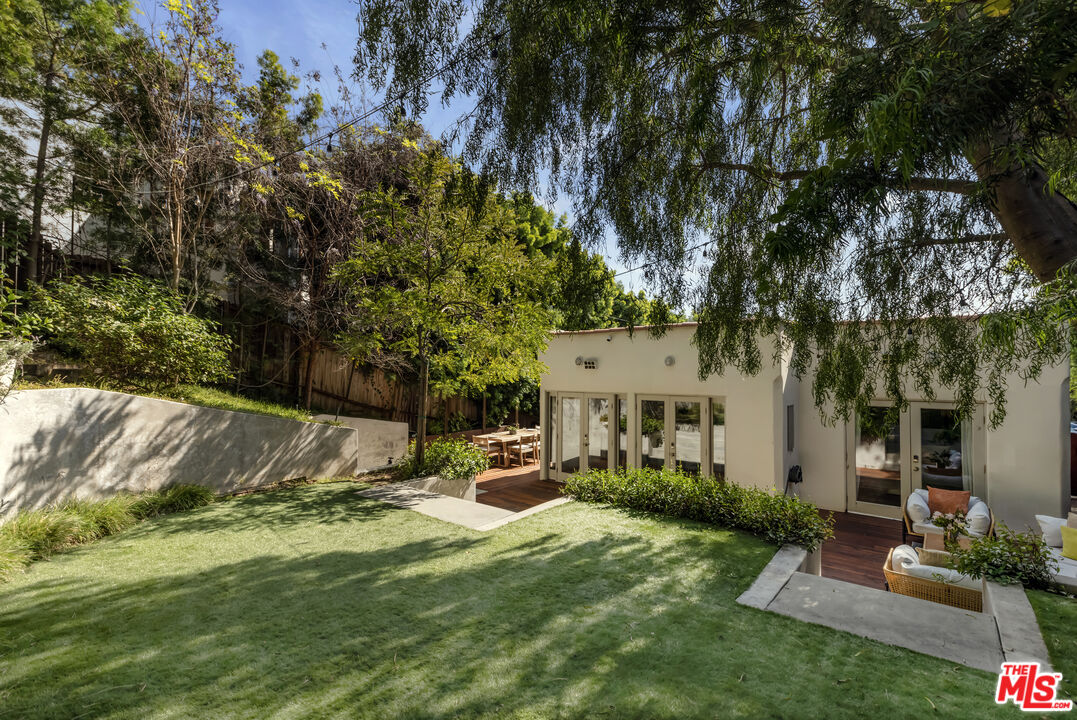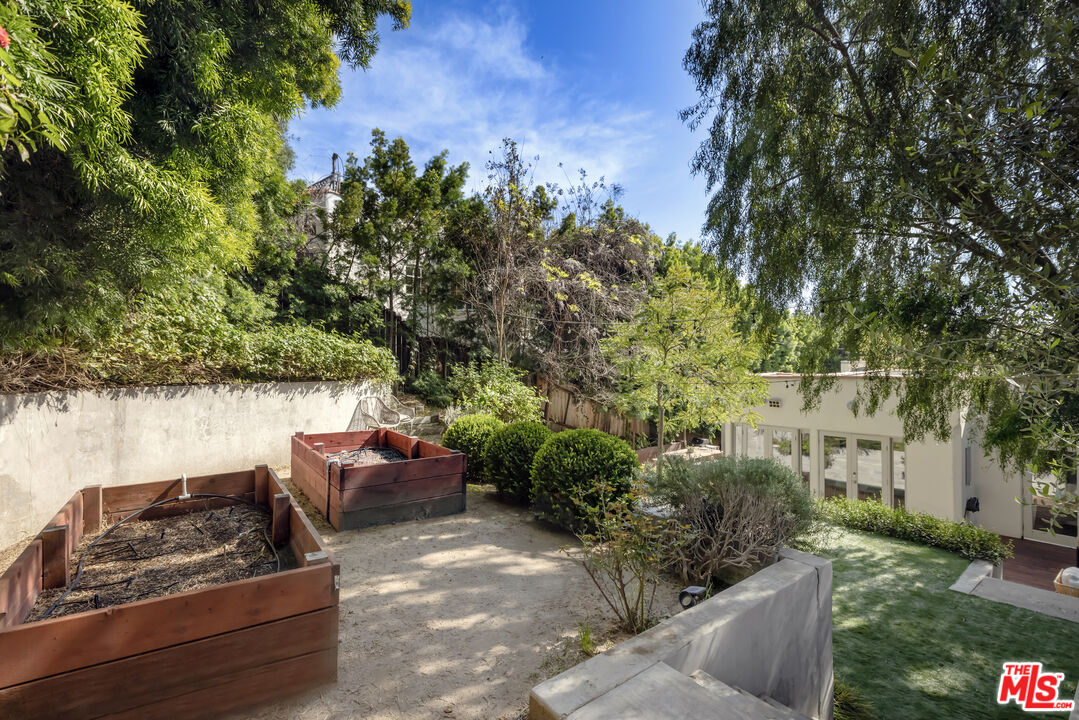 SPANISH c. 1924. PRIVACY becomes an experience in this romantic Bohemian-chic retreat, hidden behind a lush green veil. Every corner feels like a private exhibit: 3 BEDS, 3 BATHS, a captivating entry LIVING ROOM, OFFICE/DEN, additional FLEX SPACE, MUD ROOM secondary entranceway and Vegetables Beds. Extraordinary natural light defines the interiors, coaxing architectural moments into the spotlight. The living room with soaring ceilings, built-ins, and an exquisite minimalist fireplace is where old-world romance meets refined modernity. An updated entertainer's kitchen invites laughter, conversation, and spontaneous culinary performances that spill naturally outdoors. The yard opens to multiple outdoor spaces, each with its own mood, perfect for playing and entertaining. Set apart, the third bedroom can provide a discreet retreat for guests, a primary suite, or a blank canvas for your own vision. Tucked onto a private corner lot in the iconic Hollywood Dell, the home is ready for your collection, ready to inspire you and become your masterpiece.