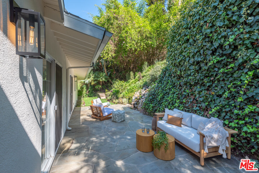 Welcome to Outpost Estates! Newly renovated three-bedroom, two-and-a-half-bath home with approximately 2,236 sq. ft. of living space on an expansive 11,600 sq. ft. lot. This home offers total serenity and privacy. The inviting living room features wood-beamed ceilings, a fireplace, and wood and Italian porcelain tile floors throughout. The newly remodeled kitchen showcases custom solid oak cabinetry, quartz countertops, top-quality appliances, large island perfect for casual dining, opening to a flexible large dining or family with access to the outdoor patio and yard. The primary suite with a remodeled bathroom featuring Italian limestone flooring, double vanities, separate tub and shower, opens directly to the lush backyard. Two additional bedrooms provide comfort and versatility and remodeled bathroom featuring modern finishes and thoughtful design. The private outdoor space includes a tranquil fountain, mature landscaping, and a grassy yard ideal for entertaining. Additional highlights include a circular driveway for easy access and a two-car garage. Move-in ready and ideally located, this home captures the best of California living in one of Los Angeles' most desirable neighborhoods. Historic Outpost Estates, this enclave is one of Los Angeles' storied neighborhoods developed in the 1920s, it is known for its architectural character, tree-lined streets, and a close-knit community feel. You're just moments from Runyon Canyon trails, the Hollywood Bowl, the Sunset Strip, and cosmopolitan shops and dining - all while enjoying a serenity and privacy rarely found so close to the city center.