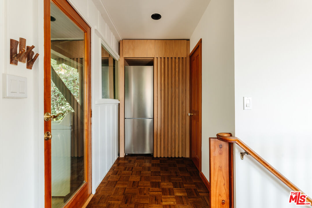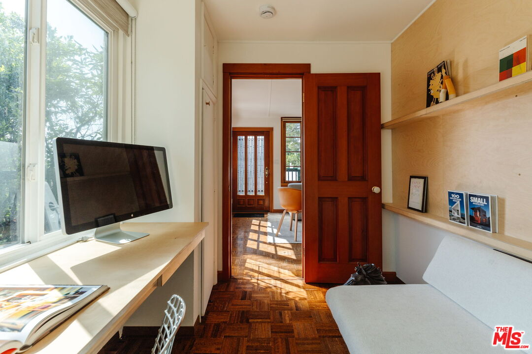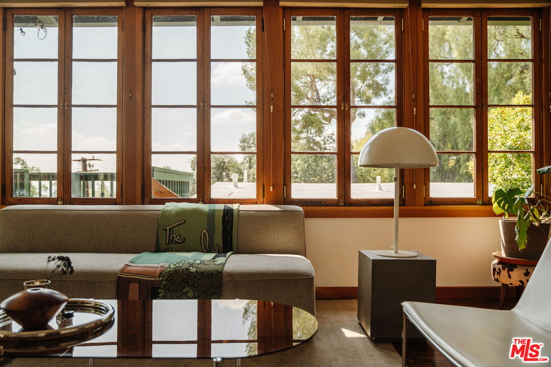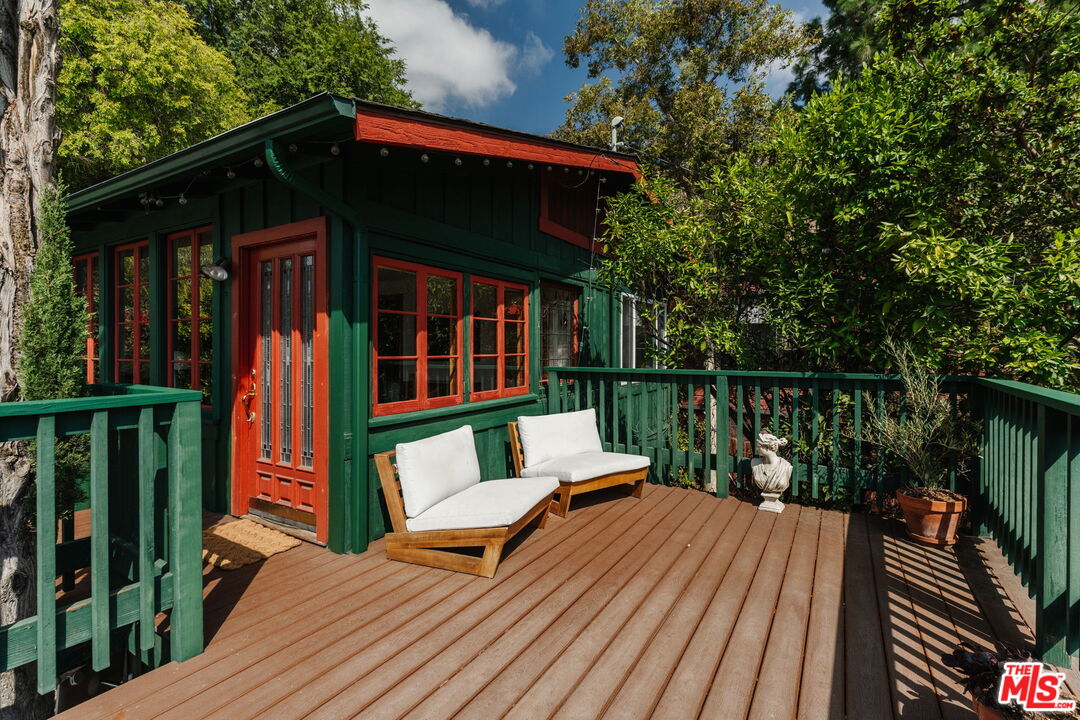 An enchanting blend of canyon charm and thoughtful updates, this 1922 Sierra Madre Canyon cottage offers a serene retreat tucked into the San Gabriel Mountains. A river rocklined driveway leads to a welcoming front porch that wraps around a towering cypress tree, creating a unique treehouse-like perch to enjoy the quiet setting and mountain air. Bathed in natural light, the living and dining room is framed by a wall of French windows that open to leafy canyon views. A cozy office with a built-in desk provides a tranquil space for work or creative pursuits. The kitchen balances vintage character with modern updates, featuring butcher block counters, a gas range, custom coffee cabinet, and ample workspace for cooking and entertaining. Two bedrooms and two baths span two levels, offering flexibility for guests, a home office, or a private retreat. The remodeled primary bath is finished with custom tile and a soaking tub. Outdoors, a flagstone patio extends the living space and creates an inviting backdrop for al fresco dining and gatherings. With its seamless indoor-outdoor flow, thoughtful upgrades, and tranquil canyon setting, this home captures the essence of California living. Tucked away in a peaceful location close to Mary's Market, local hiking trails, downtown Sierra Madre, and nearby Pasadena, it offers both retreat and convenience.