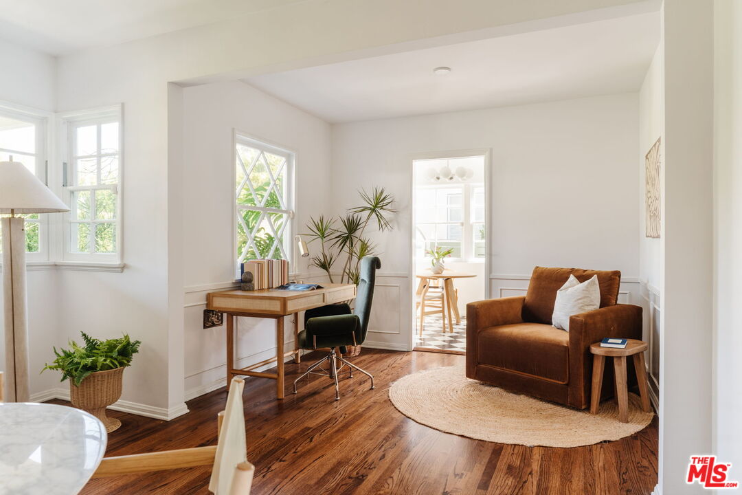 Classic 1950s mid-century traditional set on a quiet, tree-lined street in coveted La Tijera Village. This 2BD/2BA home has a functional layout and strong indoor-outdoor flow, retaining its original charm with added creative and colorful character updates throughout. A lush hedge adds privacy from the street and and leads into a mature cactus garden in the front yard. Inside is a sunny layout with hardwood floors great for entertaining and every day living. A private wing features two well-proportioned bedrooms and updated bathroom with artist-crafted tile. The vibrant kitchen offers a cheery breakfast nook and second bath. Out back is a true retreat with a newly added saltwater pool and spa, mature fruit trees, and a separate garden space in the back with raised planter beds. The detached garage has been converted into an incredible 410 SF bonus space with exposed beams and walls of storage perfect for a home office, studio, or flexible guest space with ADU potential. Ideally located in the heart of Inglewood's La Tijera Village and central to all the south/west side has to offer: walking distance to Sunday Gravy, The Serving Spoon, Two Hommes, and Ladera Park and easy access to LAX, Culver City, Kenneth Hahn Park, The Forum, Intuit Dome and SoFi Stadium and so much more.