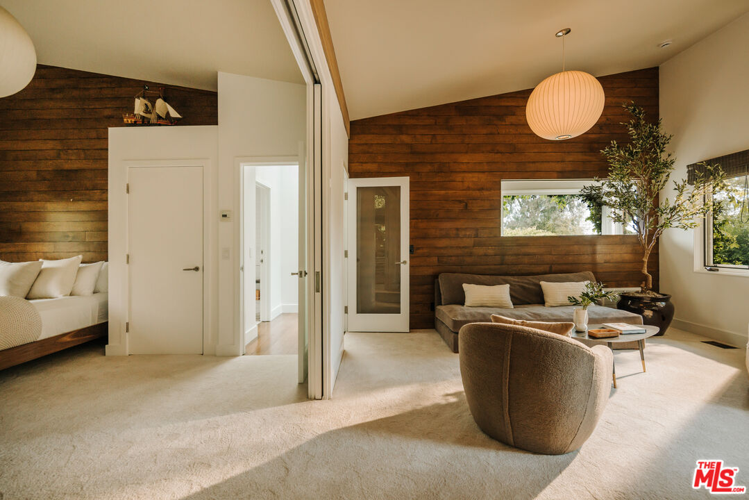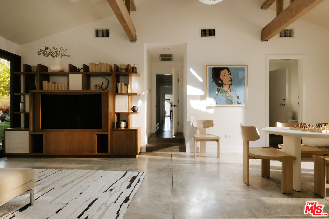 This listing features 2220 Banyan Dr as a standalone offering. It may also be purchased in conjunction with the adjacent residence at 2230 Banyan Dr, which is listed on the market for an additional $3,445,000 which allows the owner to combine the properties to create one large, special compound with two separate structures. 2220 Banyan Drive is a 5-bedroom, 4.5-bathroom residence spanning 4,107 square feet, seamlessly blending elevated design with everyday livability. Set behind a lush, landscaped entry courtyard with a peaceful fountain and generous grassy lawn, the home immediately sets a tone of serenity and sophistication. Through double front doors, a sun-drenched sitting room introduces the home's refined material palette; a striking mix of polished cement and warm wood that adds texture, depth, and architectural character throughout. To the right, sets a private room perfect for your at home work space or guest quarters. Adjacent is the spacious primary suite, where awe-inspiring canyon and city vistas greet you each morning. Anchored by a sleek fireplace, the primary bedroom also features a custom closet and a dramatic cement accent bathroom surrounded by bamboo, creating a retreat that feels both luxurious and grounded. The heart of the home unfolds around expansive living areas that feel both welcoming and cozy due to the unique placement of the 180 degree fireplace. A charming breakfast area offers a casual contrast to the more formal, intimate dining room, both thoughtfully positioned off the custom kitchen for ease and flow. The dining room is positioned with sliding doors to the breathtaking canyon views creating a truly special dining experience. The dual living room is framed by large glass, sliding doors that open seamlessly to a flat, grassy yard, resort-style pool, firepit, custom overhand deck and sweeping canyon/city views; ideal for entertaining or quiet evenings under the stars. In the west wing, two en-suite bedrooms sit parallel, ideal for siblings, with a nearby flex space that functions beautifully as a playroom, studio, or media lounge. Beyond, is a loft-style bonus area offering generous space for teens, in-laws, an office or visiting family, completing the home's highly functional and versatile layout. The loft features its own bathroom, outdoor deck and has both a living room and bedroom. With its rare combination of panoramic views, a spacious flat yard, and richly layered design, 2220 Banyan is a truly special offering in the hills - where form, function, and natural beauty meet.
