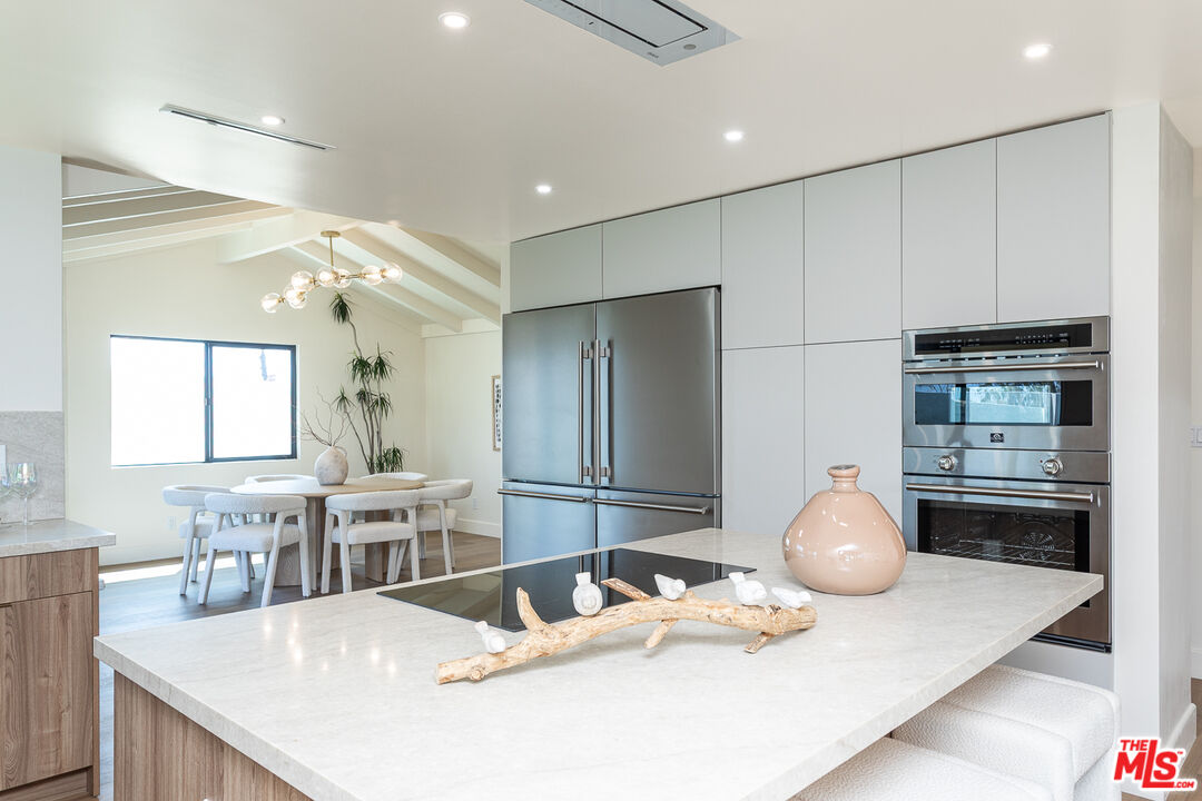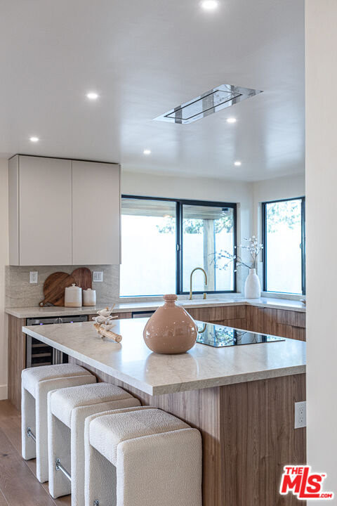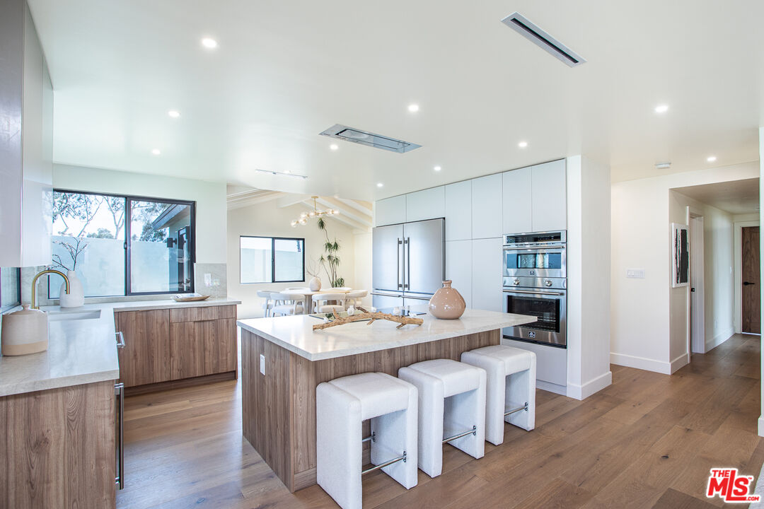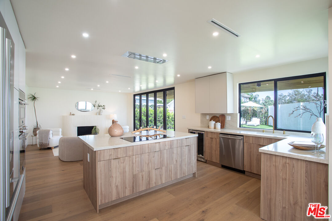 Welcome to your dream home! Nestled in a quiet, upscale enclave within the sought-after Wellington Square neighborhood of Mid-City, this fully updated, sophisticated minimalist modern home blends timeless elegance with a beautiful minimalist design. Clean lines, open-concept living, and high-end finishes define the space, offering a refined lifestyle with exceptional comfort. From the moment you arrive, you'll be captivated by the inviting curb appeal, featuring a roundabout driveway, natural stone walkways, and a striking 7-foot glass pivot door that makes a bold first impression. Inside, the home offers 5 spacious bedrooms and 4 beautifully appointed bathrooms, including three luxurious master suites, each with its own private en-suite. The gorgeously updated kitchen reflects modern minimalist style, complemented by high-end appliances and sleek finishes.Two unique fireplaces add warmth and character: an original Malm fireplace in the dining room and a stylish fluted fireplace in the living room. The living area also features a tall panoramic sliding door, seamlessly connecting the indoors with the outdoors for true California living. Every bathroom has been custom-designed to showcase its own personality and aesthetic, while the primary suite boasts soaring ceilings, large windows, and an impressive spa-inspired bathroom complete with a custom handmade vanity. The guest bathroom offers a jaw-dropping stone wall complemented by a backlit round mirror. Additional standout features include a glass-enclosed wine storage area beneath the staircase, both functional and artistic. Located in historic Wellington Square, this home offers a rare combination of tranquility and convenience. Enjoy easy access to the 10 Freeway and nearby favorites like the Wellington Square Farmers Market, Re/creation Caf, n/soto, Palm Grove Social, and a variety of local restaurants and shops.