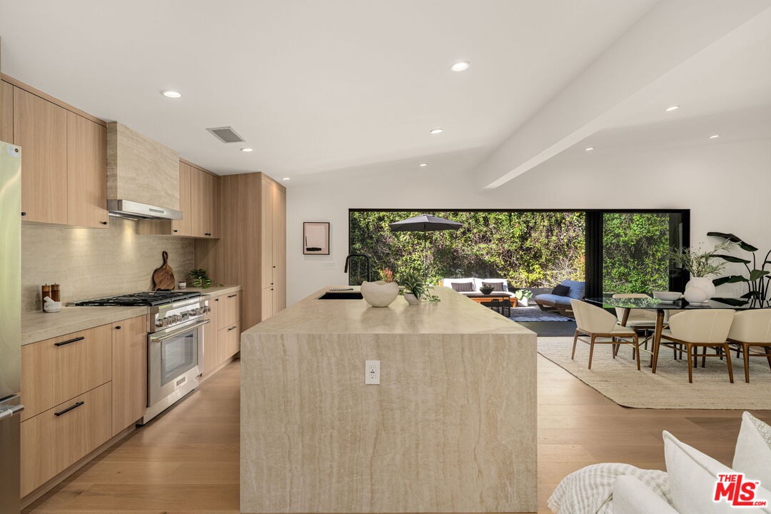 Introducing a rare ultra-luxury modern retreat in the Hollywood Hills, thoughtfully designed with no expense spared. This fully reimagined compound features a 2-bedroom, 2-bath main residence complemented by a separate, fully permitted 1-bedroom, 1-bath ADU offering exceptional privacy and versatility. Blending refined architecture, premium finishes, and seamless functionality, the property is designed for today's most discerning buyer. The main residence showcases meticulous craftsmanship throughout, highlighted by wide-plank Carrara hardwood flooring, hand-plastered detailing, and a dramatic plaster fireplace that anchors the living space. The designer kitchen serves as a true centerpiece, featuring custom cabinetry, an oversized island, honed Taj Mahal stone surfaces, and a full suite of high-end Thermador appliances, perfectly suited for both everyday living and elevated entertaining. Expansive sliding glass doors open on both sides of the space, creating effortless indoor-outdoor flow and an ideal setting for al fresco dining under the stars. Down the hall, spa-inspired bathrooms impress with custom plaster finishes, luxury stone countertops, and elevated hardware selections. Thoughtful details throughout the home include custom closets, surround sound, recessed lighting, and integrated climate features that enhance comfort and sophistication. The spacious primary suite offers a private outdoor retreat and a luxurious ensuite bathroom complete with a double vanity, a large walk-in shower with dual Axor shower heads, and a generously sized walk-in closet with custom lighting. The permitted 1-bedroom, 1-bath ADU features its own address and separate entrance delivers exceptional flexibility with a high-end kitchen, premium appliances, modern finishes that match the main residence, and a custom walk-in closet, making it ideal for rental income, guests, or a private office. Multiple outdoor spaces are designed for low-maintenance living and entertaining, featuring mature drought-tolerant landscaping, desert-inspired design elements, a sleek fire fit w a dedicated pre-plumbed gas line, an epoxy-finished concrete yard, and a large grassy area perfect for relaxation. Driveway with parking for three cars! Enhanced with modern security and smart entry features, this turnkey property offers luxury without compromise. A truly one-of-a-kind opportunity to own a private modern compound in the Hollywood Hills, offering exceptional quality, flexibility, income potential, and elevated Los Angeles living. This rare offering is not to be missed!