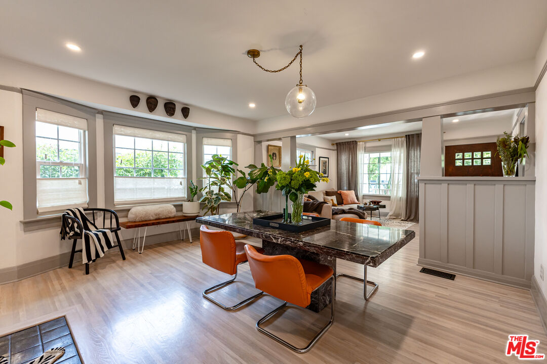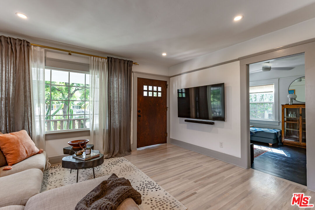 Tucked away on a serene, private cul-de-sac, this 1906 Craftsman pairs timeless historic character with thoughtful, chic, modern upgrades. Within close proximity to the vibrant boutiques and celebrated dining of Figueroa Street, from dinner at Hippo, lunch at Kitchen Mouse to shopping at Le Labo, or simply just an ice cream cone at Jeni's are moments from your door. Perfectly situated, this home is a stones throw to Hermon Park and the Arroyo Secoincluding tennis courts, dog park, and open green space and just minutes from Ernest E. Debs Park's scenic hiking trails. Inside, 1,412 square feet of living space (including a 217-square-foot bonus addition) equaling to 1,629 square feet which unfolds across two levels, with four bedrooms and two bathrooms thoughtfully arranged for comfort and flexibility. The spacious primary enjoys serene, leafy green views, while a second upstairs bedroom looks out across the city. Two additional bedrooms downstairs, set on opposite sides of the home, provide privacy and versatility for family, guests, or a home office. Original wood flooring plus upgraded wood flooring, anchors the historic charm, complemented by a fully remodeled spa-style main bath. Modern upgrades ensure peace of mind. The outdoor space is a true sanctuary. Designed for the quintessential California living and entertaining, the backyard is lush with native landscaping and multiple zones for dining and lounging. Mature fruit trees including, peach, mandarin, Meyer lemon, orange, and lime, provide beauty, shade, and seasonal harvests. The hand-built pergola is perfect for savoring a morning coffee, gathering friends for al fresco dinners, or stargazing late into the evening, this private retreat elevates everyday living. The cherry on top of this already special home: added in 2023, solar panels were installed, reducing energy costs while supporting a sustainable lifestyle. A rare blend of historic charm, modern comfort, and curated outdoor living, this Highland Park Craftsman embodies the very best of one of Los Angeles' most coveted neighborhoods.