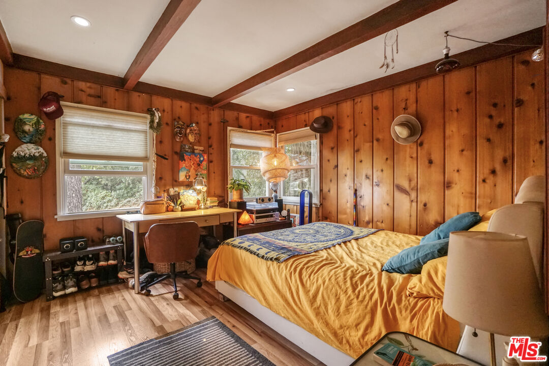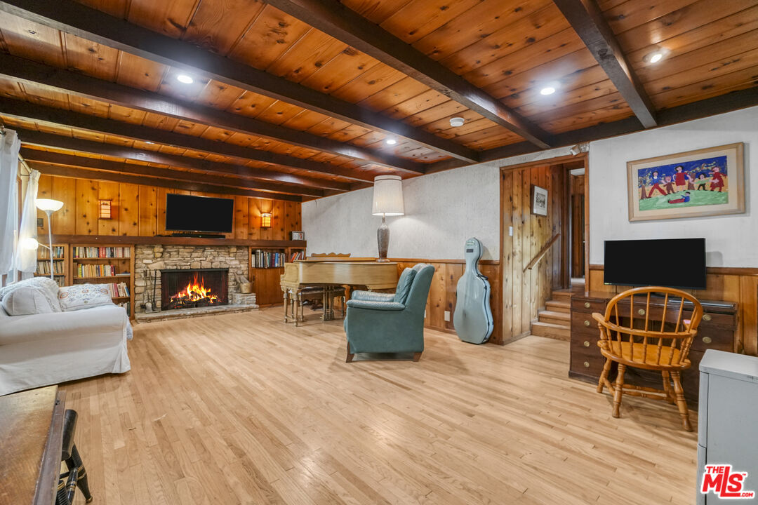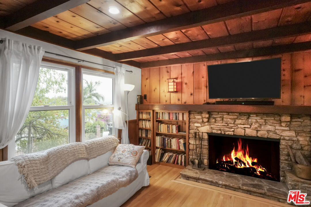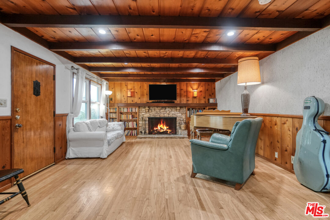 Tucked away in the highly desirable Woodland Hills South, within the private and picturesque Venido/Maycott loop, this residence offers the rare feeling of a tranquil cabin retreat while being just moments from city conveniences. Surrounded by lush greenery and mature trees, the property exudes privacy, serenity, and timeless charm.The home welcomes you with warm architectural details, including wood-beamed ceilings and a classic brick fireplace that anchor the main living spaces with character and comfort. Large windows frame sweeping canyon and city views, bathing the interiors in natural light. The open chef's kitchen is designed for both culinary creativity and connection, seamlessly flowing into inviting living and dining areas.Step outside to a sunlit patio that invites you to savor morning coffee, host gatherings, or simply unwind while taking in the peaceful backdrop of nature. Mature landscaping enhances the grounds, creating a sense of being immersed in your own private retreat.Adding to its versatility, the property includes a fully permitted ADU with its own address, 22458, currently occupied on a month-to-month basis. This space can be delivered with the tenant in place, offering immediate rental income, or delivered vacant for use as a guesthouse, home office, or private studio.Additional highlights include a two-car garage, ample driveway parking, and a location that strikes the perfect balance between seclusion and accessibility. Just minutes from Topanga Canyon, Ventura Boulevard, and local parks, this home captures the essence of California living: peaceful, private, and endlessly inviting.A rare opportunity to own a home that feels worlds away yet right at the heart of Woodland Hills South. Feel free to park in the driveway when visiting.