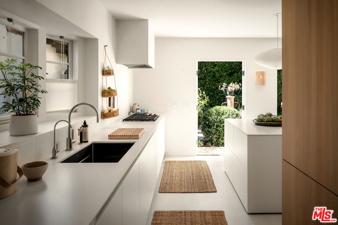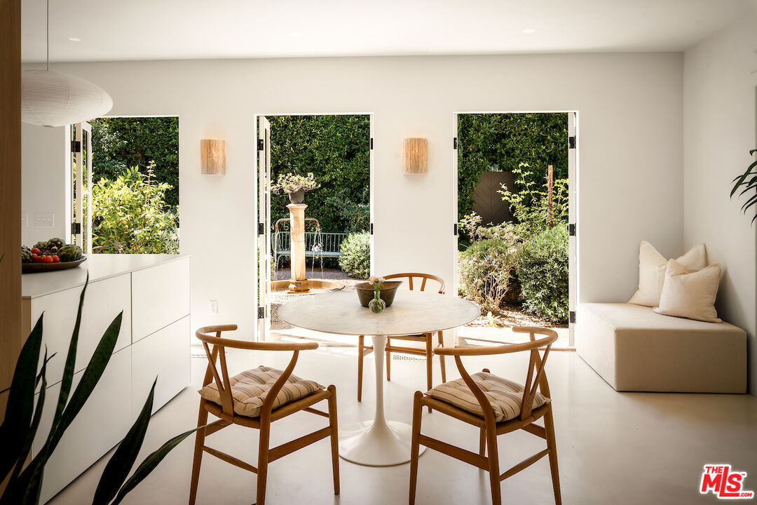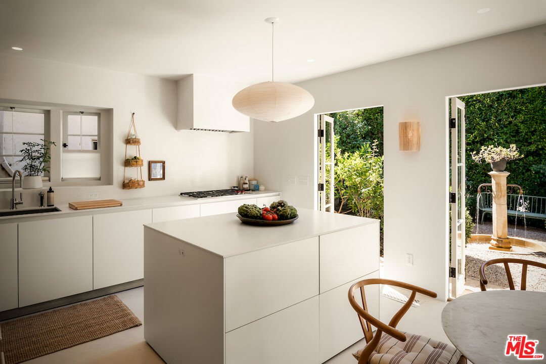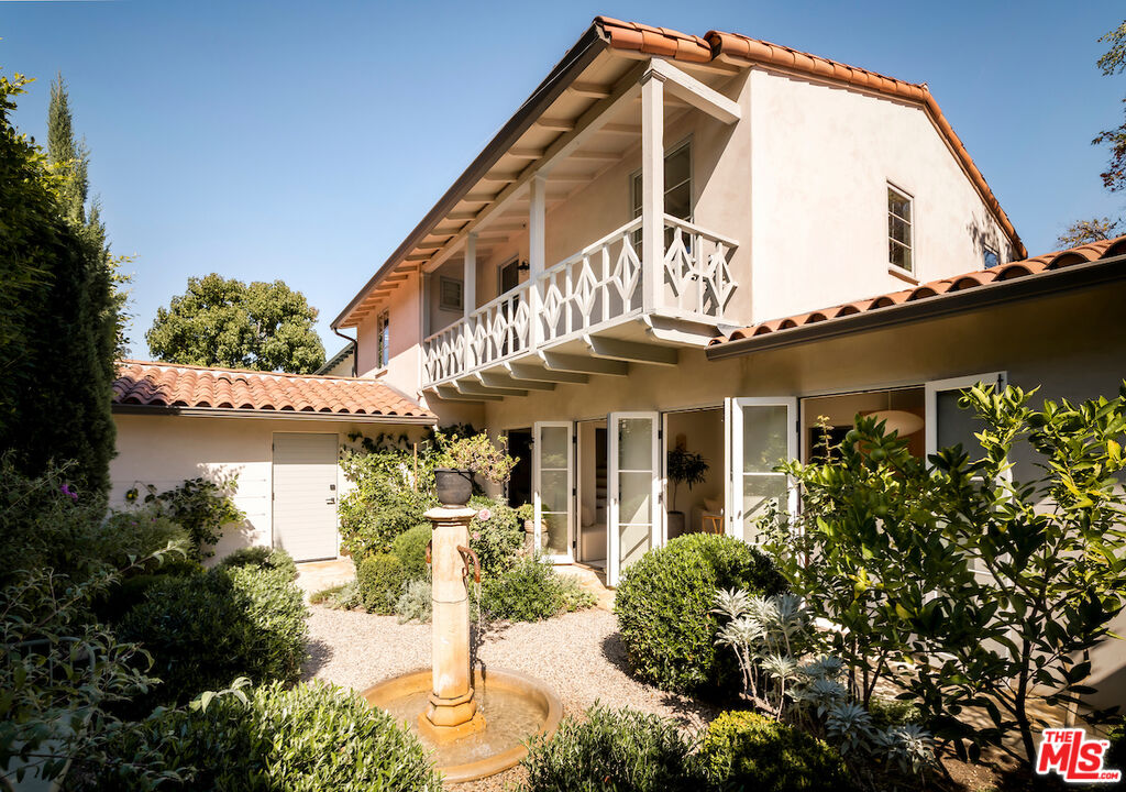 Any and all offers will be reviewed on the afternoon of Friday, October 24. A Mediterranean Escape in Silver Lake's Moreno Highlands! Just moments from the Reservoir, this exquisitely renovated 1933 Monterey Colonial home offers 4 bedrooms and 4 bathrooms, masterfully blending modern design with timeless warmth and charm. A true private compound, the property is fully hedged and fenced for ultimate privacy. Step through the front gate and into a romantic courtyard garden with a trickling antique fountain, an enchanting secret oasis that feels worlds away, reminiscent of the South of France. Designed for effortless indoor/outdoor living, French doors from the kitchen and dining room open to the garden, while a covered second-floor balcony overlooks the serene grounds. The flat backyard is an entertainer's dream, featuring a stunning pool, patio, and fountain, perfect for dining al fresco or soaking in the sun. Inside, the home is a designer's work of art, showcasing a Bulthaup kitchen, plaster walls, vintage ironwork, California Faucets, Merit hardware, marble terrazzo, and exposed beam ceilings. Every window is custom-made by TM Cobb, complementing the high-end appliance suite that includes a Miele refrigerator and dishwasher, Wolf oven and cooktop, center island, and a coffee station that tucks away out of sight. The generous primary suite offers a luxurious retreat with vaulted ceilings, dual walk-in closets, and a breathtaking spa-like ensuite bathroom finished in marble terrazzo and tadelakt plaster. Modern comforts include solar power and a Life Source whole-home water filtration system, combining sustainability and wellness with classic architectural beauty. Ideally located in the Ivanhoe Elementary school district and moments from Silver Lake favorites like L&E Oyster Bar, Bar Siesta, La Mill Coffee, and the Silver Lake Reservoir, this property is a rare architectural gem in one of Los Angeles's most sought-after neighborhoods. Constructed with mindful craftsmanship and intention, crystals were placed throughout during renovation to promote clarity, calm, and connection, creating a sanctuary that nurtures serenity and peace.