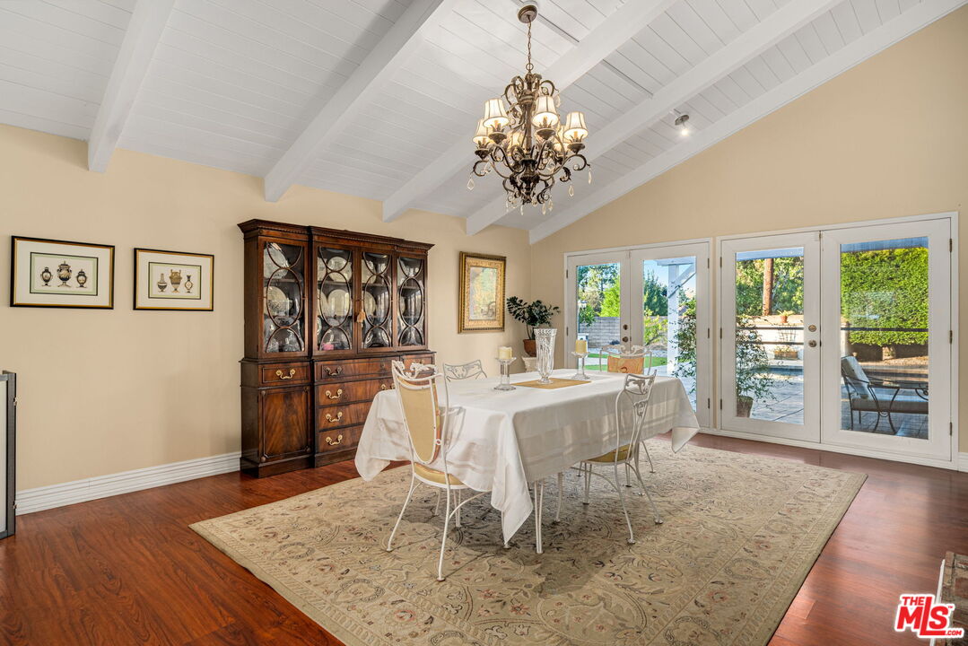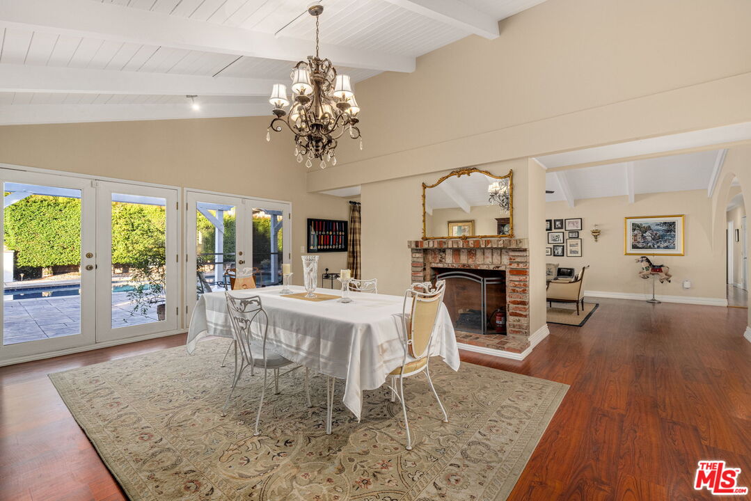 Welcome to this beautifully updated and well-maintained Charles Du Bois A.I.A. home, located in the highly sought-after Woodland West community. Situated on an expansive nearly 14,000 sq ft corner lot, this residence offers one of the neighborhood's most impressive backyards, an ideal blend of relaxation, recreation, and outdoor living. Inside, the home showcases the timeless architectural character Du Bois is known for, including vaulted ceilings, an iconic double-sided fireplace, and generously sized living and dining spaces perfect for both everyday living and entertaining. The expanded and modernized kitchen features updated cabinetry, abundant counter space, and contemporary finishes that will appeal to home chefs and design enthusiasts alike. Additional upgrades include updated plumbing, newer windows, an updated electrical panel, and more, providing peace of mind for years to come. All bedrooms offer excellent proportions, vaulted ceilings, and a calm, comfortable ambiance. The backyard is an entertainer's dream: a large grassy yard, an oversized patio with pergola and dining space, a recently updated saltwater pool, fire pit with built-in seating, outdoor kitchen, and even a charming outdoor shower. A private side yard off the primary suite offers endless possibilities, perfect for a home garden, detached office, or additional storage. The property also boasts 12 mature fruit trees, including fig, lemon, tangerine, grapefruit, orange, apple, loquat, and peach, creating a lush and abundant outdoor sanctuary. Nestled on a peaceful cul-de-sac south of Mulholland, this home is part of a highly desirable neighborhood with excellent schools and the opportunity to waiver into Calabasas schools. Enjoy unbeatable proximity to local restaurants, grocery stores, shopping, farmers markets, hiking trails, and beautiful Malibu beaches. A rare offering of architectural pedigree, modern updates, and exceptional outdoor living, this is Woodland Hills living at its finest.