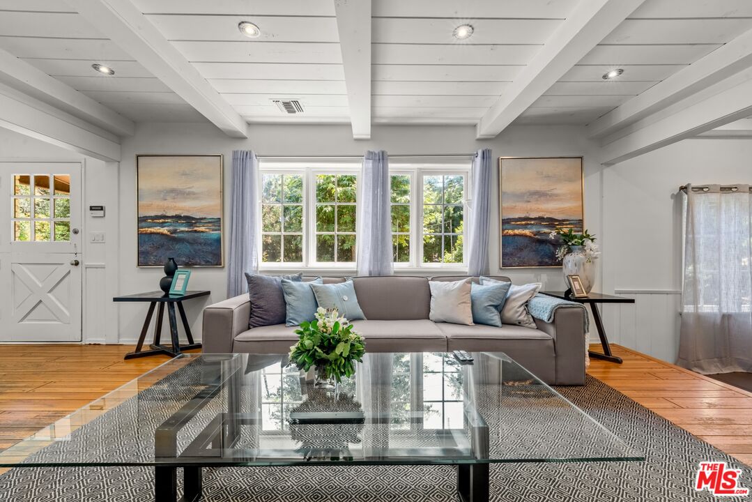 Welcome to a truly exceptional residence where comfort, style, and tranquility come together effortlessly. From the moment you enter, you're greeted by an atmosphere of warmth and timeless elegance. The kitchen features custom cabinetry paired with sleek stainless-steel appliances, creating a perfect balance of function and design for any culinary enthusiast.Original hardwood floors flow throughout, adding character and charm, while the exposed beam ceilings and brick fireplace enhance the home's inviting ambiance. This gated property offers the privacy and security you desire, complemented by a circular driveway that provides ample parking and an impressive sense of arrivaL ideal for both everyday living and entertaining. The backyard is a private oasis, thoughtfully landscaped to create the perfect setting for relaxation and outdoor dining. A fire pit sets the mood for cozy evenings or gathering with friends, while the resort-style pool and spa invite you to enjoy year-round California living.Located in the highly sought-after Walnut Acres neighborhood, this home offers both serenity and convenience. With easy access to local shopping, dining, entertainment, and nearby parks and trails, you'll enjoy the perfect blend of peaceful living and city accessibility.