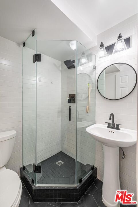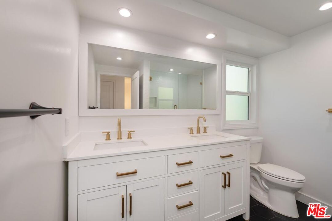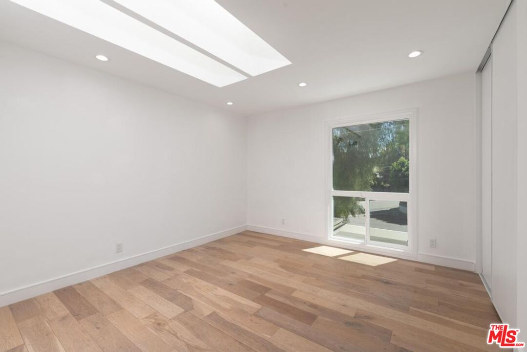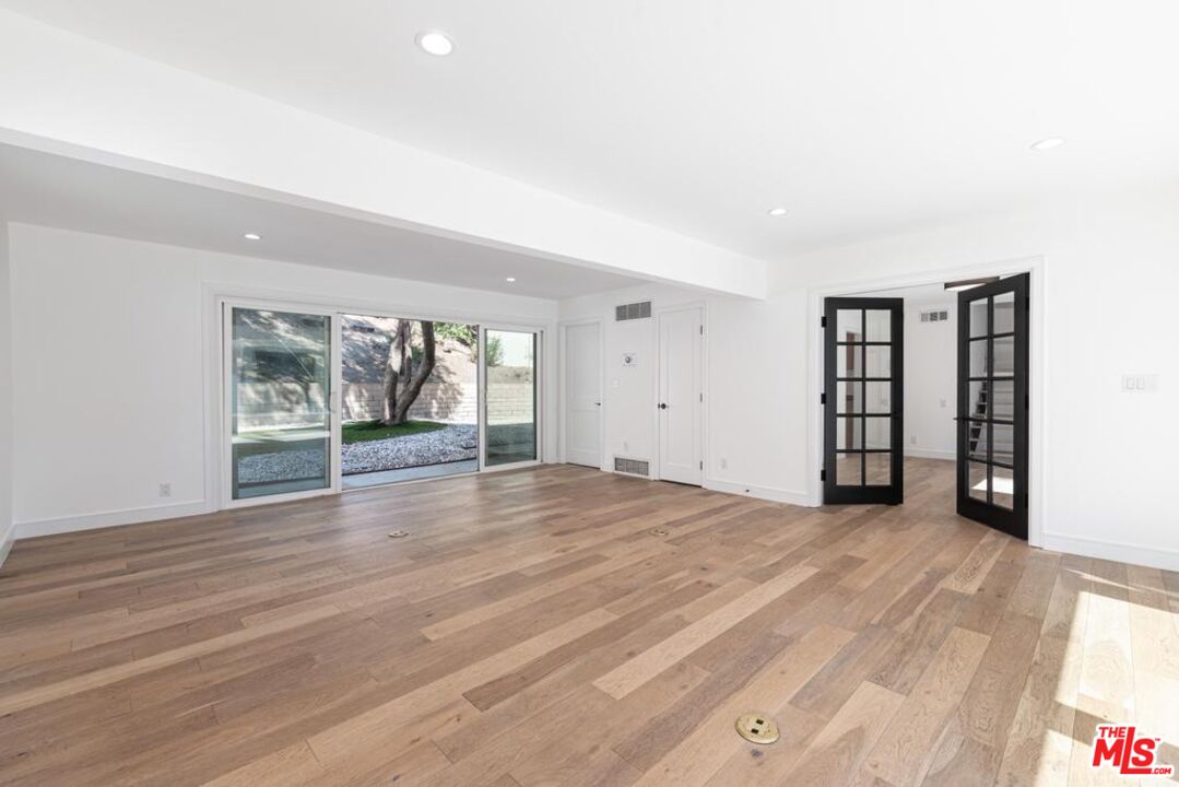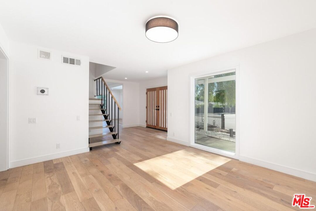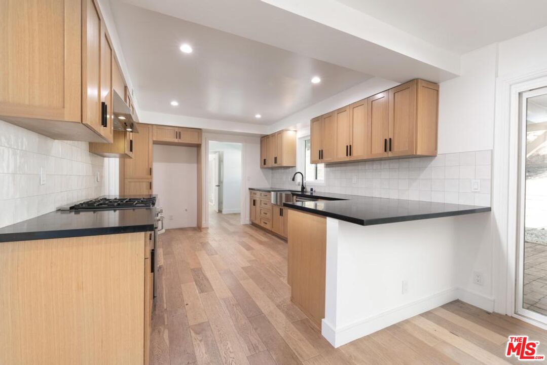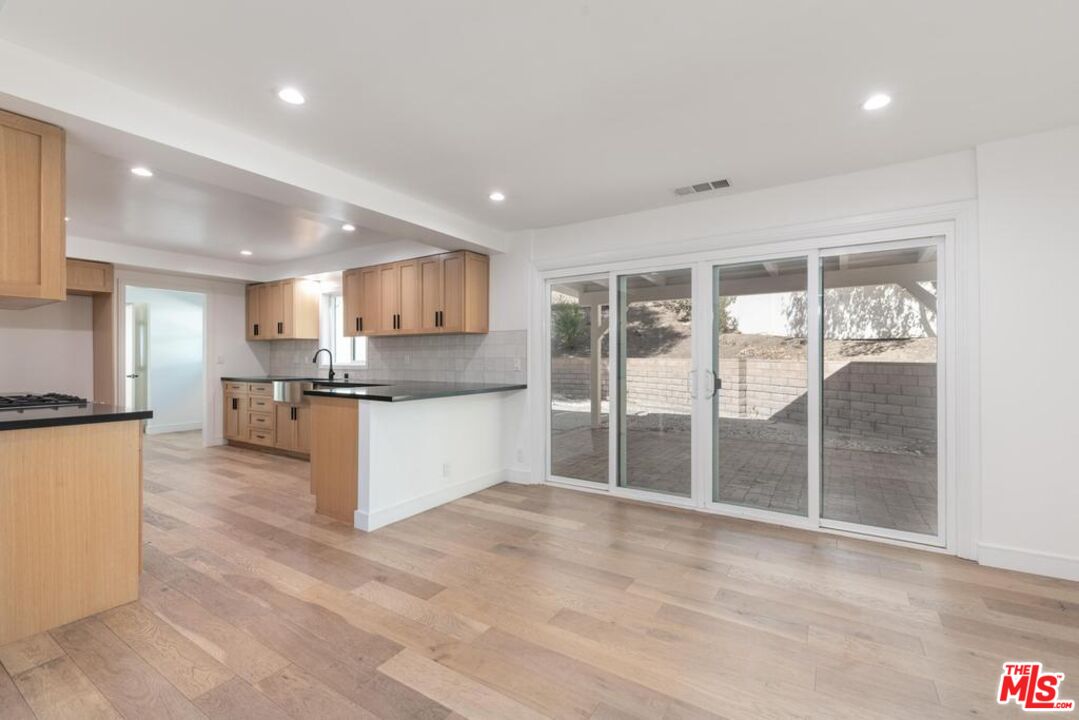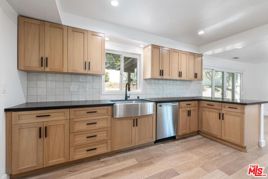 Contemporary home located in the lovely Walnut Acres neighborhood of Woodland Hills. The gated home sits on a 17,345 sq ft lot high above the street. A long private driveway accesses a detached 2-car garage. Entryway into the home is through a decorative double door that swings wide to expose an interior flooded with natural light from the large windows, sliding glass doors and skylights. A very spacious living room with access to the backyard is perfect for quiet relaxation or entertaining friends. The kitchen is completely updated and modernized with cabinets, quartz countertops and stainless steel appliances. The dining area adjacent to the kitchen has sliding glass doors leading to a covered brick patio ideal for dining alfresco. The den area also features outdoor access through sliding glass doors. The 4 bedrooms are located upstairs. The primary suite is extra-large with a spacious double closet and remodeled bathroom with dual sinks. Wood floors throughout this home add to the modern appeal. Conveniently located in close proximity to the Warner Center, The Village, dining and shopping areas.