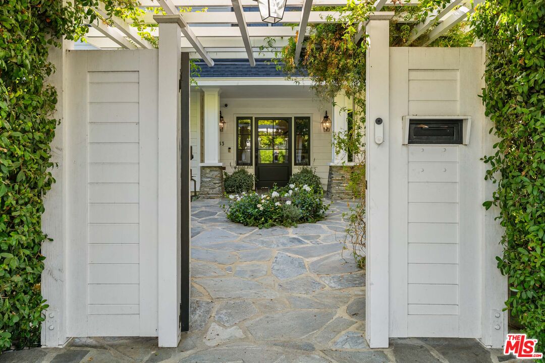 Set on an expansive and entirely flat corner lot south of Sunset Blvd, this beautifully updated 4-bedroom, 6-bathroom traditional offers unique floor plan, exceptional privacy, and timeless charm in one of Brentwood's most coveted neighborhoods. Surrounded by mature landscaping and tall hedges, the home enjoys a serene, tucked-away feel just moments from Brentwood's top shops, dining, and schools. Step inside to discover a home designed for both effortless living and elegant entertaining. The open chef's kitchen seamlessly flows into the inviting family room, creating a warm and welcoming heart of the home where conversations and gatherings come naturally. A separate, oversized formal living room exudes sophistication with its generous proportions, offering the perfect setting for cozy evenings by the fire or hosting guests in style. French doors spill out to a sun-kissed patio featuring an outdoor bar and built-in BBQ, ideal for memorable and laid-back afternoons soaking in the Southern California lifestyle. The spacious primary suite includes a generously sized adjoining room perfectly suited as a home office, nursery, or flexible fifth bedroom. This versatile space offers endless potential to adapt to your lifestyle needs. The backyard is a true retreat, featuring a large pool and spa, elegant hardscaping, and generous areas for lounging and dining al fresco. A detached creative studio with its own bathroom provides endless flexibility ideal for a guest suite, office, or art space. The finished garage currently functions as a home gym. and the existing layout allows for the easy addition of a fifth bedroom if desired. A rare opportunity to own a classic Brentwood residence with incredible privacy, scale, and versatility on one of the neighborhood's most desirable corner lots.