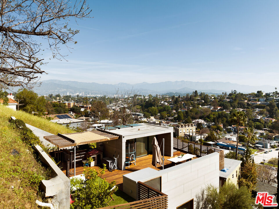 Set into the coveted Franklin Hills of Los Feliz, this striking contemporary hillside home captures sweeping Silver Lake views and delivers the elevated indoor-outdoor lifestyle that defines modern Los Angeles living. With panoramic sightlines from nearly every level, this is a rare opportunity to own a Los Feliz home with a view in one of LA's most architecturally significant neighborhoods. Designed around a dramatic central atrium, the home's soaring ceilings and expansive skylights flood the interior with natural light throughout the day. Walls of glass and Fleetwood sliders create seamless transitions to surrounding terraces, blurring the line between indoors and out while framing the hills and skyline beyond. The main living level offers an open-concept layout ideal for both entertaining and everyday life. A sleek modern kitchen with custom wood cabinetry, high-end appliances, and clean contemporary finishes anchors the space. White oak floors bring warmth to the expansive living and dining areas. The main level open effortlessly onto a spacious deck overlooking Silver Lake, creating the perfect setting for morning coffee or sunset gatherings above the city. The primary suite is positioned to take full advantage of the home's hillside setting and with ample closet space and ensuite bathroom the retreat feels both private and serene. Above it all, a rooftop deck crowns the residence, offering panoramic views across Silver Lake and Los Angeles, an ideal vantage point for evening dinners, entertaining, or enjoying the iconic LA skyline. Located in the heart of Los Feliz, moments from Griffith Park, acclaimed dining, and the vibrant culture of both Los Feliz and Silver Lake, this architectural home blends modern design, sweeping views, and the walkability Angelinos love.