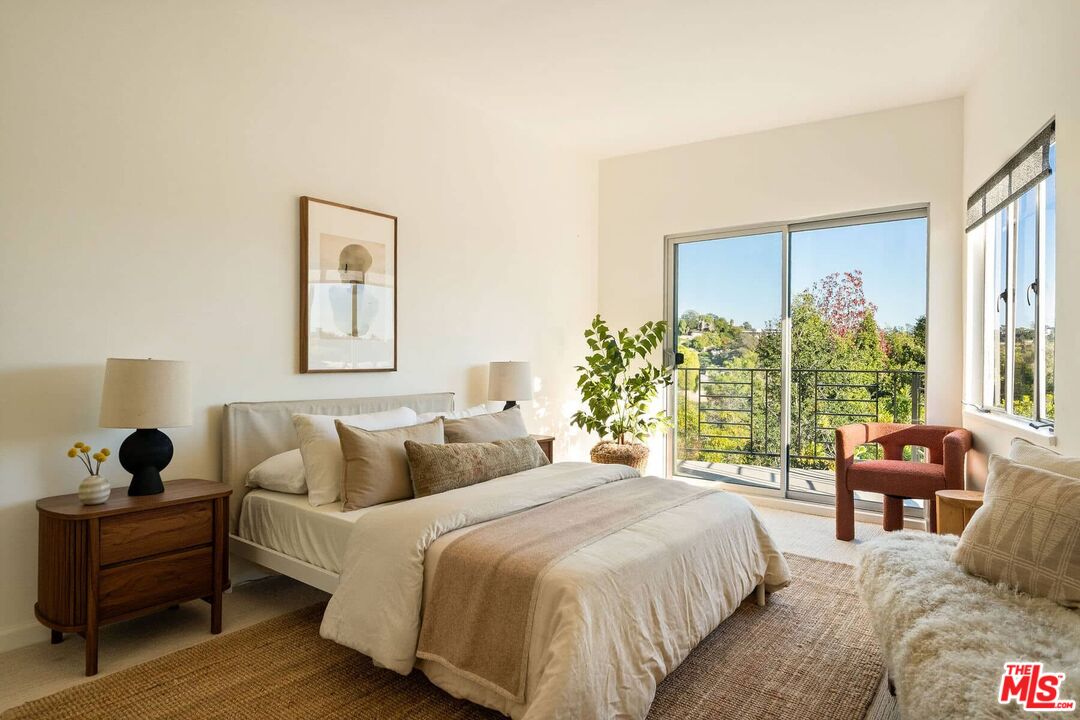 Here is a gift for the Holiday Season! A mid-century gem offering scale, view, and enduring architectural character in prime Silver Lake. Sited along a coveted stretch of Kenilworth Avenue, this 1950s classic captures cinematic vistas of the Silver Lake Reservoir and the San Gabriel Mountains. Iconic mid-century lines, walls of glass, and effortless indoor-outdoor movement to the dining terrace define the home's timeless spirit. Upon entry, sweeping views immediately expand the formal living and dining room. A decorative classic brick, open corner-view fireplace grounds the space with true mid-century presence, enhanced by original soffit lighting and access to two outdoor terraces. The modernized kitchen includes generous cabinetry, abundant counter space, a breakfast area, and views of the front garden and mountains. A full bedroom with ensuite bath on this level opens to a terrace with reservoir, mountain, and treetop outlooks. A magnesite staircase, a hallmark of the era, leads to the warm and functional lower level. Here, a light-filled den with a second decorative fireplace, an original built-in desk, and a floor-to-ceiling bookcase highlights the home's architectural roots. The primary bedroom enjoys reservoir and treetop views and has direct access to the shared hall bath. A third bedroom, hallway lined with abundant built-in storage, and a spacious utility room complete this level. A substantial laundry room offers potential for creative use or a play space that opens directly to the expansive yard. The generous backyard provides room for a pool, outdoor kitchen, playground, a dedicated workspace, or full ADU. There is a spacious garage with room for storage and one large vehicle or two small cars. A special opportunity to live in an iconic pocket of Silver Lake, just moments from the reservoir path, meadow, and the neighborhood's beloved cafes and hotspots.