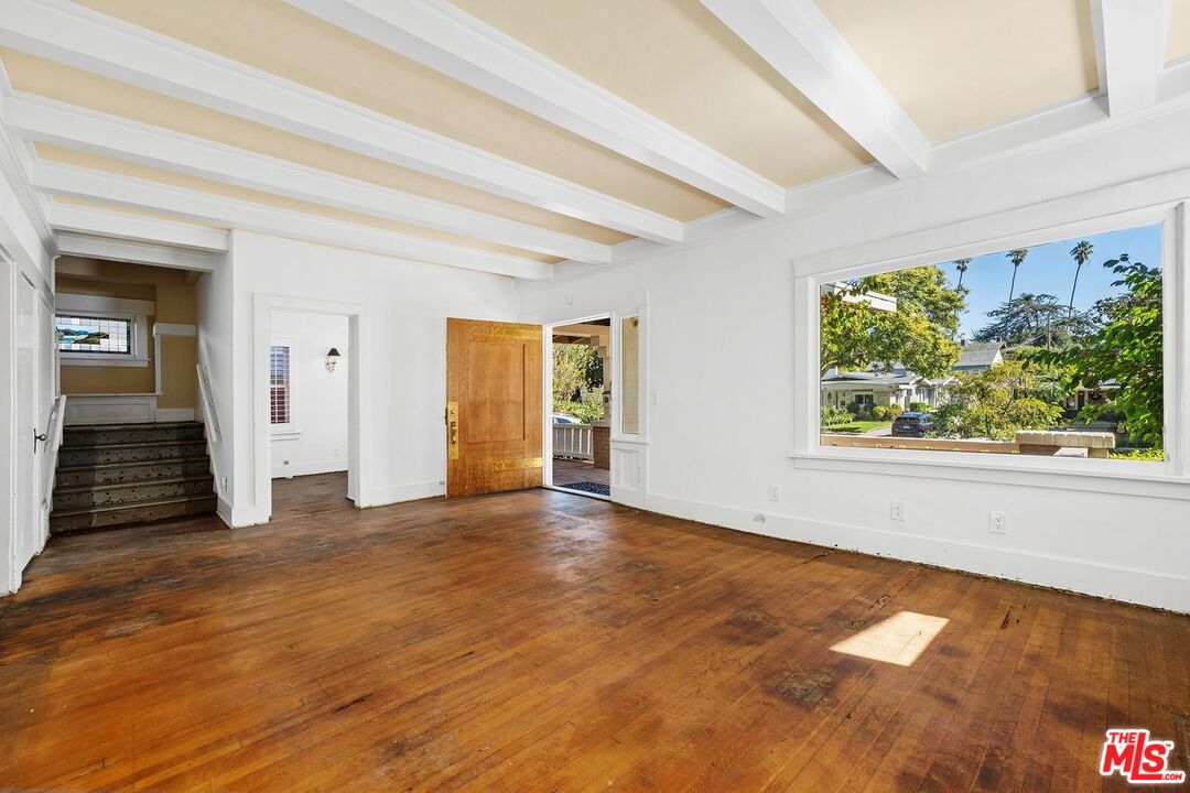Cherished by one family for generations, this two-story 1910 Arts & Crafts era Craftsman sits proudly on a knoll in the St. Andrews Square Historic District. A welcoming front porch and light-filled rooms evoke timeless neighborhood charm. The floor plan includes a living room with side porch, formal dining room with built-ins, kitchen with breakfast room, and one bath downstairs. As one ascends the stairs, at the landing is an original stained glass window and built-in bench that serves as storage. Upstairs are three bedrooms and a full bath. The oversized backyard is the showstopper - an expansive setting with mature trees, koi pond, and endless potential for outdoor enjoyment, gardening, and entertaining. Original details and natural light throughout provide the perfect canvas for restoration. Upgrades include a new roof (2019) + electrical and solar (2013). Moments to Larchmont Village, DTLA and K-town. 3rd Street elementary. A rare chance to reimagine a beloved Hancock Park area classic for today.