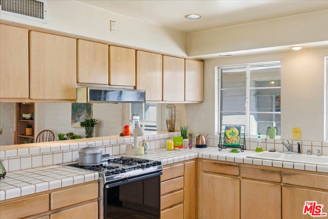 Palm Springs meets Sunset Park. Reminiscent of a marred mid-century rambler motel in the California desert, this cool and composed concrete block classic compound cleverly combines a 2424 square foot "U-shaped" single story floor plan in the main home with an extra wide garage and adjacent workshop that will certainly capture the creative's curious heart. Superbly situated above the street on a sprawling 6998 square foot lot (per assessor) and featuring a charming covered front porch, the understated entrance opens onto an expansive living area punctuated by a statement fireplace and seldomly seen backlit soffits while seamlessly flowing into the spacious dining room and kitchen for easy breezy entertaining and everyday enjoyment. Bathed in natural light and enveloping the tranquil central flagstone courtyard, numerous doors and steel casement windows create an airy ambiance and perfectly balance the bedroom wing featuring a private primary suite at the end of a lengthy vestibule. Some might salvage the Saltillo tile floors, plantation shutters, generous closet space and built-in bookshelves, while super sophisticated tastes might start from scratch and scrape the interior or the entire structure for that matter to conceive a one-of-a-kind Santa Monica sanctuary supremely sited overlooking the recently proposed "Great Park" and offering views of the Marina and beyond. Completing the package is close proximity to sumptuous public/private schools including Grant Elementary or Crossroads and a standalone 2-car detached garage + an equally large workshop space that could make a serious ADU, office, gym, playroom, or studio. Sold as-is without credits or repairs, this extraordinary "trust sale" without court confirmation is an exciting opportunity for visionary owner/users, developers, and flippers alike. Undeniably chic and an extra special treat for anyone seeking a uniquely beautiful blank canvas with phenomenal upside potential.