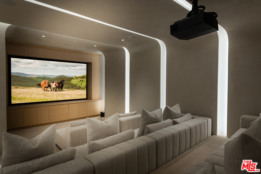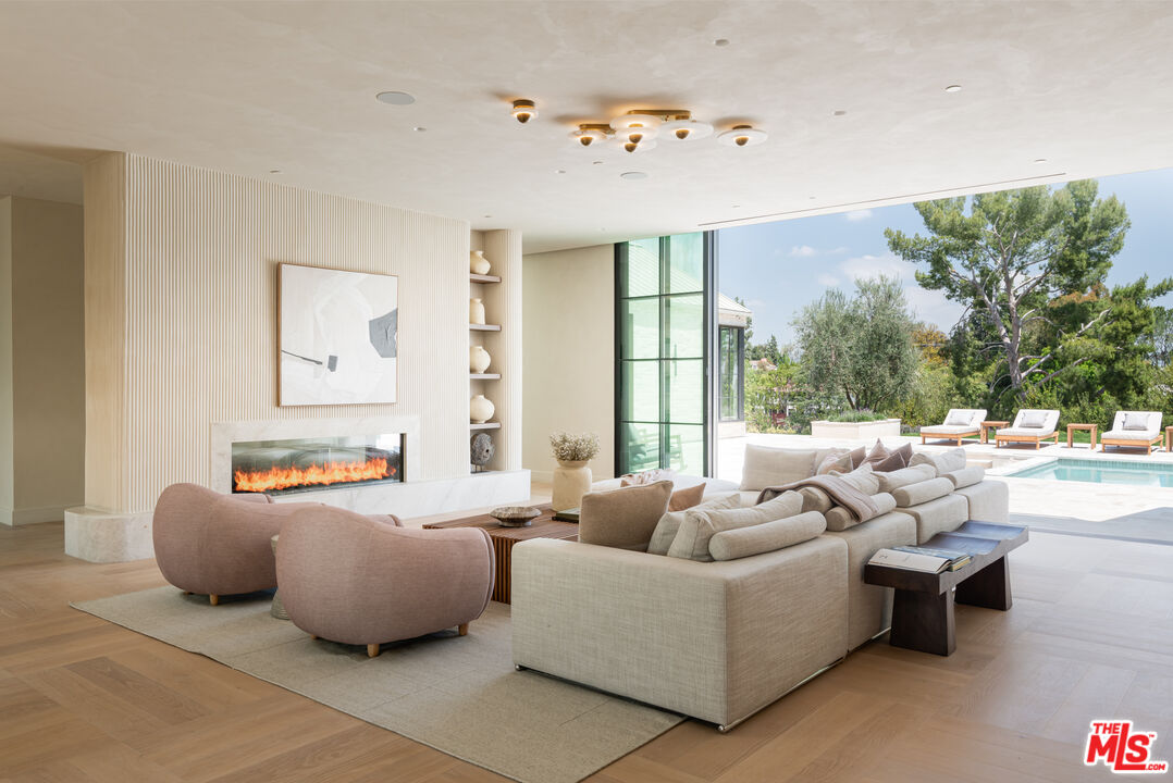 A modern tranquil chalet hidden in the hills of California. Unveiled as a paragon of contemporary architecture and refined design, 24172 Lupin Hill Road emerges as a newly constructed estate nestled within the prestigious, guard-gated community of Hidden Hills. An inspired collaboration of design and craftsmanship, this nearly 11,000-square-foot estate with a 4-car-garage is a rare offering that captures the essence of luxurious interiors and the laid-back beauty of California living. Set behind grand double gates and approached by a long, private driveway framed by majestic landscaping and a roundabout motor court, this architectural tour de force is the epitome of seclusion and elegance. Every inch of the home speaks to intentional design and elevated living. Inside, a vast open floor plan unfolds beneath soaring ceilings, blending form and function with the use of natural stone, organic textures, and exquisite custom finishes throughout. Anchoring the estate is an oversized dedicated dining area, perfect for hosting grand-scale gatherings, and a striking library-office pairing that redefines luxury work-from-home environments. A four-car garage offers ample room for collectors and convenience, while the wellness wing transports residents into a sanctuary of rejuvenation. Here, a spacious wellness and fitness room complemented by a cold plunge stone tub beneath the open sky, inviting daily rituals of health and vitality. The primary suite is a true sanctuary featuring dual walk-in closets of generous scale and a spa-worthy bathroom that rivals the finest hotels, complete with a sculptural stone soaking tub oriented toward sweeping canyon and hillside views. For ultimate functionality and guest privacy, a beautifully appointed poolside guest house expands the estate's living quarters, ideal for hosting in effortless style. Indoor and outdoor boundaries dissolve as walls of glass frame the estate's manicured grounds, where curated landscape design meets breathtaking natural surroundings. Every detail from materiality to flow has been crafted to offer an immersive living experience that is both grounded in nature and boldly luxurious. More than a residence, 24172 Lupin Hill Road is a private sanctuary, a design statement, and a legacy in the making a new benchmark for the traditional-modern living in Hidden Hills. Also offered for Lease, presenting a rare opportunity to experience this exceptional estate.