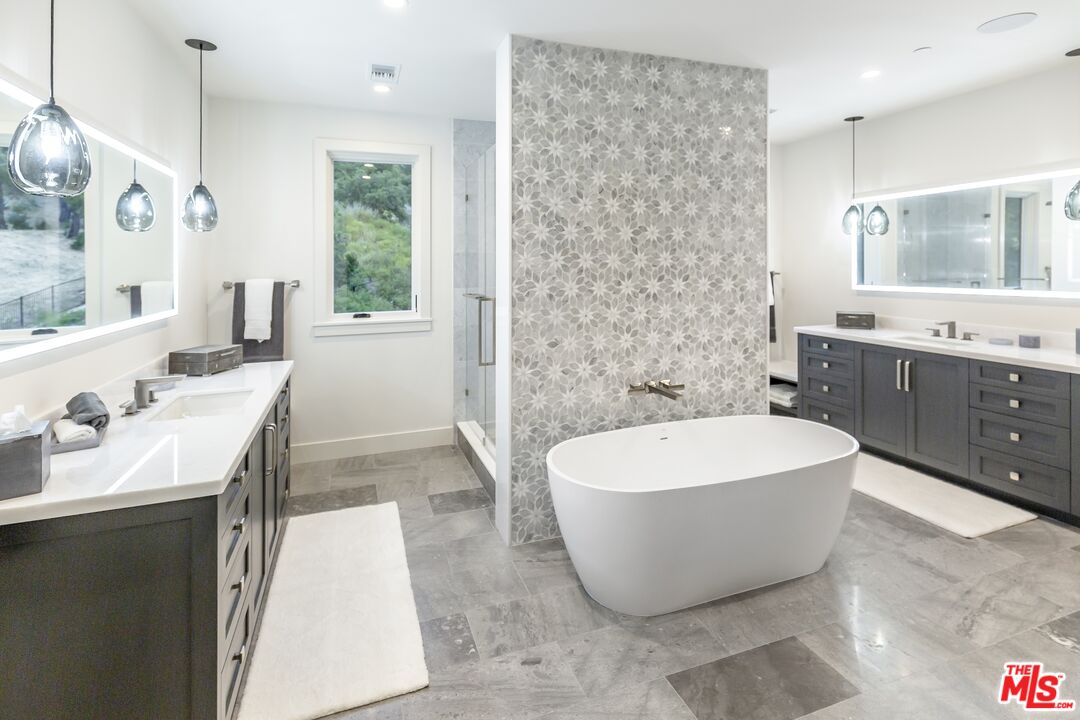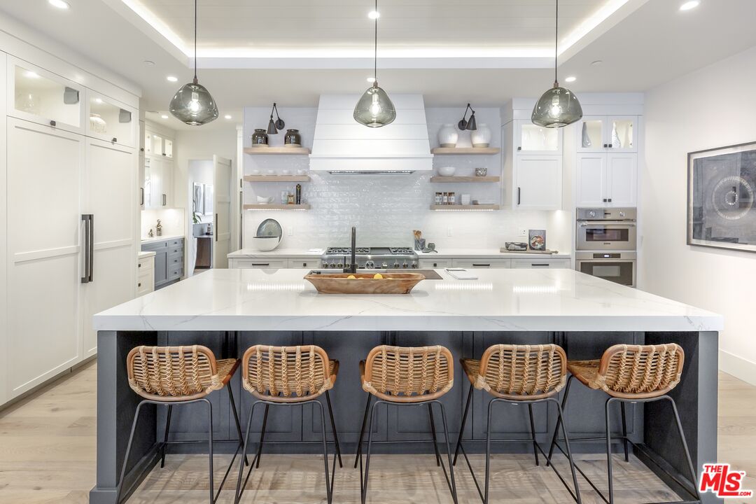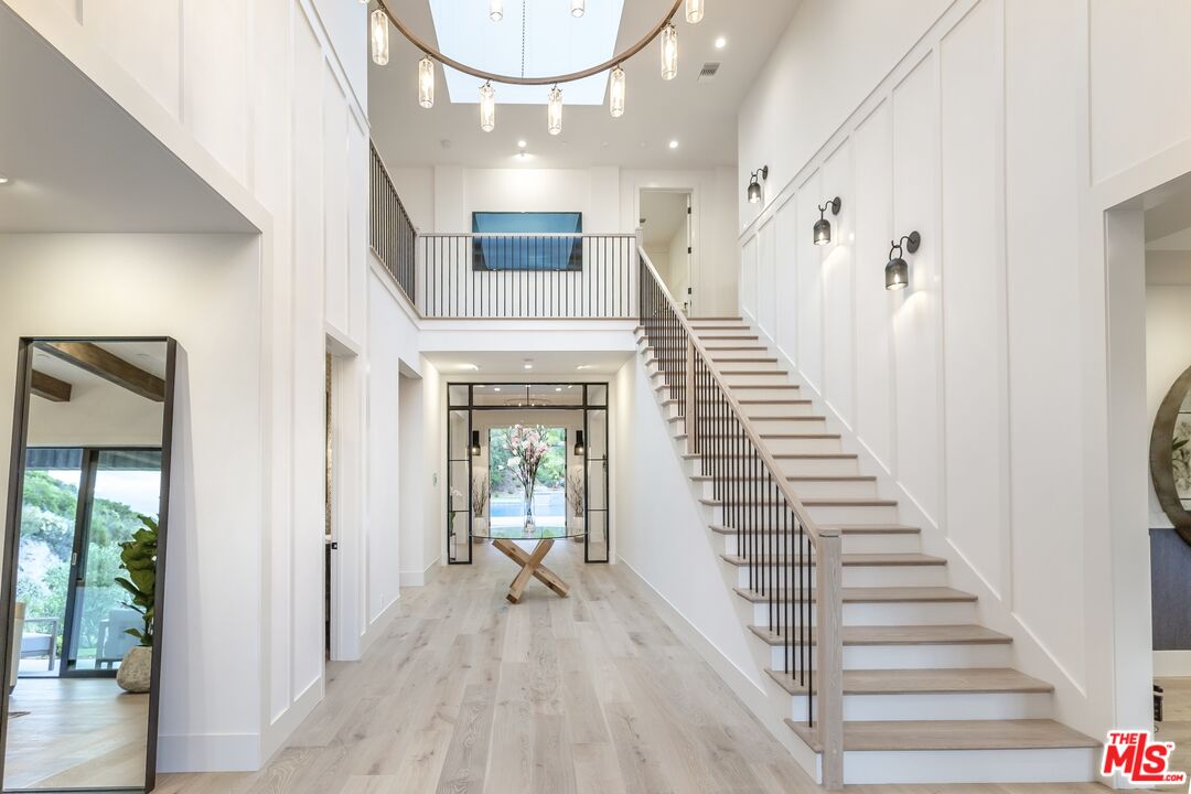 Nestled within the scenic rolling hills of Calabasas, this exquisite modern farmhouse redefines luxury living. Spanning over 2 acres of lush, flourishing land, this estate seamlessly blends contemporary elegance with natural beauty, offering an unforgettable retreat. From the moment you step into the striking foyer, you're captivated by the soaring volume ceilings, an abundance of natural light pouring through expansive windows, and the warmth of wide-plank white oak floors that flow throughout the home. The formal living room exudes sophistication, while the superb office space and inviting great room are anchored by a sleek, modern fireplace. The state-of-the-art kitchen is a chef's dream, boasting top-of-the-line Thermador appliances, a subway tile backsplash, shiplap accent walls, and a butler's pantry that conveniently opens to the outdoors; perfect for effortless year-round al fresco dining. Upstairs, discover three generously sized en-suite bedrooms and a versatile bonus room with an attached balcony. The primary suite is a true sanctuary, offering breathtaking views of the surrounding hills. The spa-inspired master bath features dual walk-in closets, a soaking tub, and a stunning double-sided shower that epitomizes luxury. The rear grounds are an entertainer's paradise, complete with a cabana featuring a private bathroom, an outdoor grill station, and a sparkling pool and spa. Whether hosting gatherings or enjoying quiet evenings under the stars, this property is designed for seamless indoor-outdoor living at its finest. Now also available for lease at $35,000 per month.