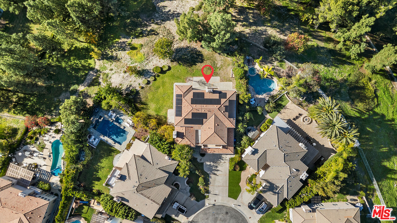 Welcome to 24310 Belford Ct a rare Monte Vista gem offering privacy, elegance, and sweeping natural beauty. Set on an extraordinary 2+ acre cul-de-sac lot, this distinguished 5-bedroom, 4.5-bath Mediterranean estate style home delivers over 4,400 sq ft of refined living space (per assessor) with unobstructed views of rolling hills, mature trees, and the peaceful wide-open spaces typically reserved for true country estates. Step inside to discover craftsmanship and comfort at every turn. A romantic winding staircase, high ceilings, and French doors set a tone of timeless sophistication. The gourmet kitchen is a chef's delight, featuring granite countertops, abundant cabinetry, a center island, tile floors, and a charming breakfast area that invites relaxed mornings. The home includes a private study, a downstairs bedroom ideal for guests or multigenerational living, and three fireplaces that warm the formal and casual spaces with ambiance. The spacious master suite is a luxurious retreat with private view balcony, and a spa-inspired bath with dual vanities, soaking tub, and separate shower. Outdoor living is equally impressive. Enjoy two patios with stone ribbons, a built-in BBQ, and idyllic vistas perfect for quiet evenings or entertaining under the California sky. Additional highlights include one wet bar, wood blinds and shutters, ample closet space, an indoor laundry room with a sink for convenience, and EV Charger for Electric vehicles. Built in 1994, this is more than a home it's a sanctuary. Experience commanding views, unmatched privacy, and a lifestyle of elevated comfort in one of West Hills' most coveted enclaves.