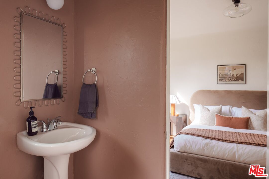 A charming Spanish Colonial hacienda tucked away on a corner lot in the Franklin Hills of Los Feliz. Wraparound front gardens and a walled courtyard - anchored by towering cacti, mature plantings, and a Jacaranda - frame the home's low-slung architecture: classic archways, a red Spanish tile roofline, and a turreted foyer. Inside, the living room is pure romance, showcasing garden views and crowned by a wood-vaulted ceiling. Original details shine: a decorative fireplace, vintage sconces, and built-in niches. Refinished hardwood floors and original wood windows carry the home's character throughout. A formal dining room with a wrought-iron chandelier flows into the original vintage-tiled kitchen. Off the kitchen, a sunny breakfast room - ideal as a home office - opens to the courtyard through French doors. Three well proportioned bedrooms enjoy abundant natural light and hillside views, including vistas of the Griffith Observatory. Two bedrooms offer direct access to the rear deck - an inviting and private place to unwind. A hall bath with tub and separate shower, laundry area, and a en-suite bath complete the home's 1,588sf floor plan. Below the home is a substantial garage plus extra storage. Uniquely positioned on a gentle corner with over 90 feet of frontage, the home sits on its own promontory above the street. Close to daily essentials like Baller Hardware and Gelson's, the shops and dining of Los Feliz Village, John Marshall High School, Lycee International, and Franklin Hills' newest coffee and wine spot, Reunion & Co.