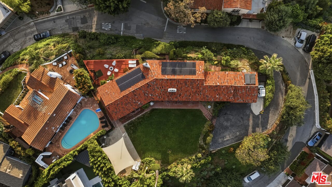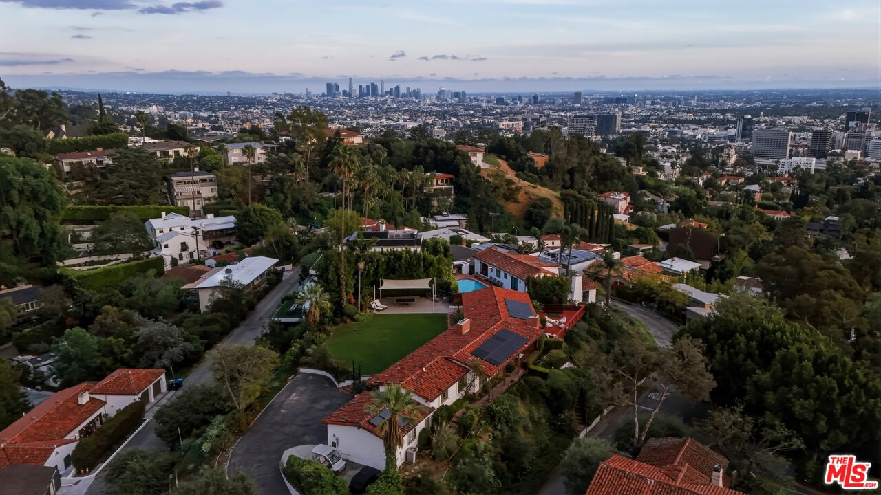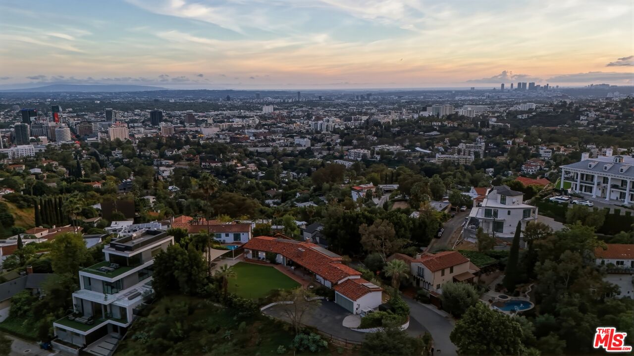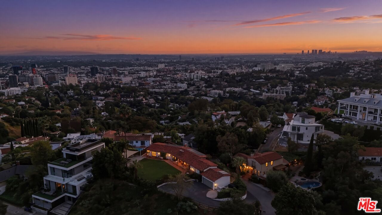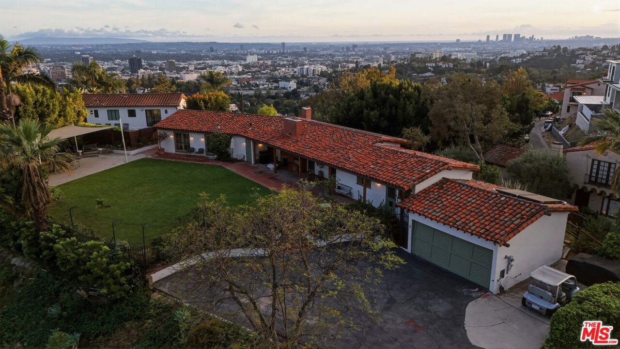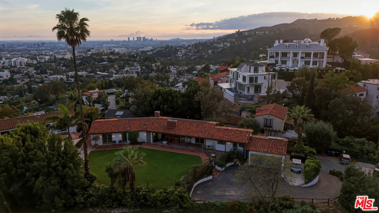 Prime development opportunity in the heart of Beachwood Canyon. This rare offering comes with fully approved RTI (Ready-To-Issue) plans and permits for a striking approximately 9,600-square-foot modern estate, along with the option of an exemption allowing for an additional 2,000 square feet of living space, creating an opportunity to build a truly significant architectural residence in one of Los Angeles' most iconic hillside enclaves. Perched atop a rare, mostly flat half-acre promontory, the property captures breathtaking, unobstructed panoramic views stretching from the Hollywood Sign to Catalina Island, with sweeping vistas that showcase the full majesty of the Los Angeles skyline and coastline. The existing 1950's California Ranch home enjoys extraordinary privacy as it's elevated above the neighbors. Additionally, as the property is located on a loop, there is minimal traffic, creating an exceptionally serene setting that is only minutes away from the city. The residence consists of three bedrooms and two full bathrooms plus office or flex space. All bedrooms have double doors that open to the exterior showcasing either the city and ocean views or the flat lawn and views of the Hollywood sign and surrounding nature preserve. The additional office also has access to the lawn for blending business and pleasure. The main bedroom contains an en suite and double closets. Additionally, the third bedroom has its own cozy fireplace. The home maintains original charm and character in the beautiful living room with a high beamed wood ceiling and hardwood floors. The central fireplace creates an intimate, relaxing space further enhanced with the remarkable city views. The dining room connects directly to the kitchen with two separate preparation tops and Spanish tile floors. The laundry room is conveniently located off of the kitchen. Outside, the front of the home and patio has its own stepped pathway leading down to the street, while in the rear, there is an exterior fireplace with accompanying gas BBQ grill facing the flat grass lawn and spectacular views of the Hollywood sign and hills. The approved plans have been thoughtfully designed to maximize the site's extraordinary 360-degree views, creating a dramatic modern estate that fully embraces its remarkable setting. Accessed via a private driveway, the offering becomes even more compelling with two APNs included, presenting the unique potential to develop two separate residences: an exceptional opportunity for builders, developers, or end users seeking to create a landmark compound in the Hollywood Hills. The existing residence allows the next owner to occupy immediately or move forward with the approved plans or explore alternative development possibilities.