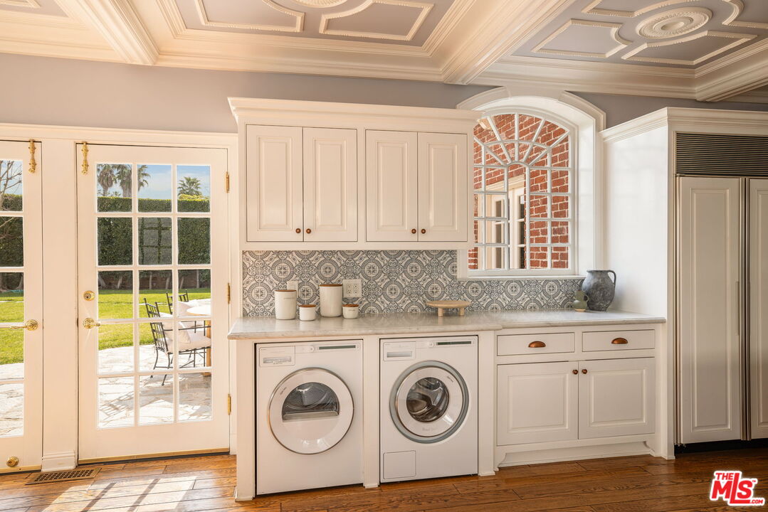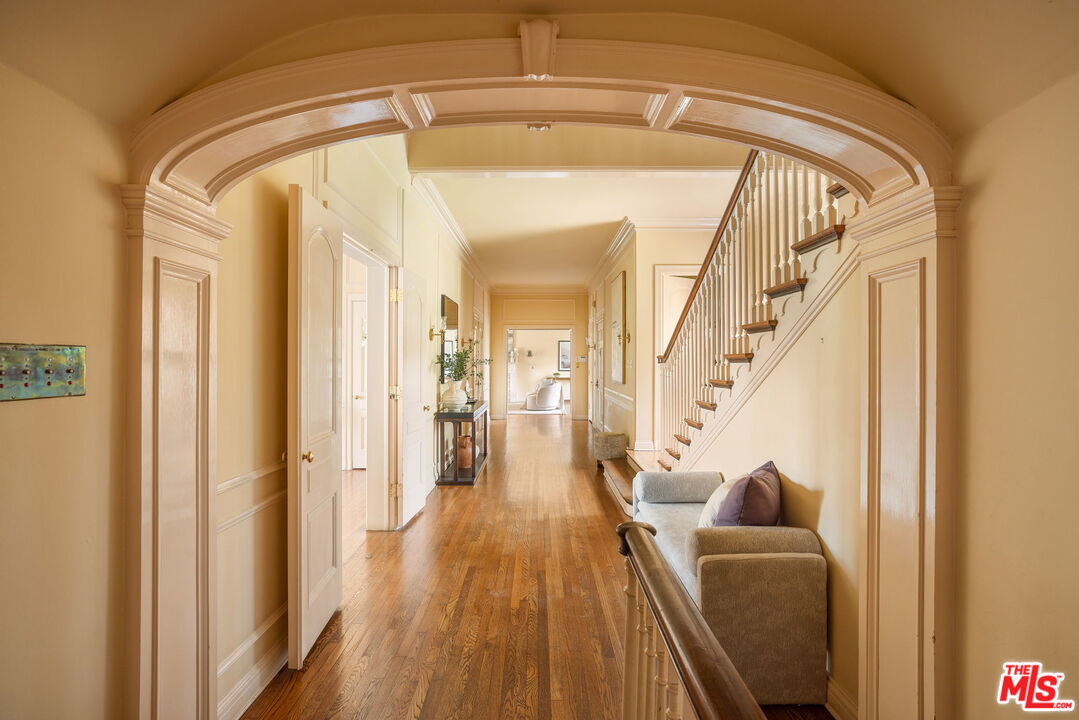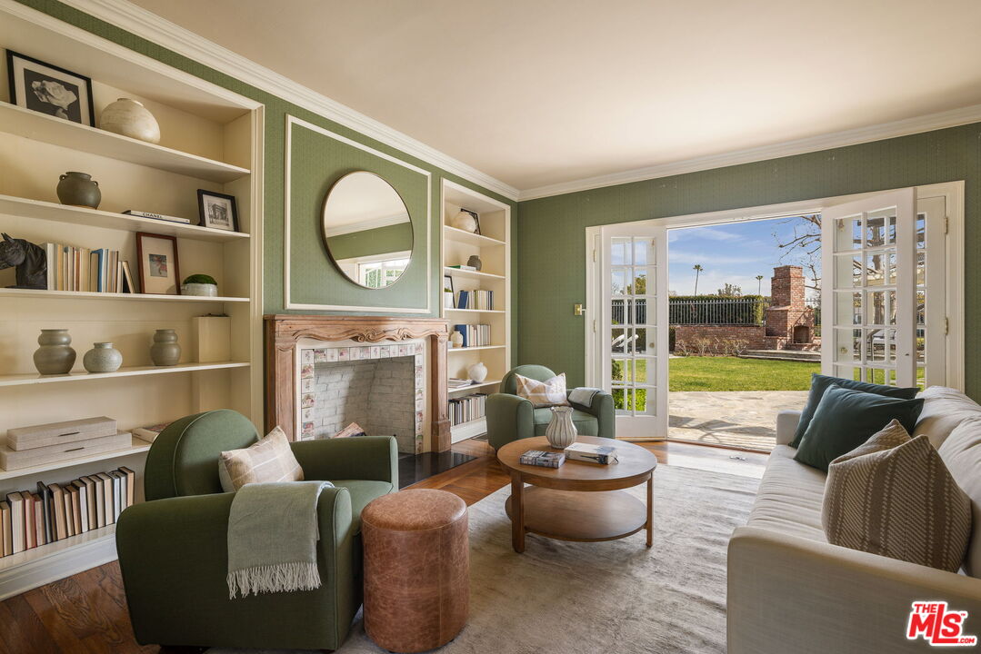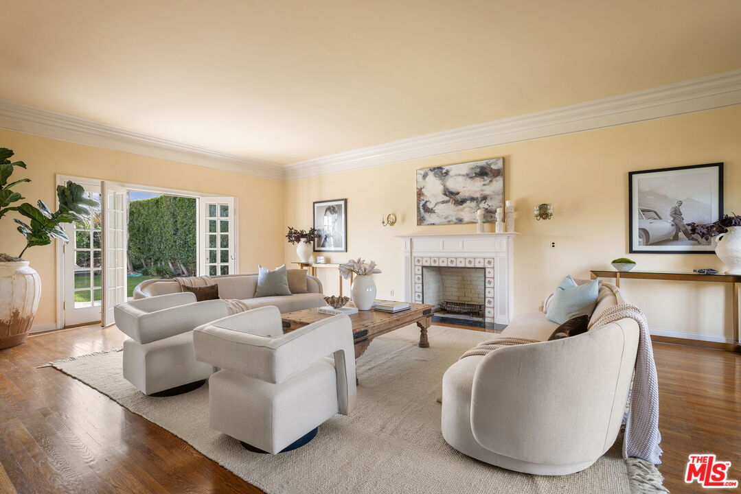 Set on Hancock Park's most coveted street, this grand Colonial estate overlooks the fairways of the Wilshire Country Club and embodies a rare blend of classic architecture with exceptional indoor-outdoor living. On the market for the first time in over 43 years, the residence is defined by large scale living spaces and exceptional privacy. A wide formal foyer introduces sophisticated interiors, including a formal living room and a refined library, both with fireplaces and access to a well-equipped garden. The dining room seats twelve, overlooking the manicured grounds. The chef's kitchen is adorned with top-of-the-line appliances, ample storage, a large center island, a second site for laundry, and a sunlit breakfast area with fireplace. The main level also includes two powder rooms, a housekeeper's suite, and direct access to the three-car garage. Upstairs, a sweeping staircase leads to a serene primary suite with panoramic golf course views, a fireplace, large dressing room, and en-suite bathroom. Completing the upper level are five additional, well-proportioned bedrooms, three updated baths, a playroom/flex space, a laundry room with kitchenette, and ample storage throughout. The sprawling backyard is ideal for entertaining, offering multiple outdoor lounge and dining areas, a private pool, fireplace patio, outdoor kitchen, unobstructed views of the golf course, all surrounded by lush landscaping. A rarefied opportunity in Hancock Park, moments to both the Wilshire Country Club and the perpetual buzz of Larchmont Village.