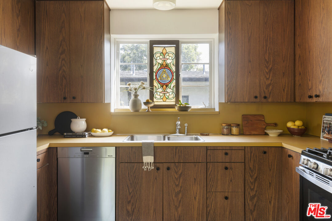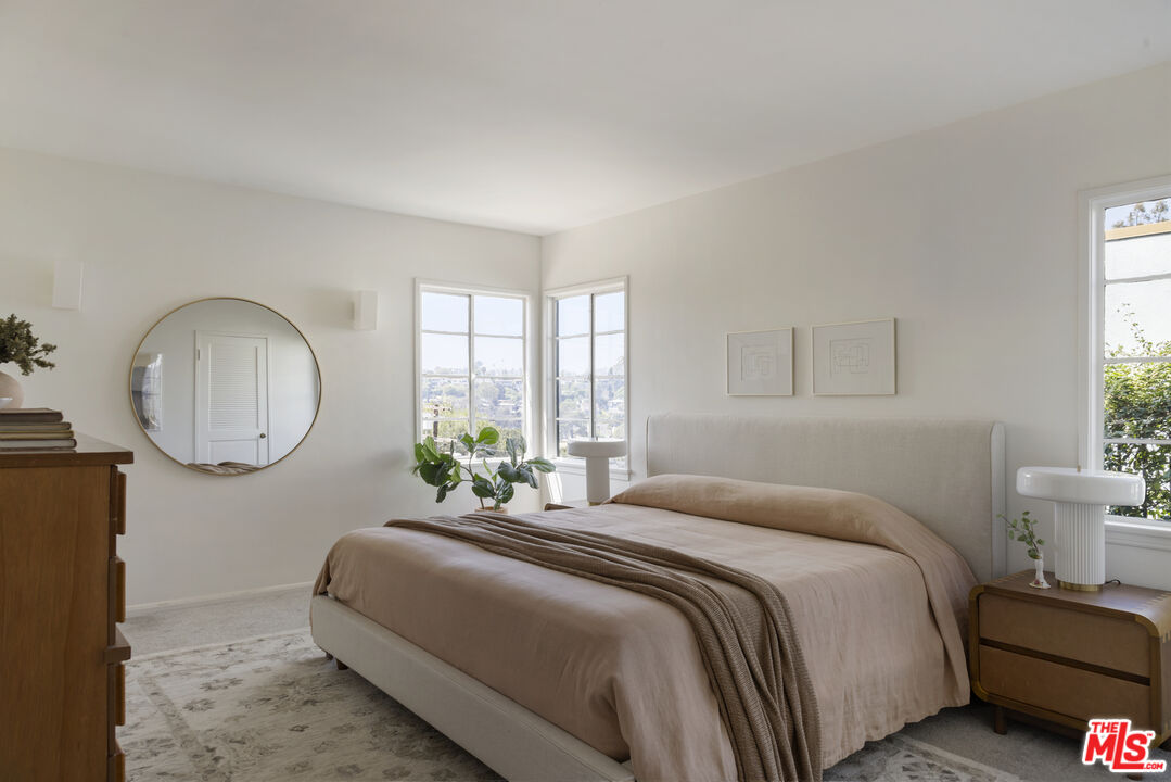 Across the street from the Silver Lake Reservoir is this effortlessly cool, character home on a 9,504 sqft lot with a shockingly large backyard. In the Ivanhoe School District and elevated above the street, the home offers both privacy and 360 degree views! Enjoy the views of the Reservoir, joggers and sunsets from the comfort of the picture windows in the living room, views of the San Gabriel Mountains from your backyard and Downtown skyline from upstairs. The floorplan is joyful and reminiscent of a time when dedicated spaces were the norm. Downstairs flows effortlessly from sunlit west-facing living room to formal dining room to eat-in kitchen with attached spacious mudroom + laundry room. Downstairs is completed with a family room and primary suite along with multiple access doors to the backyard. Upstairs are two charming bedrooms each with dormers facing the reservoir. The upstairs bathroom overlooks mountains and the backyard. There is also a large closet that could function as an excellent office. The backyard is remarkable in its size, utility and views. The yard is split into a front and rear section. The front section with brick path surrounded by small trees, foliage and is off the kitchen. Ideal for private dining and entertaining. The rear section is flat, open and park-like with a winding path that takes you past a couple fruit trees and opens to views of Silver Lake and the San Gabriels. Add a pool, build an ADU or both! In 22 years we've yet to come across a lot with this size and potential near the Reservoir. Finally, a two car garage at street level provides storage and EV charging capability. The property is an incredible value with immediate utility and unlimited upside potential.