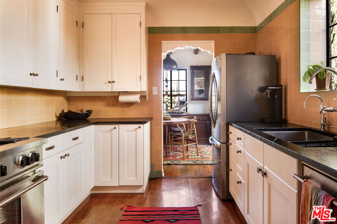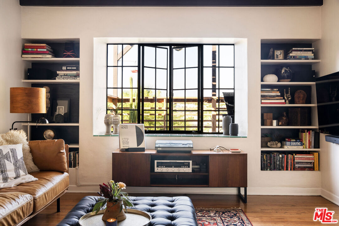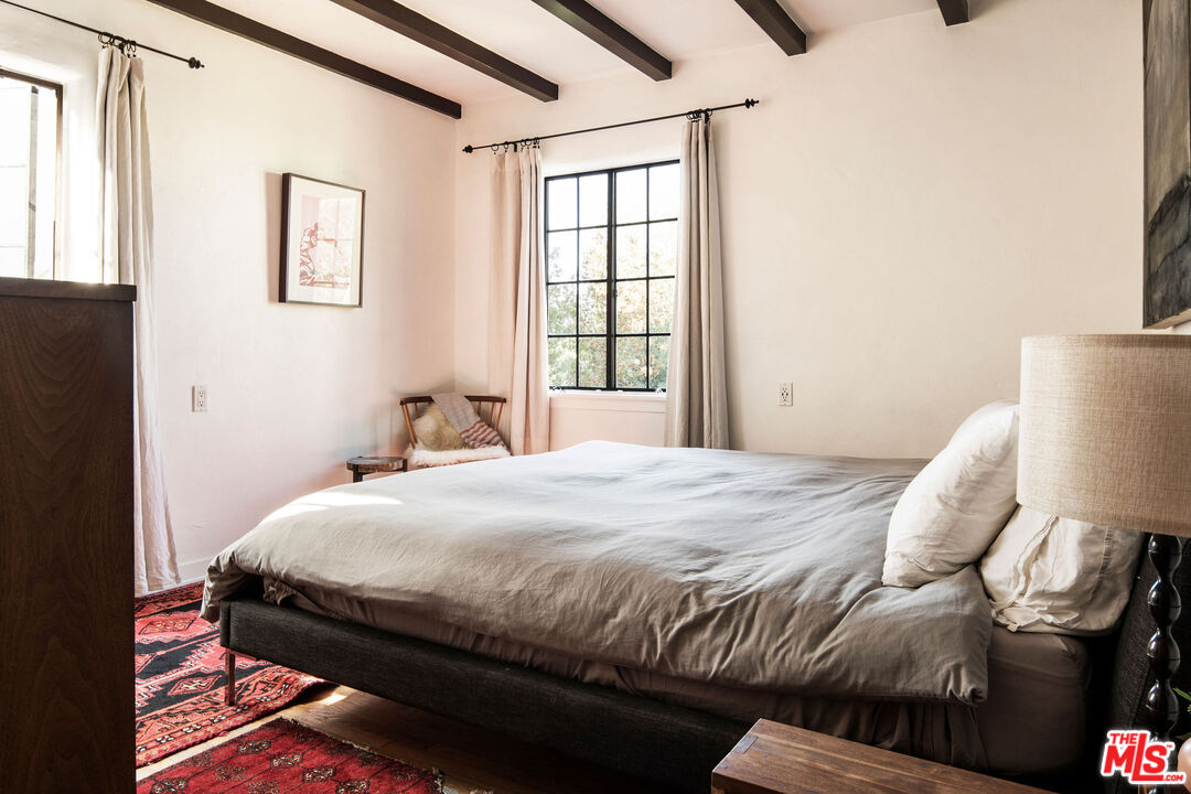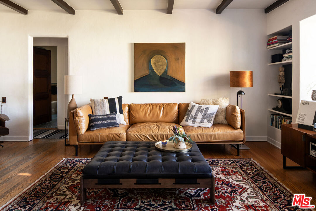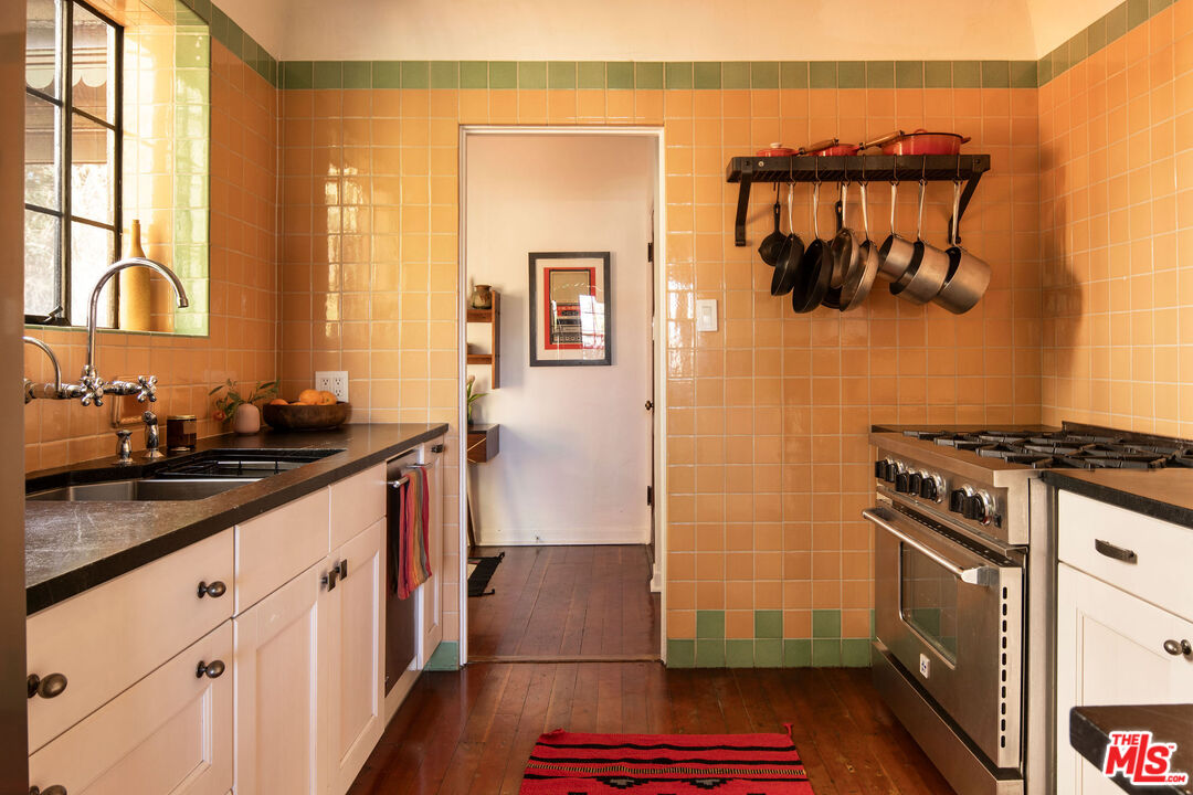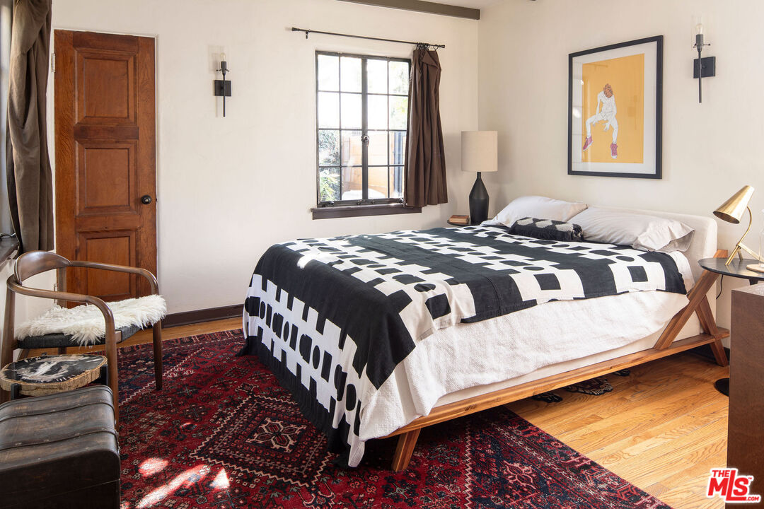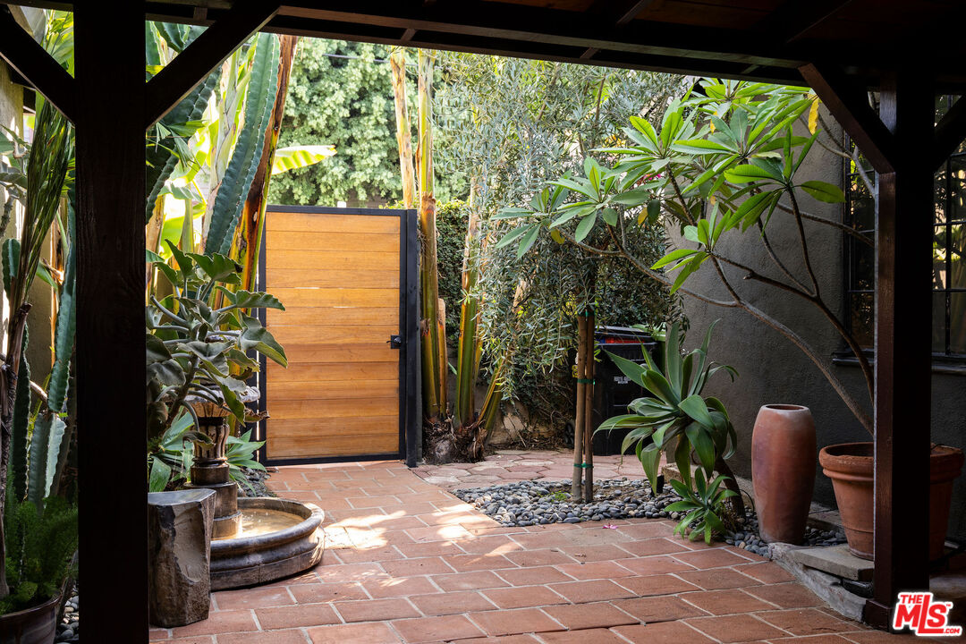 :: The Haft Residence A Masterpiece of Timeless Design :: Originally crafted in 1935 and thoughtfully expanded in 1954 by the legendary architect John Lautner. 2521 W 5th St. is a one of a kind, intentional fusion of romantic 30s hacienda and poignant 50s mid century architecture that has been passionately upgraded and restored over a 25 year period by the current owner. Two iconic phases of the development of Los Angeles, blended into one unparalleled property. Set behind a private gate and embraced by a verdant, serene courtyard, the home's original 1935 core exudes warmth and character. A rustic living room retains its original wooden floors, stained beamed ceilings, Malibu window tiles, built-ins and character rich plaster walls. Natural light beams through original metal windows that showcase mountain views and thriving, drought tolerant landscaping. Between two large and bright bedrooms is a classic and colorful turquoise and yellow 1935 deco bathroom, that remains beautifully intact. The living space progresses into an eating area that has additional original built-ins and exterior deck access, inviting indoor-outdoor living. Beyond a decorative scalloped archway is a stylish and large kitchen. The past shines along with the present, showcasing classic artisan deco tile work. Wide plank rustic floors marry the memorable with the modern with accompanying upgraded soapstone counter tops and Blue Star 6 burner gas stove and range. A long laundry space with a timeless quarter bathroom also leads to a large deck that has broad views with versatile uses such as entertaining, peace and tranquility, evening dinners and morning coffee. Down a staircase and at the beginning of the rear exterior is an unexpected wall of glass, the introduction into a lower bonus space, originally designed by John Lautner to be a den. Lautner's sleek style during his early work is on display. Sharp, dramatic angles overlook dark ruby Saltillo tiles. Very smartly designed by Lautner, the space also conveniently has separate storage space, additional bathroom and kitchenette and is versatile for multiple uses. The beautifully landscaped, tiered yard has separate spaces to entertain or relax by a cozy fire. Many upgrades including central HVAC, gas line replacement, upgraded electrical panel, drainage improvements , sound proofing between both upper and lower structures and more. Centrally located to Silver Lake, Echo Park, Los Feliz and DTLA. An incredible rarity and display of the architectural past brought into the future.