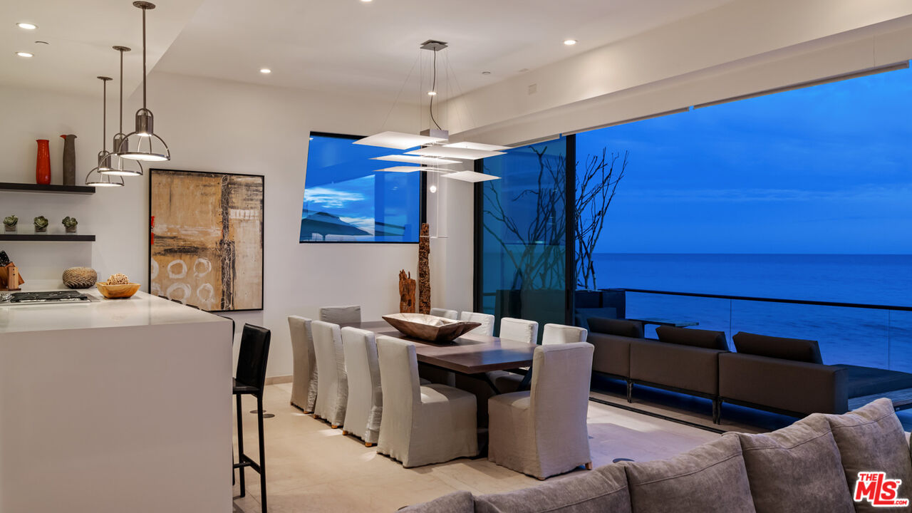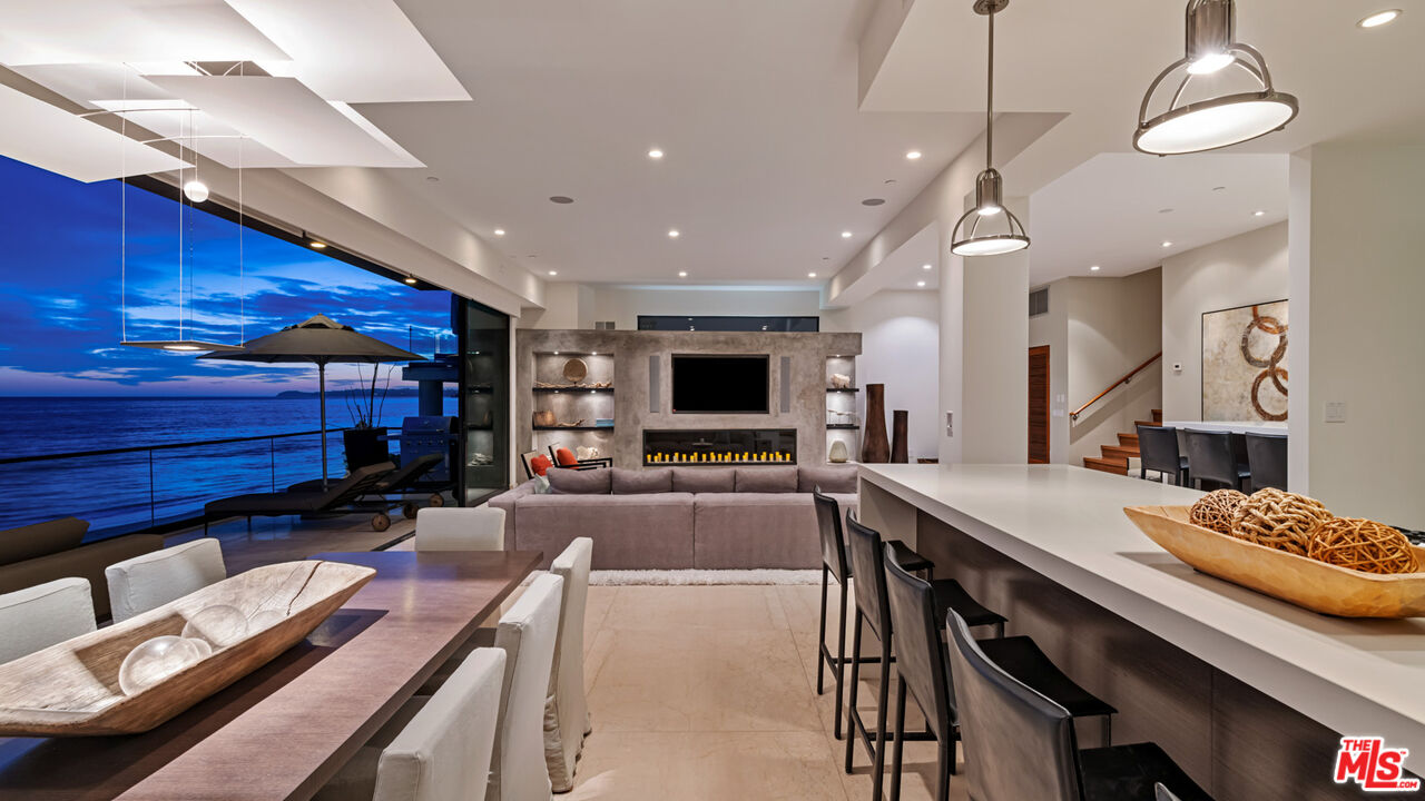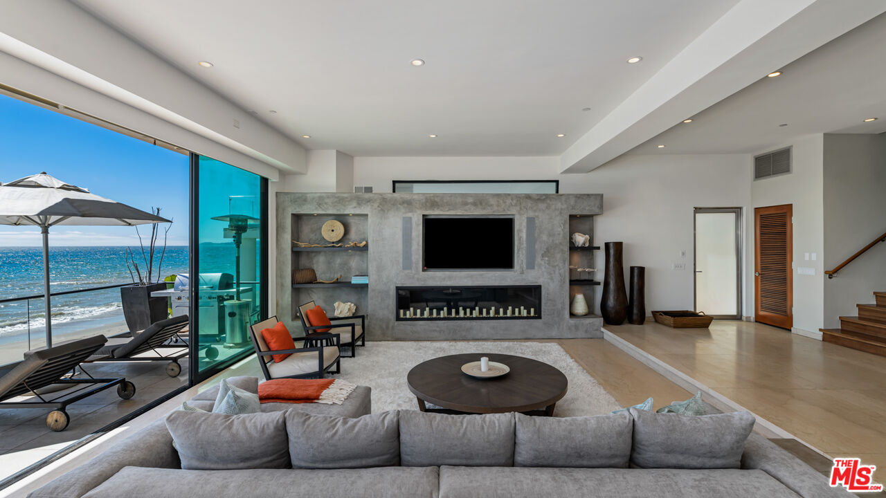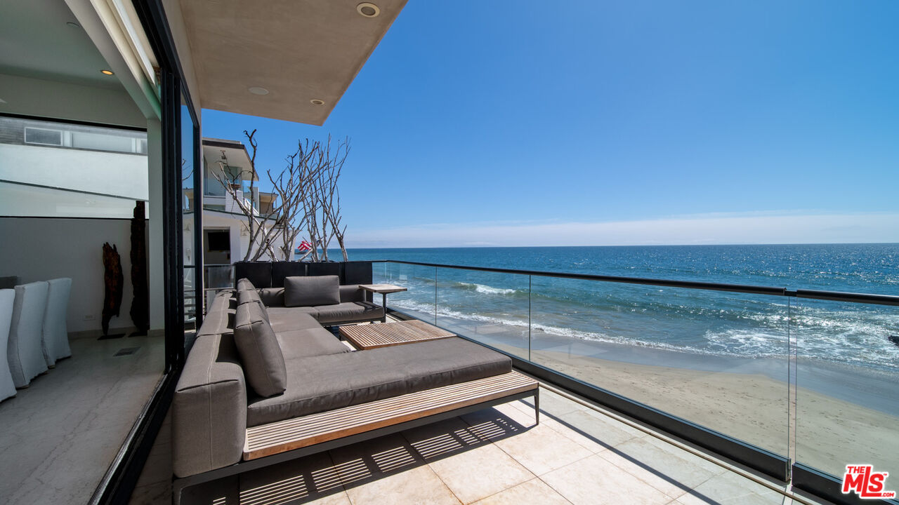 FLATROCK MALIBU ROAD: Located directly in front of the famous "Flatrock on Malibu Road" and on approximately 50 feet of sandy beach, this oceanfront residence offers endless coastline views from Point Dume to Palos Verdes. Malibu Road offers a location off Pacific Coast Highway while still being right in the center of Malibu near the best restaurants, shops and activities. Built in 2002, this home has a concrete caisson foundation and the finest materials and finishes. The scale of the main level is unmatched with high ceilings and open living areas offering the perfect setting for beachside entertaining. Touchscreen smart home automation system, automatic window shades, wet bar with wine fridge and many more thoughtful touches. The main level also offers a large living room, dining area and breakfast bar. The beach access to the sand below is secure and there is an outdoor shower and space to store your beach toys. Escape to the luxurious primary bedroom offering a fireplace, private balcony spanning the width of the property, custom built walk-in closet, and a large bathroom with infinity tub, double sinks and a steam shower. There are four additional bedroom suites each offering privacy, ample closets, marble and stone bathrooms and enough space for your guests. This is a one of a kind location on Malibu Road where you can enjoy the waves crashing against Flatrock as you enjoy everything you would want in a beachfront home.The property is also available for long term furnished lease at $50,000 per month or summer furnished lease at $100,000 per month (3 month minimum)
