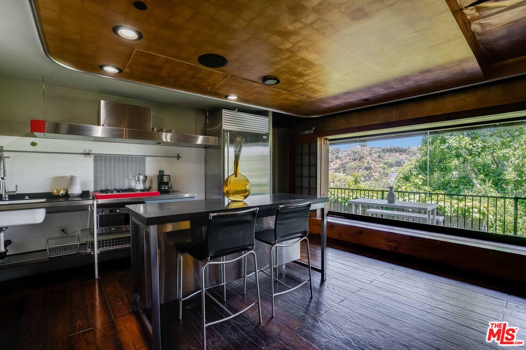 Unlock your opportunity to own a rare, revenue-generating canyon home in the enchanting Hollywood Hills. Nestled in the heart of Beachwood Canyon, this nearly 3,000-square-foot residence blends asian inspired serenity with modern industrial flair and sweeping views from every room. Ideal for creative buyers seeking a property that can offset their mortgage or generate steady income, this licensed Airbnb-ready home offers proven earning potential and versatile living arrangements. Currently, the owners live in the hillside residence and self-manage the Airbnb rentals, leasing portions of the home while maintaining privacy and functionality. For those seeking a single-family home with character, space, and the opportunity to add value with vision, this is an exceptional find. A private entrance lined with tall bamboo, a charming footbridge, and lush landscaping sets the tone for the tranquil experience of the home. The living room captivates with dramatic panoramic views of the Hollywood Hills, Griffith Observatory, Downtown LA, and the Hollywood Sign. The open-concept main level features a kitchen and dining area that flow seamlessly onto a view-filled balcony perfect for morning coffee or evening wine. The playful pink junior suite offers an ensuite granite shower and access to a private garden patio that could be converted to a second balcony. A second updated bathroom with modern concrete finishes completes the main floor. Downstairs, two guest-ready bedrooms await, including the primary suite, which features a granite shower, private garden, and wrap-around decks with breathtaking hillside views. The lower level adds flexibility with a secondary prep kitchen, a cozy den, and a third bedroom currently used as a writer's retreat a space that inspires creativity with its enchanting canyon backdrop. With two separate entrances, the lower level offers potential for a JADU conversion or independent guest quarters. Designed for both lifestyle and income, the home's layout includes four distinct guest suites, each with its own sense of privacy and charm. Shoji-style doors, artisan metalwork, polished concrete and timber floors, koi ponds, and multiple decks for outdoor lounging create a truly immersive aesthetic rooted in Wabi Sabi-inspired design. A third lower-level deck features an Endless Swim Spa (currently in need of updating) positioned to capture commanding, one-of-a-kind views of the Hollywood Sign an iconic backdrop. This home has a strong rental history, generating over $100K annually across Airbnb and rental platforms. Historic rental rates ranged from $3,000-$4,800 per month per unit, with consistent six-figure returns. Additional highlights include a gated driveway with ample guest parking, an attached two-car garage, three tankless water heaters, and a comprehensive security system. Perfect for end users, investors, or owner-operators, this home offers unique versatility as a private creative sanctuary that doubles as a thriving income property. More than a home, it's a living, breathing hospitality experience set amid the timeless beauty of the Hollywood Hills.