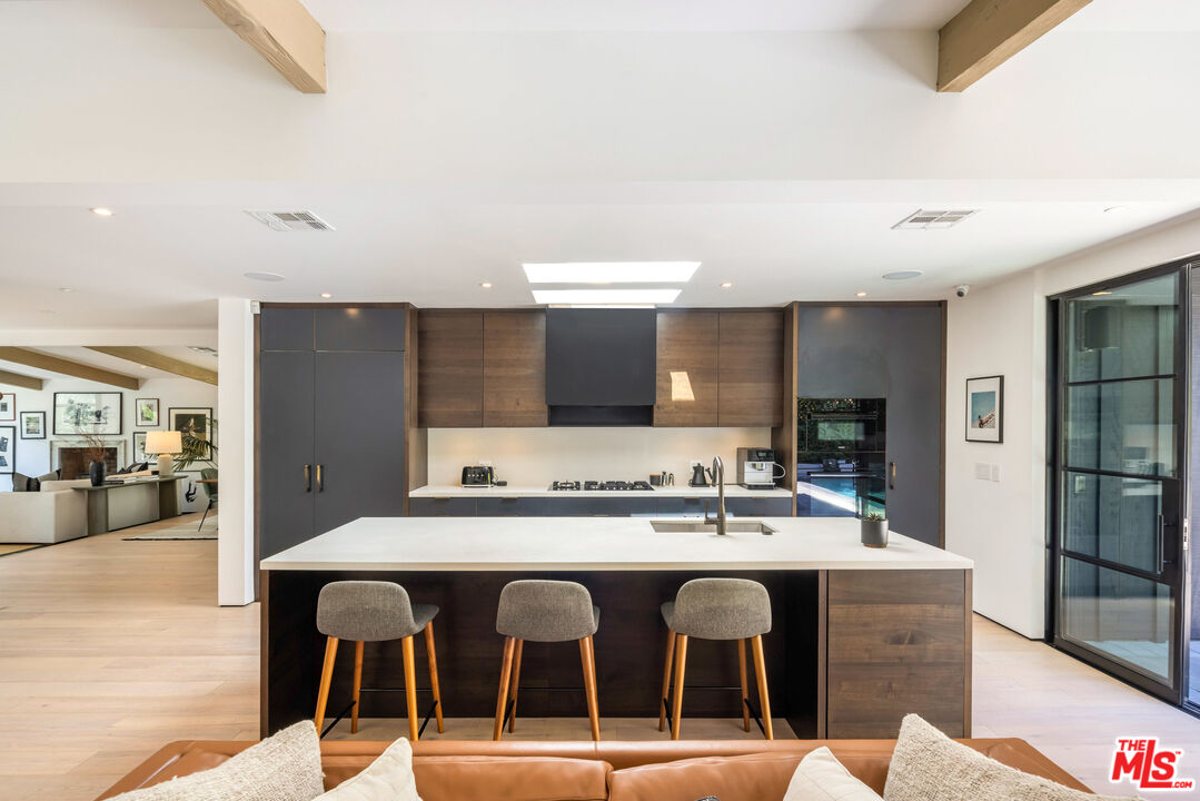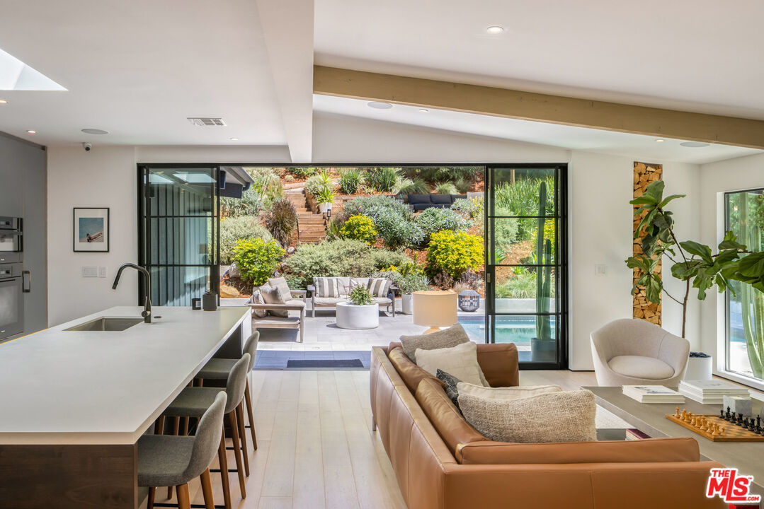 Tucked away in the highly sought-after Upper Laurel Canyon, within a coveted school district, this three-bedroom, three bath architectural residence embodies the best of California mid-century ranch living. Designed with a seamless balance of space, style, and nature, the home offers a rare sanctuary just minutes from the city. Thoughtfully renovated with meticulous attention to detail, every element has been curated to honor the home's original mid-century character while introducing modern sophistication. The interiors feature hand-plastered walls, rich natural stone, wood-beamed ceilings, sleek cabinetry, and custom steel-framed windows. Walls of glass flood the home with light, creating an effortless indoor-outdoor flow that blurs the line between architecture and landscape. The open floor plan invites both relaxation and connectionperfect for living, entertaining, or working in style. Step outside to a spacious backyard oasis where a sparkling pool is surrounded by mature landscaping and serene canyon views, offering ultimate privacy and tranquility. This Laurel Canyon retreat is more than a homeit's an escape, a statement, and a lifestyle.