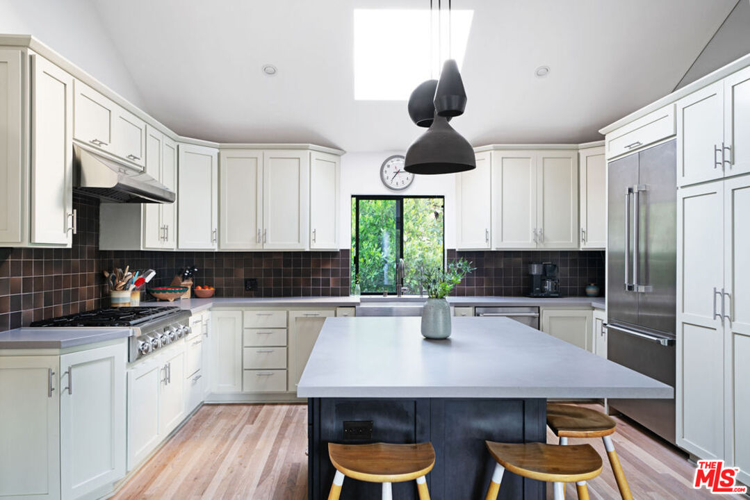 Tucked away in highly sought-after Monte Nido, just beyond the storybook Edenwild bridge and nestled on a peaceful cul-de-sac, this warm and inviting five-bedroom, three-bathroom home creates the perfect balance of comfort, privacy, and connection to nature. Surrounded by the breathtaking Santa Monica Mountains, this home is the essence of elevated California living. Step inside where soft natural tones create an instant sense of welcome. Sunlight streams through floor-to-ceiling windows, illuminating the spacious living room with soaring vaulted ceilings and a statement fireplace perfect for cozy evenings. The inviting chef's kitchen showcases premium Thermador appliances, handcrafted Heath Ceramic tile backsplash, sleek Caesar-stone countertops, and a generous island that opens to the family room and view-filled balcony ideal for your morning coffee to an evening glass of wine. Throughout the home, you'll find blonde oak flooring and thoughtful architectural details that create a warm yet sophisticated atmosphere. The primary bedroom offers vaulted ceilings, a walk-in closet, and on-suite spa-like bathroom. Four additional guest rooms provide versatile space for comfortable family living, welcoming visitors, and pursuing creative endeavors. Your private saltwater pool is perfectly positioned to capture sweeping mountain views. Multiple terraces, patios, and outdoor dining spaces make this a true entertainer's paradise. A detached office/studio/gym provides flexibility for remote work, creativity, or wellness. Located just steps from scenic trailheads for glorious hiking and minutes to the beaches of Malibu, Calabasas Commons, and top-rated Las Virgenes schools, this property is more than a home, it's a gorgeous lifestyle. Motivated Seller. Also available for lease furnished at $12,500 monthly.
