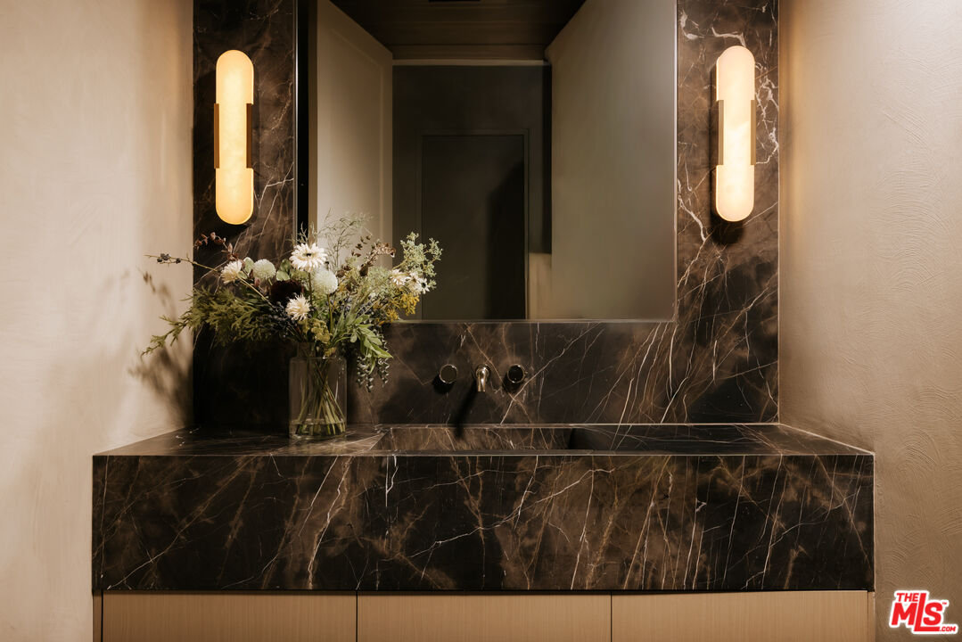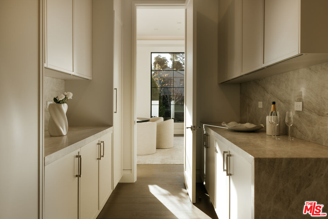 Set behind gates on one of Brentwood's most coveted streets, this newly completed estate by architect Philip Vertoch and designer Magni Kalman embodies timeless sophistication and modern refinement. Thoughtfully designed to balance grandeur with livability, the home unfolds across 9,515 square feet of light-filled interiors, complemented by a beautifully appointed guest house and expansive, resort-like grounds. A striking double-height entry, crowned by a skylight, creates an immediate sense of arrival -- welcoming in natural light and setting the tone for the exceptional craftsmanship found throughout. Classic brick architecture, soaring ceilings, steel-framed windows and doors, and artisanal millwork blend seamlessly to create a sophisticated yet inviting atmosphere. Designed for both intimate moments and grand entertaining, the main level flows effortlessly from formal living and dining spaces to an expansive family room and chef's kitchen, where European-style cabinetry, Taj Mahal natural stone countertops, and premium Wolf appliances anchor the heart of the home. Upstairs, the primary suite is a sanctuary, complete with a sitting room, dual-sided fireplace, private terrace, dual dressing rooms, and a stone-clad ensuite with a dual shower and soaking tub. Outdoors, nearly half an acre of manicured grounds provides a backdrop for elevated entertaining, featuring an outdoor kitchen, pool, spa, cold plunge, and sundeck, while the guest house offers versatile space for hosting, wellness, or extended stays. Enhanced by full home automation, supremely equipped for in-home staff, and set moments from Brentwood's finest dining, shopping, and the coast, this residence delivers luxury living with discernment.