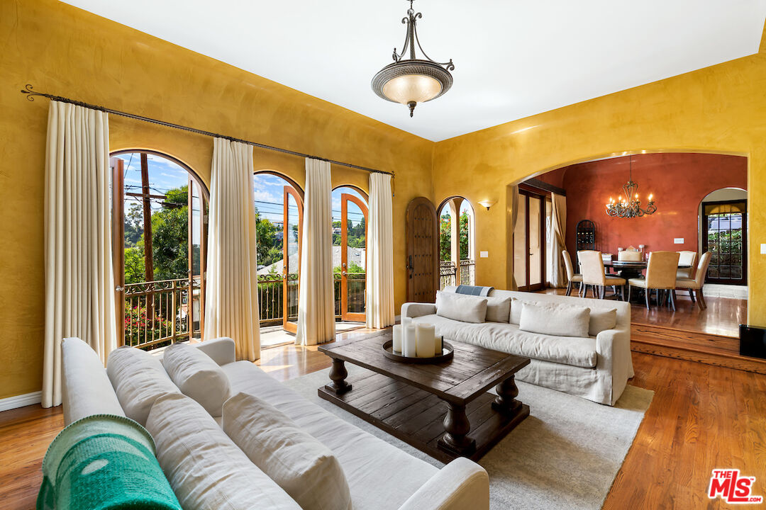 Located in the sought-after Beachwood Canyon enclave of the Hollywood Hills, this grand Spanish-style residence blends classic character with generous scale and sweeping canyon and city-light views. Originally built in 1925 and thoughtfully rebuilt and updated over the years, the home spans over 3,000 square feet with five bedrooms and four bathrooms. The spacious layout offers multiple living and entertaining areas, highlighted by architectural details and abundant natural light. A well-appointed kitchen and updated bathrooms complement the home's timeless design, while the expansive primary suite captures stunning hillside and city views. Set in one of the most desirable pockets of the Hollywood Hills, this property presents a rare opportunity to own a substantial Spanish villa with classic charm, views, and exceptional potential in the heart of Beachwood Canyon.