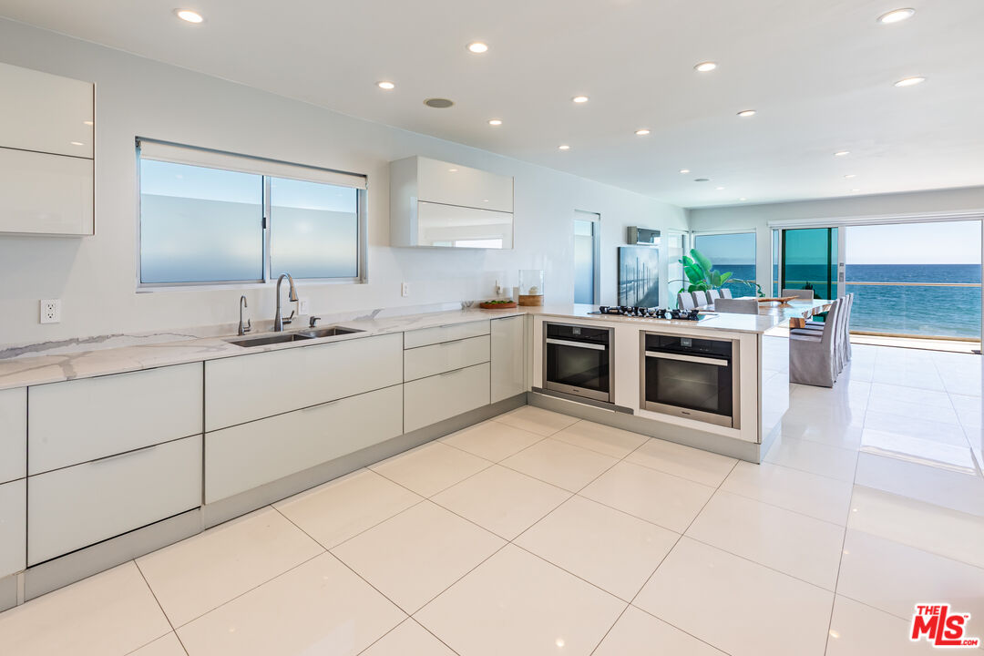 Discover unparalleled coastal elegance in this breathtaking oceanfront estate, perfectly poised on Malibu's pristine shores with direct beach access via a private staircase and mesmerizing 180-degree Pacific vistas. This contemporary three-level masterpiece offers four bedrooms, three and a half bathrooms, floor-to-ceiling glass walls that invite natural light to dance across every room, and multiple ocean-view terraces perfect for savoring sunsets or hosting intimate gatherings. The chef's kitchen, a culinary dream with top-tier appliances and sleek cabinetry, anchors the main residence, while an attached two-bedroom, one-bath guest suite with a full kitchen, washer/dryer, and private entrance provides a versatile retreat for guests or family. With a three-car garage plus parking for four or more vehicles, and a prime location steps from scenic hiking trails, vibrant restaurants, chic boutiques, and everyday essentials, this sanctuary blends modern sophistication, privacy, and the timeless allure of Malibu's coastal lifestyle.