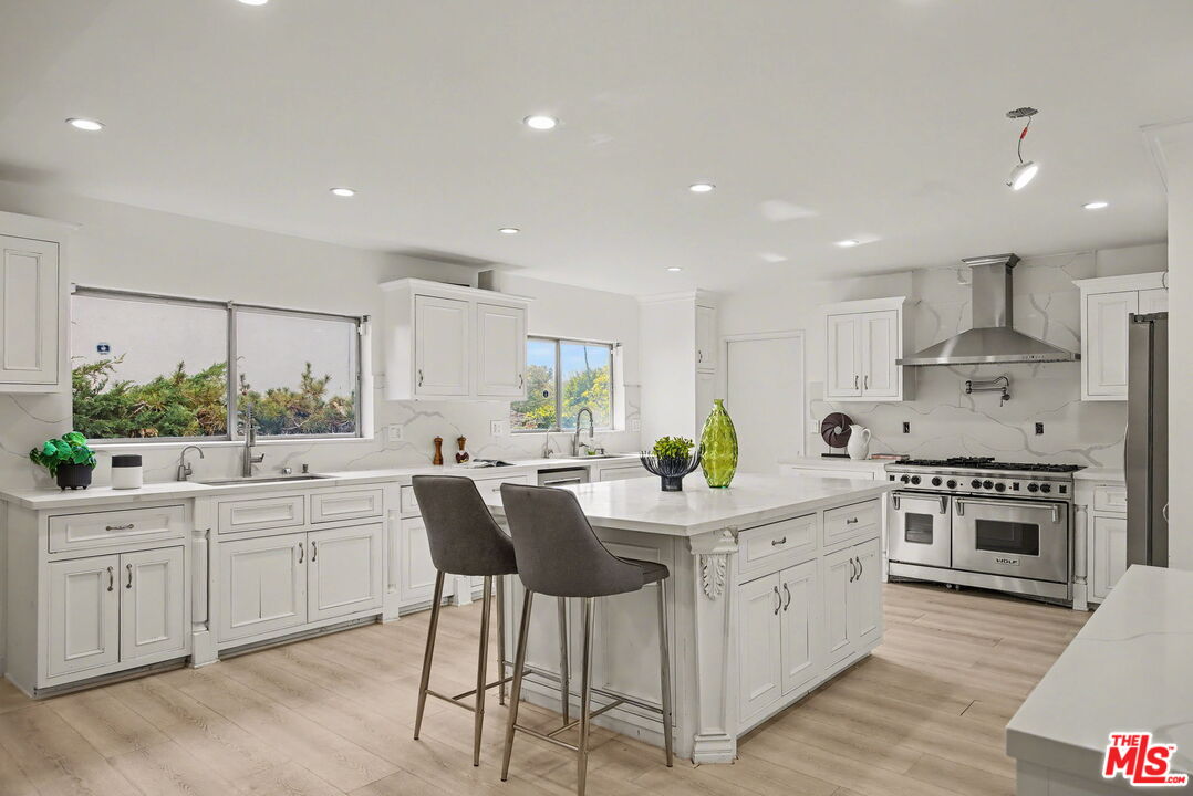 Situated on an expansive 8,492-square-foot lot in the heart of the coveted Beverlywood area, 2612 S Beverly Dr beautifully blends timeless charm with modern comfort. From the moment you arrive, the home welcomes you with striking curb appeal- manicured landscaping, mature trees, and a lush front lawn that set a gracious and inviting tone. Inside, sun-drenched living spaces unfold beneath soaring ceilings and expansive windows, creating an airy and uplifting atmosphere. A dazzling crystal chandelier adds a touch of sophistication, while dual sliding glass doors invite the outdoors in, opening to a generous grassy backyard ideal for effortless indoor/outdoor living. The family room, centered around a charming white brick fireplace and enhanced by recessed lighting, flows seamlessly into the dining area - perfect for cozy evenings or memorable gatherings with friends and family. The warm and thoughtfully designed Kosher kitchen is both stylish and functional, featuring stainless steel appliances, dual sinks, custom cabinetry with refined finishes, a custom wine rack, and a spacious center island that naturally becomes the heart of the home for casual meals and everyday moments. Upstairs, the primary suite offers a peaceful retreat, complete with dual-entry walk-in closets and a distinctive en suite bath featuring dual vanities and a glass-enclosed shower. Three additional well-sized bedrooms, along with a conveniently located laundry area off the kitchen, complete the home's smart and comfortable layout. Step outside to discover a serene and private backyard oasis - ideal for alfresco dining, entertaining, or simply unwinding. A spacious patio framed by lush greenery creates a true sense of calm and seclusion. Ideally located with easy access to Beverlywood, Beverly Hills, Mar Vista, and beyond - and situated within the sought-after Castle Heights School District - this exceptional residence presents a rare opportunity to enjoy elevated yet inviting living in one of Los Angeles' most desirable neighborhoods.