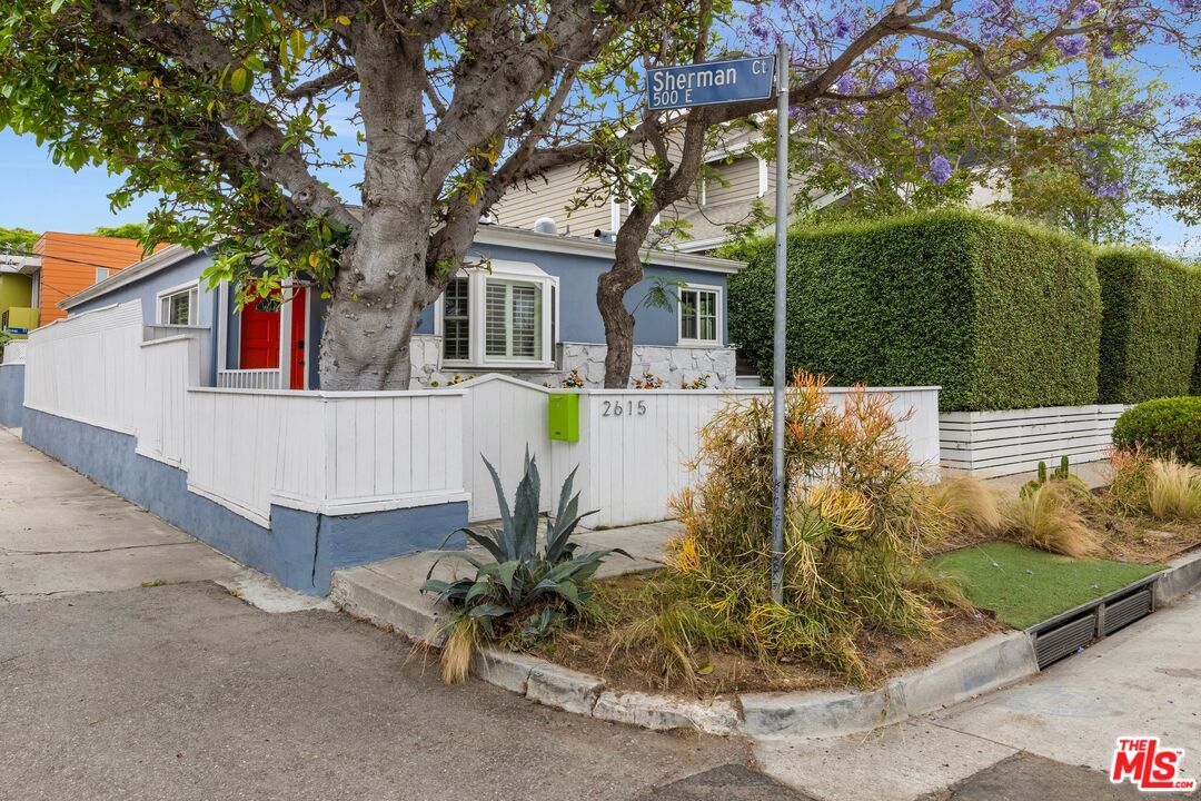 Discover this private retreat in a quiet enclave within the sought-after Silver Triangle area of Venice Beach, California. This stylish 3-bedroom, 2-bathroom bungalow is nestled on a corner lot, just steps away from the enchanting Venice Canals. It boasts a bright and airy open floor plan, ideal for both relaxation and entertaining. Enjoy the modern kitchen with skylight, granite counters, new refrigerator and dishwasher, a peninsula bar counter and eat-in area with bay window and built-in bench seating. The spacious living area has plenty of natural light from the remote-controlled skylight. Catch ocean breezes in the serene backyard with its new romantic fire-pit and flat-screen TV, perfect for outdoor gatherings and alfresco dining. The oversized one-car garage is equipped with a Tesla charger and features French doors leading to the backyard, so that it could be used as a versatile bonus room, office or entertaining space. Additional features include: Newer central AC, solar panels, white oak floors, plantation shutters and Ring alarm system with exterior cameras. With a surprising amount of street parking, even on peak summer weekends, entertaining is a breeze. This hidden gem is just just a short stroll or roll from Venice beach, world-class restaurants and the trendy Abbott Kinney area. This is your chance to enjoy the wonderful vibrant Venice lifestyle and have the beach as your back yard.