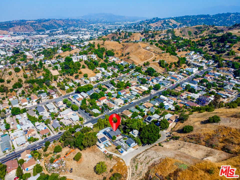 Perched high in the hills of Lincoln Heights, this 5-bedroom, 4.5-bath modern retreat invites you to experience its elegance, ease, and panoramic views of the downtown skyline! Inside, gleaming tile floors guide you to an open-concept living and dining area, blending effortlessly into a kitchen defined by stainless appliances, minimalist cabinetry, and a honeycomb backsplash. Three bright bedrooms grace the main floor, while two more, along with a stylish family corner and kitchenette, await on the lower level, where glass sliders open to an expansive entertainer's patio. Your generous primary suite features vaulted ceilings, a walk-in closet, and a chic ensuite. A flexible bonus room, a laundry nook, and a studio ADU with its own kitchen and bath add everyday versatility. Whether hosting under the stars on your rooftop deck or unwinding on one of several serene terraces, the city feels just far enough away. Located only a short drive from Dodger Stadium, local schools, major freeways, and the vast array of leisure and shopping options of DTLA, come explore a lifestyle with elevated design!