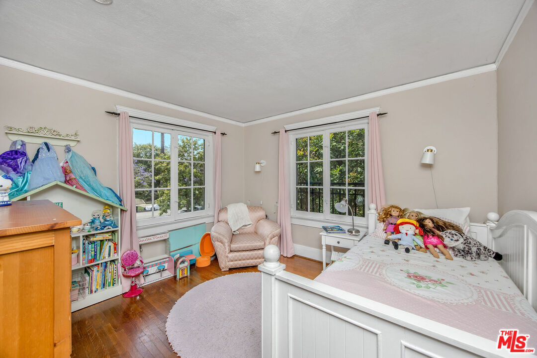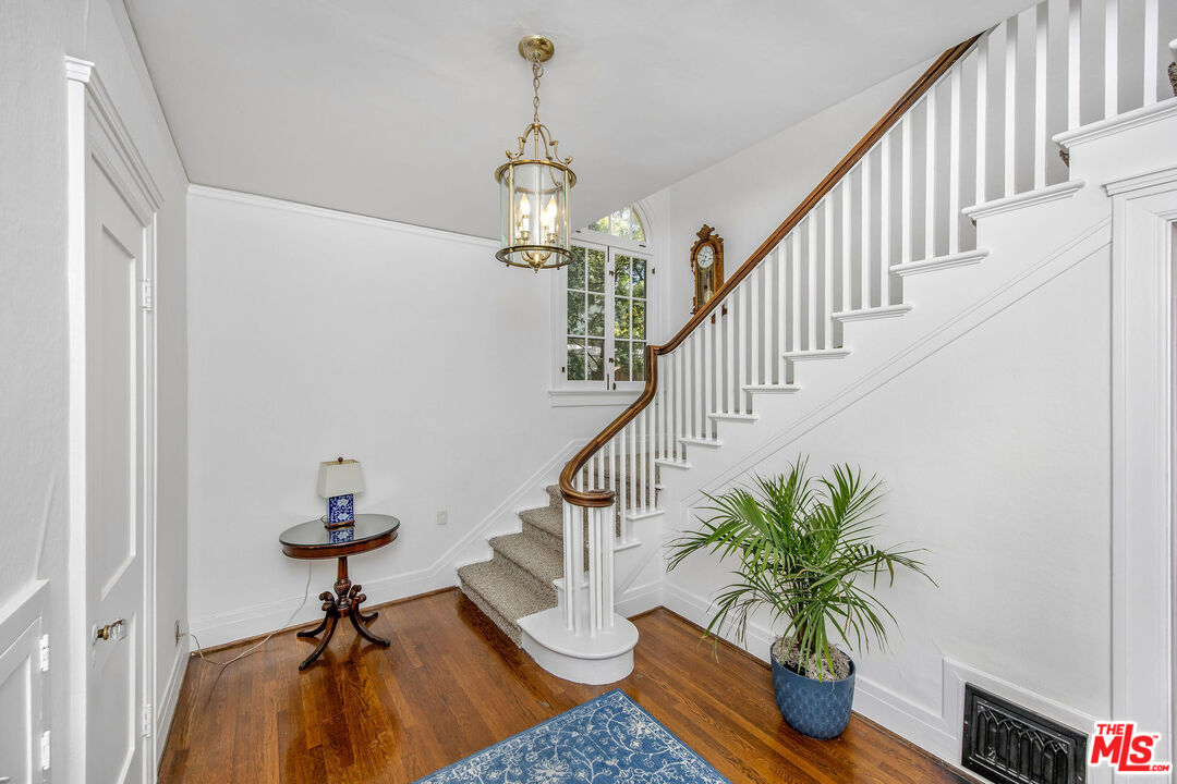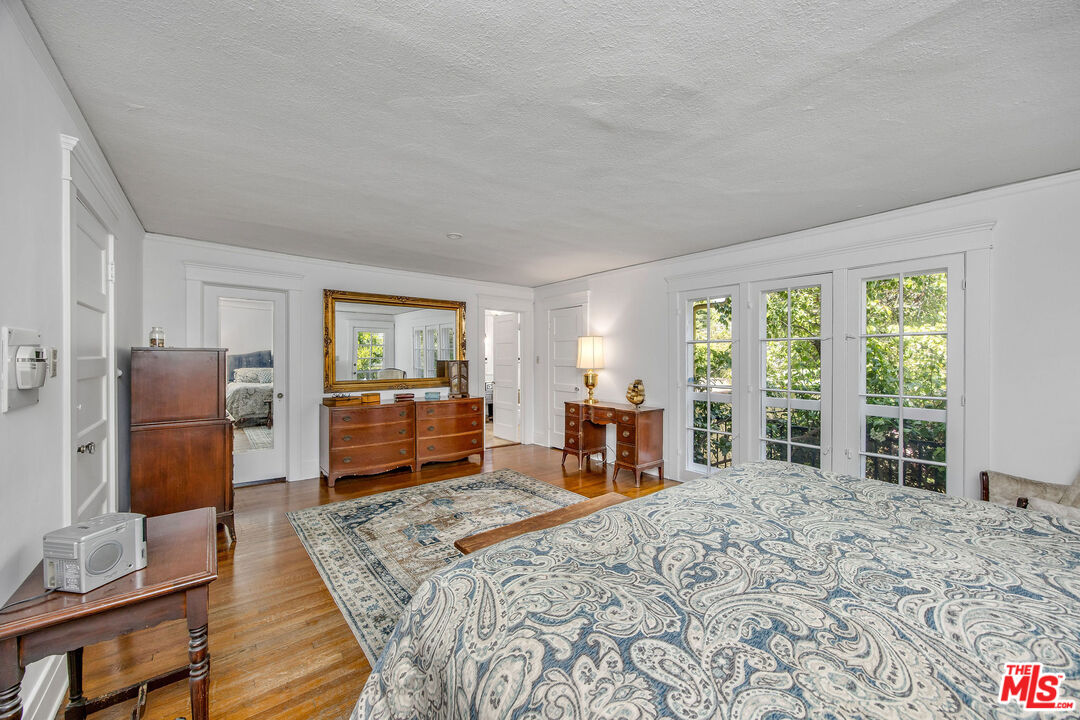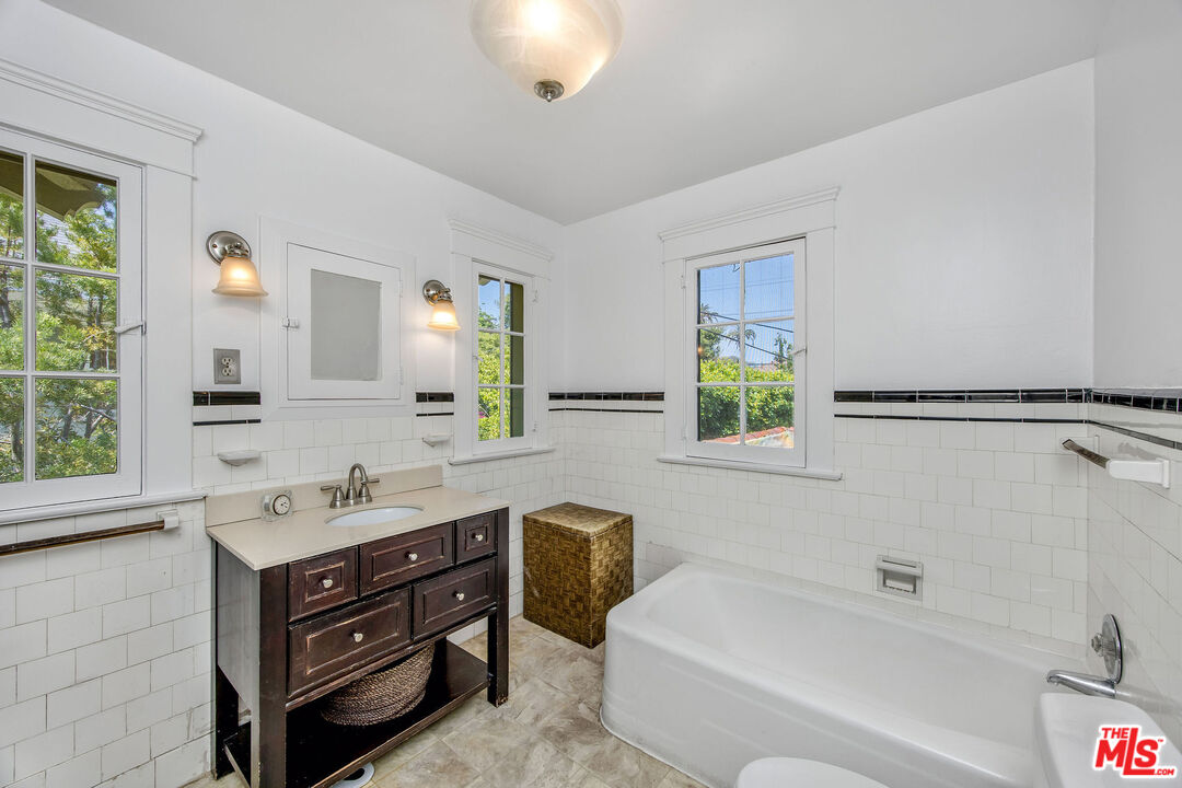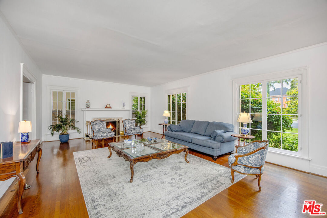 Timeless and beautiful Spanish in Windsor Square, loaded with natural light and great outdoor space, represents an amazing opportunity to enjoy as it is or reshape in your own vision. Spacious living, dining and family rooms highlight the main level, which lead to a charming patio ideal for al fresco dining. Generously sized kitchen with breakfast bar connects with a utility room, and to a bedroom and bathroom. Upstairs are four bedrooms and two baths, including a spacious, en-suite primary with seating area, two closets and access to a romantic patio. Large backyard will meet any of your needs; mature landscaping including avocado, fig, lime, lemon, orange and loquat trees, and bougainvillea that graces the dining room entrance add to the beauty. Gated driveway leads to a two-car garage, currently fashioned as a sound-treated studio with air conditioning. Truly wonderful property in one of LA's best neighborhoods, close to great shopping and restaurants on Larchmont, Melrose and LaBrea, located in the Third Street School district.
