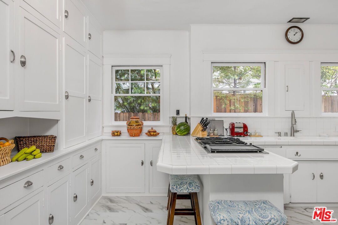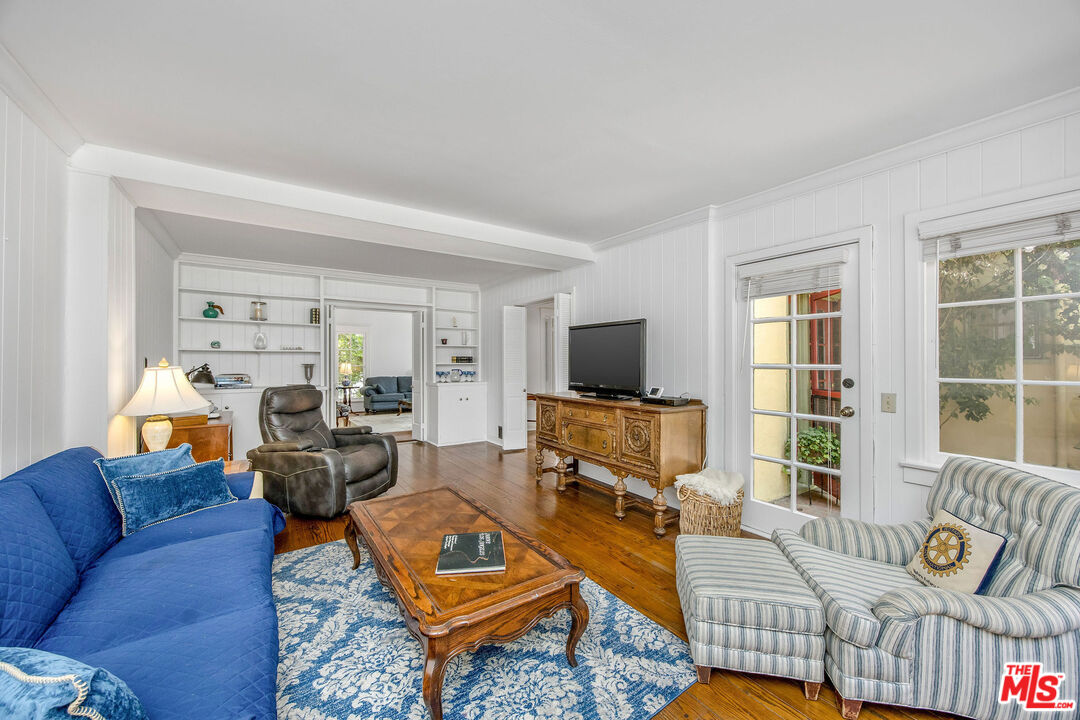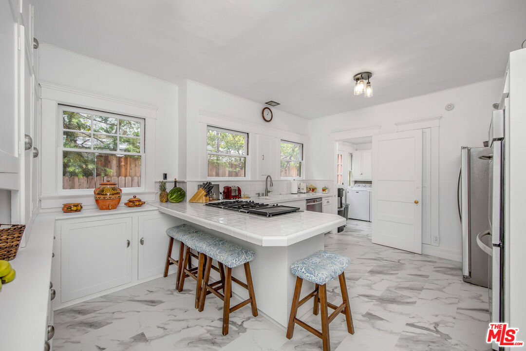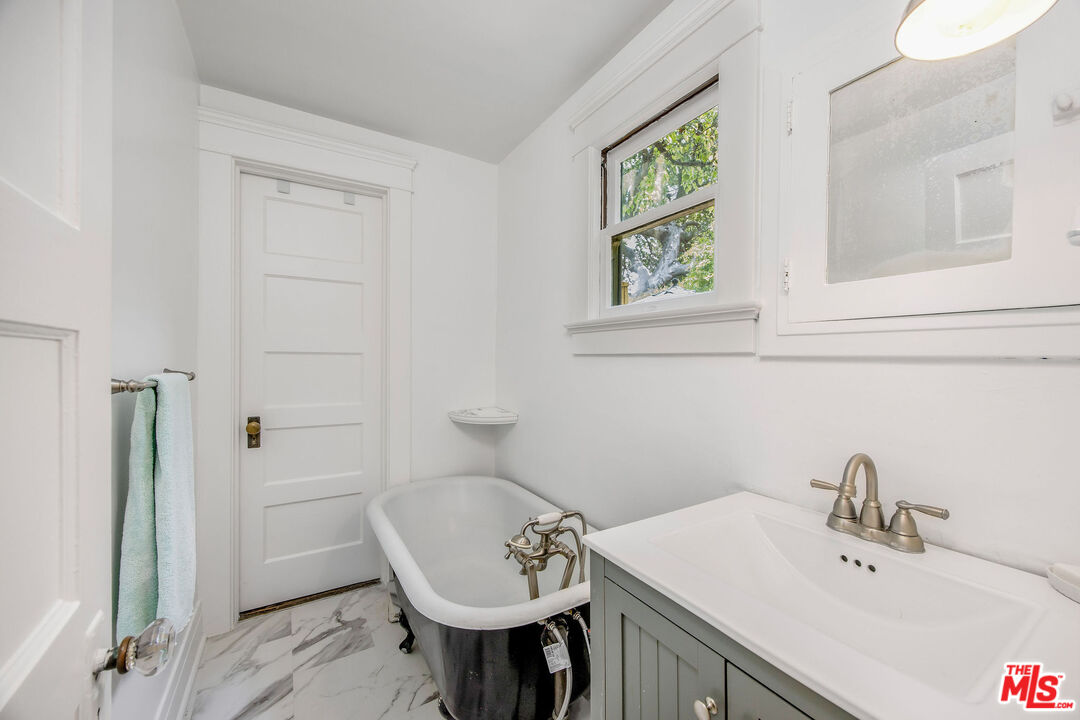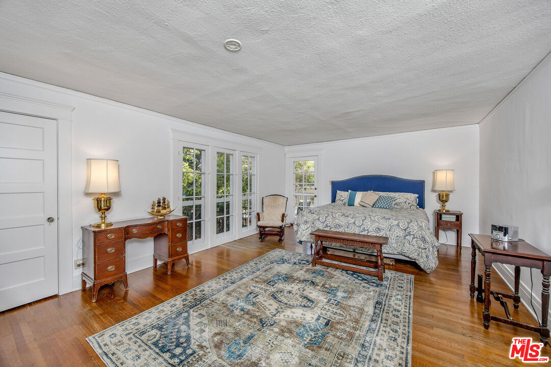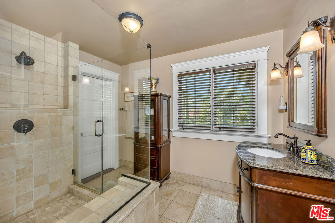 Timeless and beautiful Spanish in Windsor Square, loaded with natural light and great outdoor space, represents an amazing opportunity to enjoy as it is or reshape in your own vision. Spacious living, dining and family rooms highlight the main level, which lead to a charming patio ideal for al fresco dining. Generously sized kitchen with breakfast bar connects with a utility room, and to a bedroom and bathroom. Upstairs are four bedrooms and two baths, including a spacious, en-suite primary with seating area, two closets and access to a romantic patio. Large backyard will meet any of your needs; mature landscaping including avocado, fig, lime, lemon, orange and loquat trees, and bougainvillea that graces the dining room entrance add to the beauty. Gated driveway leads to a two-car garage, currently fashioned as a sound-treated studio with air conditioning. Truly wonderful property in one of LA's best neighborhoods, close to great shopping and restaurants on Larchmont, Melrose and LaBrea, located in the Third Street School district.