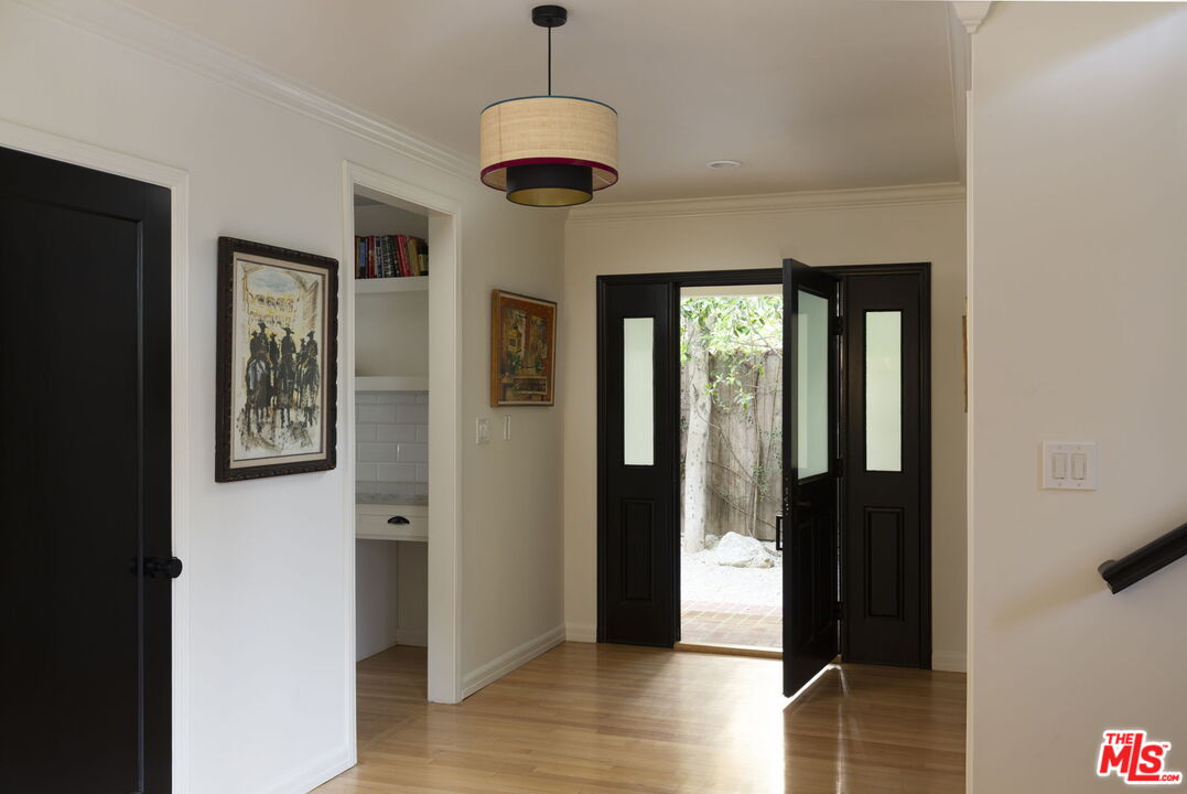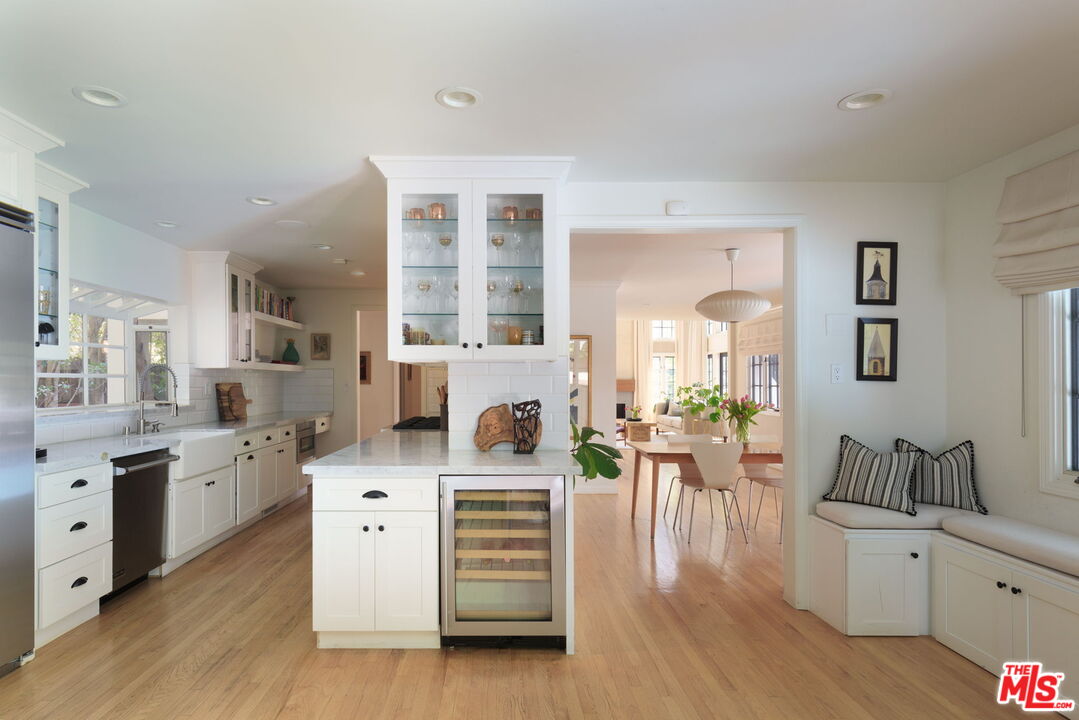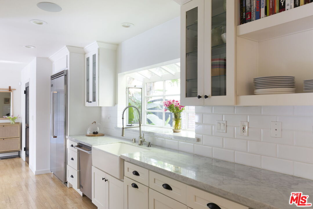 Nestled in the coveted enclave of Nichols Canyon, this warm, sun-drenched retreat is a masterclass in timeless California living. Set on a rare flat lot in the Hollywood Hills, the refined traditional residence has been thoughtfully curated to be as tranquil for everyday living as it is for unforgettable entertaining. A private oasis in every sense, the home features a spacious primary suite with double door entrance, private balcony, fireplace, walk-in closet and luxurious bath. There are three other substantial bedrooms as well as separate guest quarters with its own balcony overlooking treetop views. The striking living room, anchored by a fireplace and soaring double-height windows, frames the lush greenery beyond. In the heart of the home, a gourmet kitchen with Viking appliances and generous counter space flows seamlessly into a light-filled dining area. Outside, the property transforms into a secluded resort. Tropical landscaping surrounds an expansive yard where a sparkling pool and spa take center stage. An outdoor shower adds a touch of luxury, while the fully outfitted custom kitchen is perfect for al fresco dining from sunlit breakfasts to twilight dinner parties under the stars. Just moments from the hiking trails of Runyon Canyon and with easy connections via Mulholland Drive, Hollywood Boulevard, and nearby freeways, this transcendent Nichols Canyon hideaway offers a rare fusion of style, space, and seclusion in one of Los Angeles' most sought-after neighborhoods.