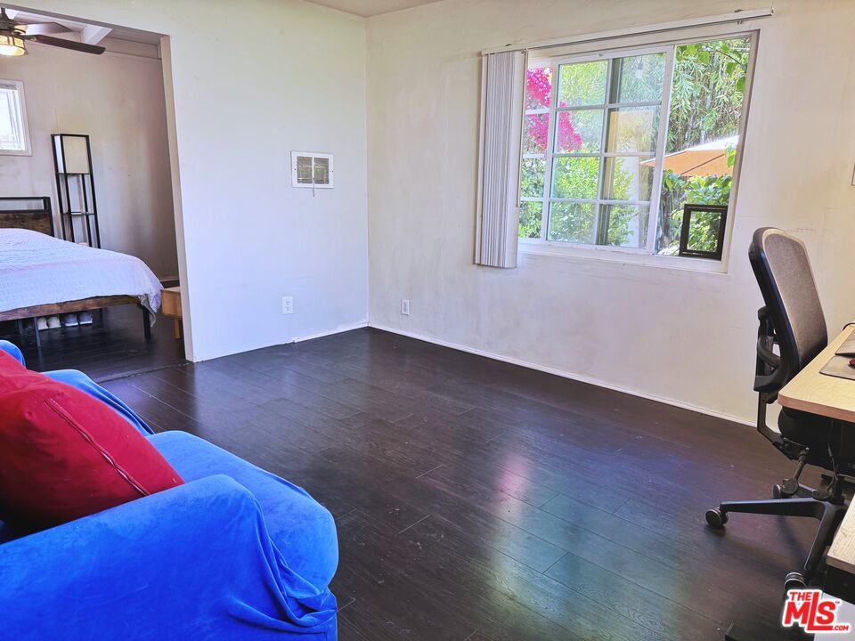 Discover this 1923 home in the heart of historic West Adams. This home offers the perfect blend of timeless architecture and modern convenience, situated just minutes from the Metro E Line, Baldwin Hills Scenic Overlook and Whole Foods Market. Residents enjoy immediate access to a vibrant culinary and retail scene, featuring acclaimed local favorites like Alta Adams, Mizlala, and Johnny's Pastrami. The property is set behind lush landscaping and a fish pond. This three-bedroom, one-and-a-half-bath home offers nearly 1,175 square feet of living space. Inside, the spacious living room features natural light from multiple windows and skylights, alongside a decorative focal point fireplace. Pass through your second bedroom to your third bedroom. The second bedroom functions currently as an office work space with no closet. The bonus room is currently used as an art studio and includes cold and hot water hookups. The backyard includes a deck, mature fruit trees, and bamboo. The back garage provides additional space that can function as storage or a work studio. The seller has completed foundation upgrades.
