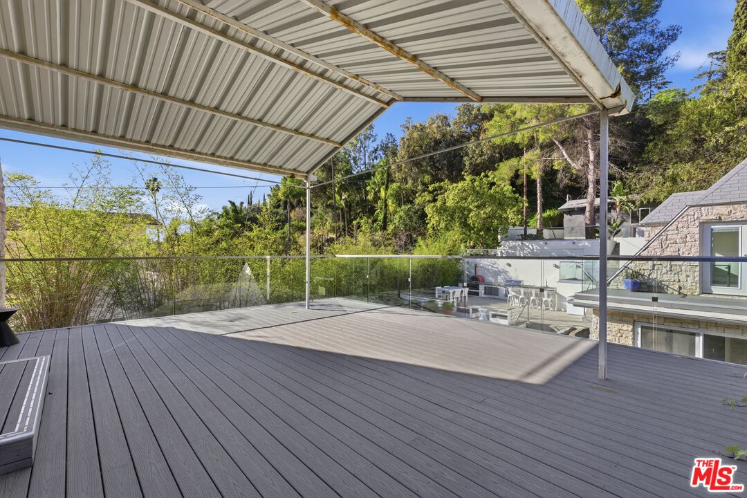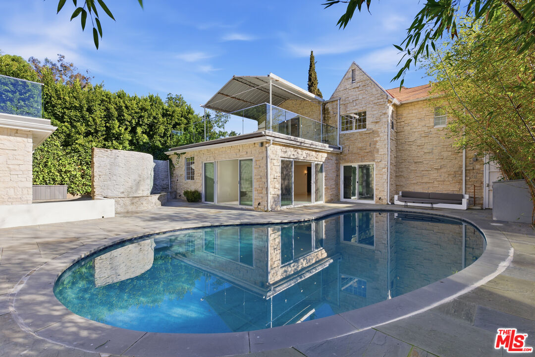 Commonwealth Manor, An English Storybook Inspired Stone Compound in Los Feliz. Originally built in 1929 as a Country English residence by architect Arthur C. Munson, 2633 N Commonwealth Ave, known as Commonwealth House, reflects the romantic architectural sensibility that defined early Los Feliz. Set behind a private gate on approximately one third of an acre, the property has evolved into a rare multi-residence compound thoughtfully expanded while preserving its storybook character, architectural integrity, and sense of place. Arrival is marked by a sculptural wrought-iron garden gate, introducing layered grounds and a deeply private estate setting beyond. The property unfolds across three distinct residences, offering a balance of connection and independence ideal for multigenerational living, guests, or creative use. Early ownership and community involvement reflect the home's place within Los Feliz's historic social fabric, dating to a period when the neighborhood emerged as a discreet enclave for professionals, creatives, and members of Hollywood's early film community. The main residence showcases period craftsmanship throughout, featuring soaring 12-foot ceilings, exposed beams, classic wainscoting, and custom mahogany cabinetry. A formal living room anchored by a fireplace, original wall sconces, and a charming window seat creates a refined yet inviting atmosphere, complemented by thoughtfully integrated built-ins. At the heart of the home, the chef's kitchen blends timeless design with modern performance. A Thermador professional appliance suite is joined by built-in refrigeration and freezers, warming and cooling drawers, a stainless steel farmhouse sink, and a dramatic waterfall edge quartz island flowing seamlessly into surrounding living spaces for both everyday living and entertaining. The main house offers five bedrooms and five bathrooms, including a powder room off the entry and a private primary wing with an expansive covered patio deck. Spa-inspired bathrooms feature soaking tubs and rainfall showers, while a concealed door reveals a speakeasy-style basement. Multiple attic storage areas provide exceptional functionality. Complementing the main residence are two fully independent living structures. The ADU includes two bedrooms and two bathrooms, a dedicated laundry/office, hardwood floors, 12 foot ceilings, quartz countertops, black hardware, subway tile, stainless steel appliances, a five-burner range, and private patios off each bedroom. A separate guest house features a foyer entry, one bedroom and one and a half bathrooms, laundry, balcony, recessed lighting, quartz counters, stainless steel appliances, and dual-zoned climate control. Outdoors, the estate functions as a true private retreat. All three residences open to their own patios, while the grounds feature a black-bottom pool and hot tub, cascading waterfall fountain, outdoor kitchen with pizza oven and built-in barbecue, wet bar with island and warming drawer, and multiple areas for entertaining or quiet relaxation. A Tesla EV charger completes the modern conveniences. Set moments from Griffith Park's trail system and surrounded by mature greenery, Commonwealth Manor offers a rare balance of privacy, architectural integrity, and proximity to nature within one of Los Feliz's most storied settings.