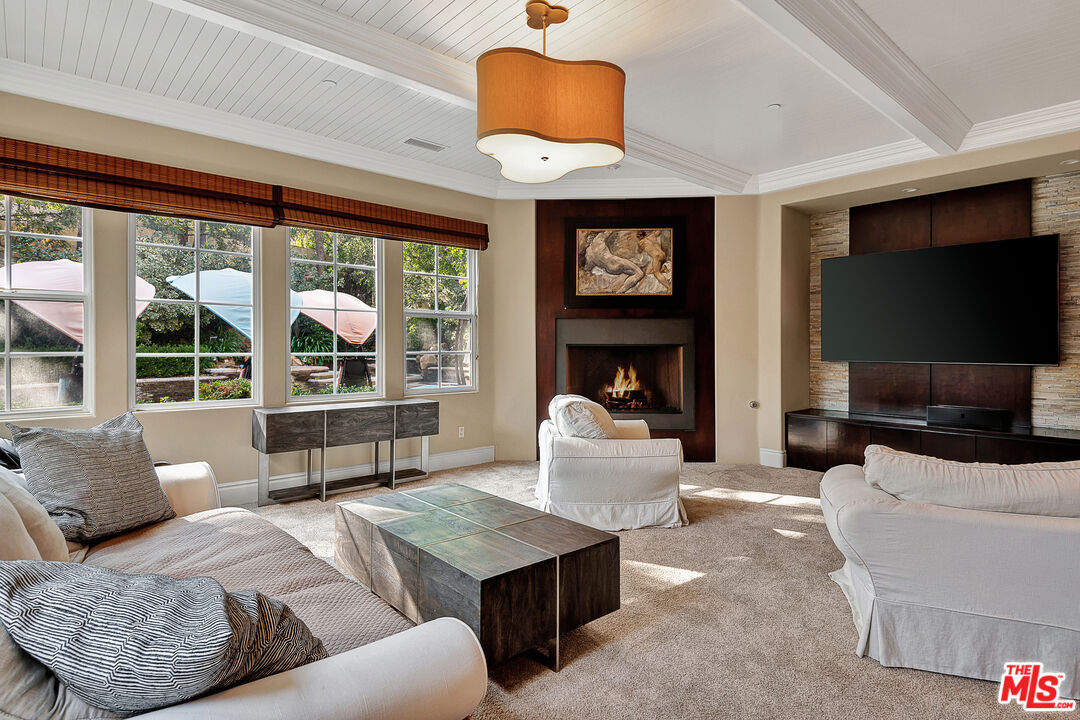 Tucked behind the prestigious guard-gated enclave of Mont Calabasas, this exceptional corner-lot estate offers an extraordinary blend of elegance, comfort, and rare privacy. Set apart with expansive frontage and beautifully mature landscaping, the residence exudes a classic traditional charm that is both warm and inviting from the moment you arrive. Thoughtfully designed for both sophisticated entertaining and everyday living, the home showcases a gracious floor plan filled with natural light and impeccable craftsmanship. At its heart is a stunning chef's kitchen, anchored by a generous center island and outfitted with premium Viking stainless-steel appliances. Seamlessly open to the inviting family room, this space features a richly detailed coffered ceiling and a welcoming fireplace creating the perfect setting for gatherings of any size. An impressive bonus/game room with its own fireplace and wet bar provides a versatile retreat for recreation and relaxation, while a dedicated home gym offers an ideal space for wellness and fitness. Six beautifully appointed bedrooms include a luxurious primary suite complete with a private balcony, intimate sitting retreat, spa-inspired all-stone bath, and dual custom walk-in closets, an indulgent sanctuary to begin and end each day. Refined interior finishes elevate the home throughout, including gleaming hardwood floors, elegant crown moldings, custom window treatments, beadboard ceilings, and dual staircases that enhance both form and function. The resort-style backyard is a private oasis designed for year-round enjoyment. A sparkling pool and spa with tranquil waterfall serve as the centerpiece, complemented by a covered patio with built-in barbecue center, a charming freestanding stacked-stone fireplace, and a spacious play area. Surrounded by lush, mature trees and meticulously curated landscaping, the grounds provide an unparalleled sense of seclusion and serenity rarely found in today's market. This is more than a home, it is a beautifully crafted lifestyle opportunity in one of Calabasas' most sought-after communities.