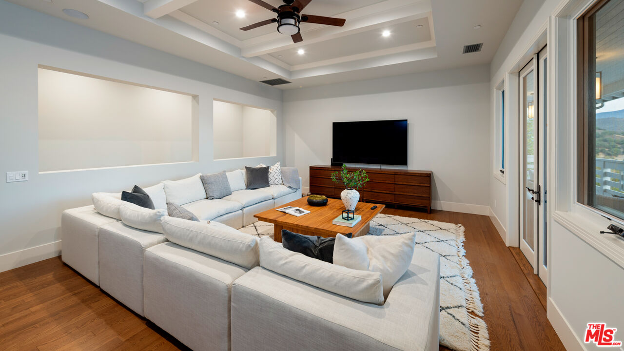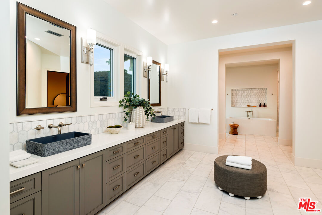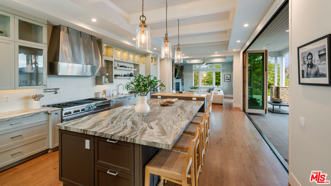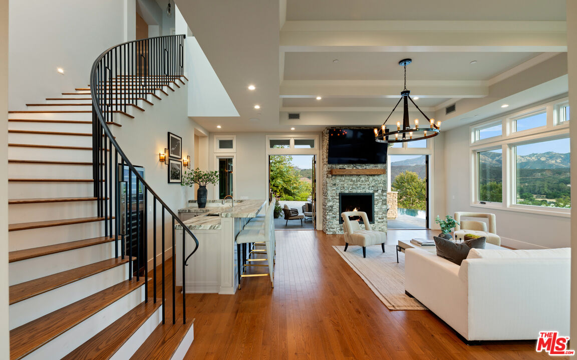 Featuring 26767 Mulholland Highway, this offering is more than just a residence, it's a showcase of privacy, design, and the quintessential California lifestyle. Tucked behind a gated, private drive and embraced by rolling hills, this custom-built contemporary craftsman estate offers approximately 7,269 square feet of refined living, perfectly balancing sophistication and comfort. With five bedrooms, seven bathrooms, and sweeping canyon vistas from nearly every angle, the home lives like a secluded resort, set in the heart of Calabasas, yet only fifteen minutes from Malibu's shoreline. The arrival makes an impression with a spacious motor court, natural landscaping, and unobstructed views of the Santa Monica Mountains. Inside, every detail has been thoughtfully curated. Wide-plank oak flooring, hand-selected stone, Italian light fixtures, and a top-tier Gaggenau appliance collection create an atmosphere of understated luxury. The open layout flows effortlessly through formal and casual living and dining spaces, a chic full-service bar, and an entertainer's kitchen featuring a large island, cozy breakfast nook, and seamless connection to the gathering areas. The large primary suite crowns the upper level as a retreat of light and tranquility. Walls of glass frame hillside views, while the spa-like bath is complete with dual vanities, a soaking tub, and an oversized marble shower with dual rain heads. A generous walk-in closet space awaits customization. Upstairs also features three additional en-suite bedrooms and a media lounge that extends to a terrace with a fireplace, ideal for savoring Malibu sunsets with a glass of wine. Outdoor living defines the estate, featuring an infinity-edge pool and spa that merge with the horizon, while multiple patios, a fire pit lounge, a full outdoor kitchen, and a flat grassy yard invite year-round gatherings. With no neighbors in sight, the setting ensures total seclusion beneath starlit skies. Blending intentional architecture with timeless design, this residence offers a rare opportunity close to the Commons and the Malibu Coast, yet worlds apart in atmosphere. Crafted for those who value lifestyle, leisure, and elegance, it's a home designed to endure as a legacy.
