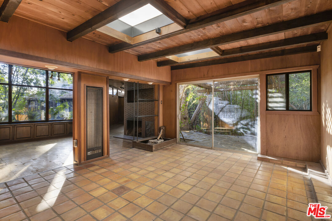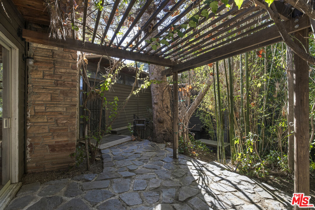 PLEASE READ AGENT REMARKS FOR OFFER REVIEW/DEADLINE. Original Mid-Century Modern diamond in the rough in upper Nichols Canyon, expanded over the years, notably in 1957 by esteemed Architect John August Reed. Classically trained at USC's School of Architecture, John A. Reed's classmates were none other than Conrad Buff, Donald Hensman, Thornton Ladd, Henry Hester and Pierre Koenig. John A. Reed assisted Frank Lloyd Wright's son with drawings for the Wayfarer's Chapel in Rancho Palos Verdes, before working as an associate with Sim Bruce Richards, and during this time, he also completed RM Schindler's Schlessinger House. Mr. Reed grew a firm peaking at nearly two-dozen employees and worked on many distinctive projects. Surrounded by mature trees and featuring a unique rustic exterior, this spacious residence sits above the street on a serene and secluded lot of nearly a quarter of an acre. The dwelling displays spellbinding creative details showcasing the architect's uncompromising vision. At the heart of the home, the public space combines living and dining room, anchored by a striking brick fireplace and oversized picture windows. A set of sliding glass doors leads to a shaded patio perfect for alfresco dining. The adjacent kitchen is spacious and complemented by a large pantry. A versatile floor plan offers 4 bedrooms, 2 full bathrooms, an office space, and a bonus flex room above the garage. The primary suite, with its own full bath and walk-in closet, occupies the entire lower level with paradisiac views of the lush backyard. Outside is an entertainer's dream with a terraced landscaped backyard, meandering paths leading to a koi pond, a spa, several patios and an extra-large flat pad. There are a 2-car garage and 2 additional spots in the driveway at the front of the property. Abundant storage is present throughout the home. This gem lies within a prime location, a coveted neighborhood surrounded by multi-million-dollar properties in one of the most exclusive and star-studded neighborhoods in Los Angeles. A true retreat in the heart of the city, this rare find is waiting to be restored or redeveloped.