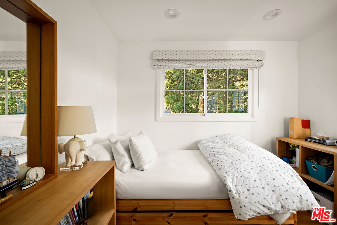 Set above the city in a peaceful Nichols Canyon setting just below Mulholland Drive, this California contemporary offers a rare combination of privacy, a newly renovated pool, canyon and city views, and an expansive flat grassy yard. The flexible two-level layout includes five bedrooms and three-and-a-half baths, with light-filled living spaces highlighted by beamed ceilings, a stone fireplace, and walls of glass that open to wraparound decks. Views span canyon hillsides and city lights, with ocean and Catalina Island visible on clear days. The main level features a primary suite with a private deck, while the lower level includes three bedrooms, two full baths, and a spacious family room with a fireplace that opens directly to a sun-drenched lawn framed by mature trees and a gated, solar-heated pool with a Saltillo-tiled deck. Multiple outdoor living areas and a versatile floor plan create a sense of privacy and ease, minutes from Runyon Canyon, West Hollywood, Beverly Hills, and the Valley.